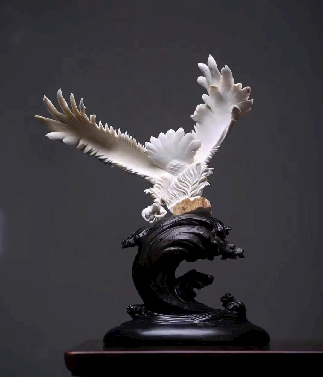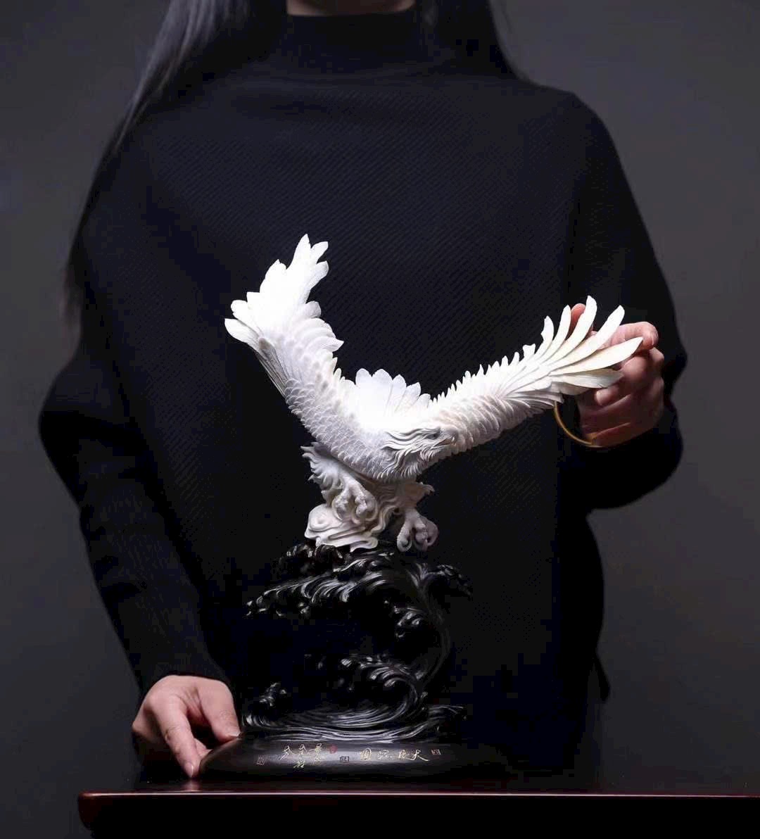 Chế tác từ nguyên liệu quý hiếm, gia công tinh xảo. Hình tượng đại bàng – biểu tượng của sức mạnh, ý chí kiên cường và lòng dũng cảm, mang ý nghĩa vươn lên không ngừng, dám nghĩ dám làm để thực hiện hoài bão lớn.