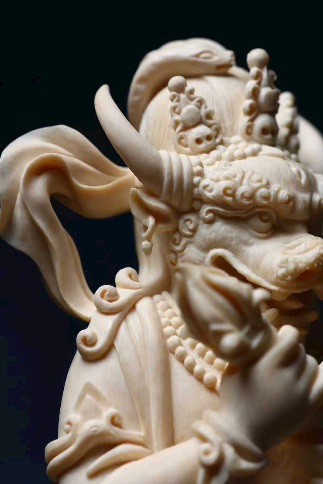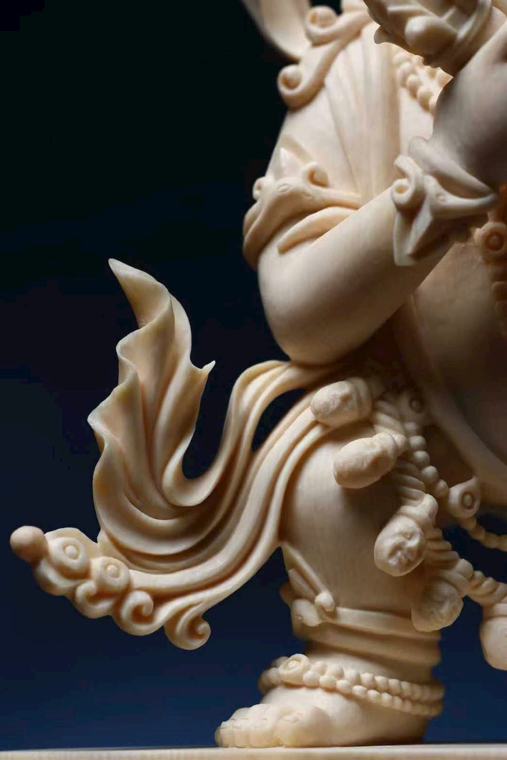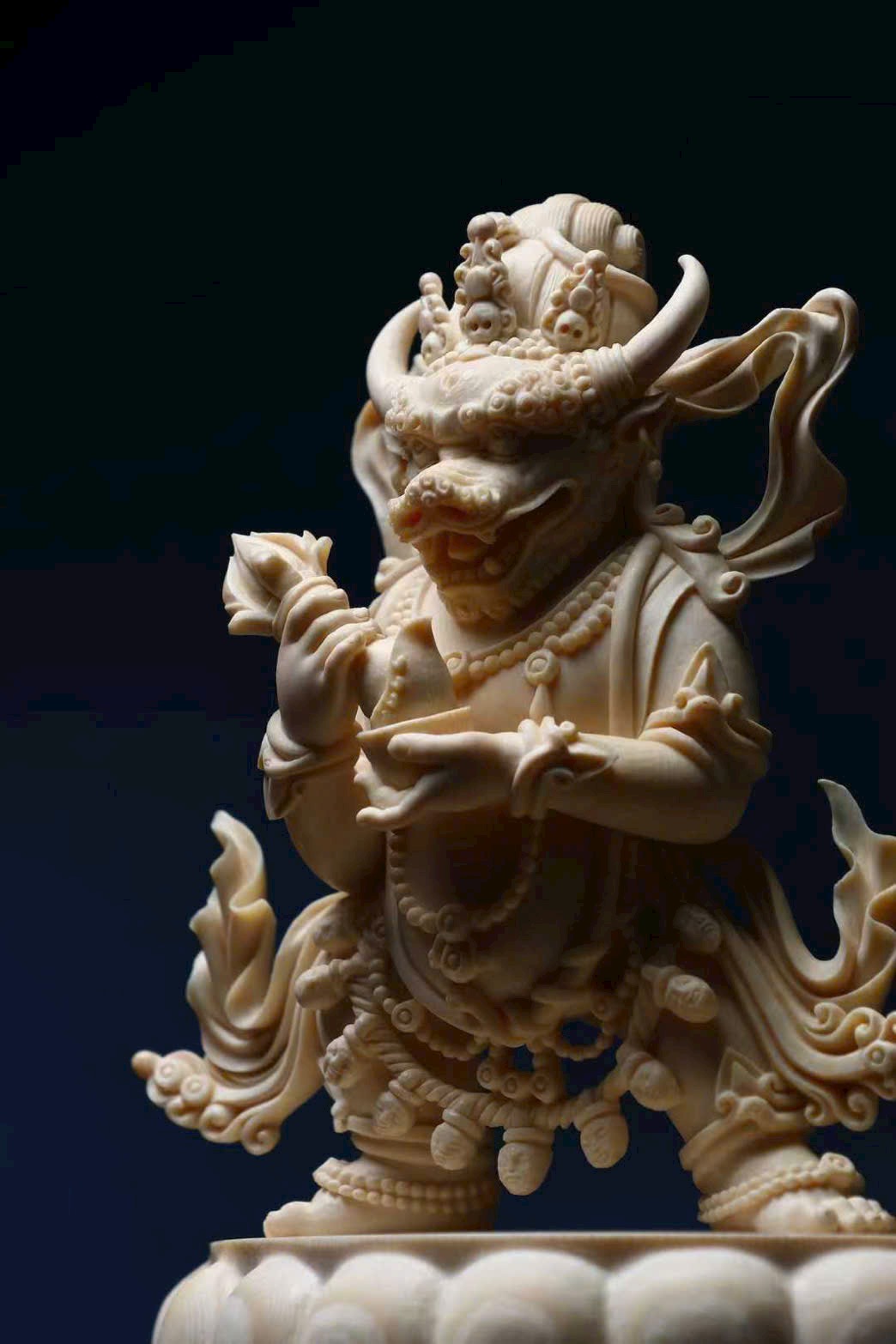 Tôn Kim Cang truyền Phật giáo Tây Tạng này được chạm khắc tinh xảo, tỉ mỉ, tạo hình sinh động, chân thực mà không gò bó.