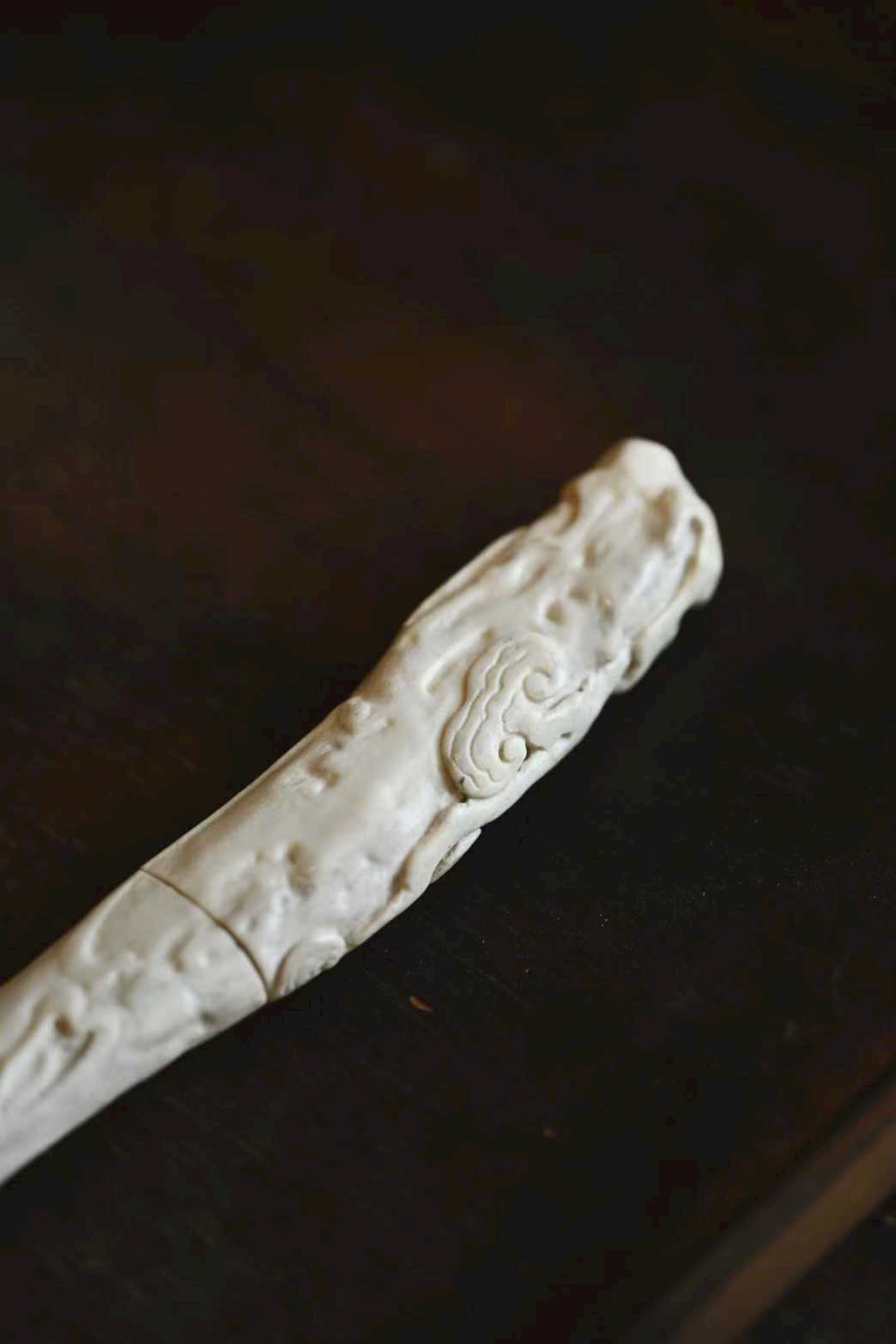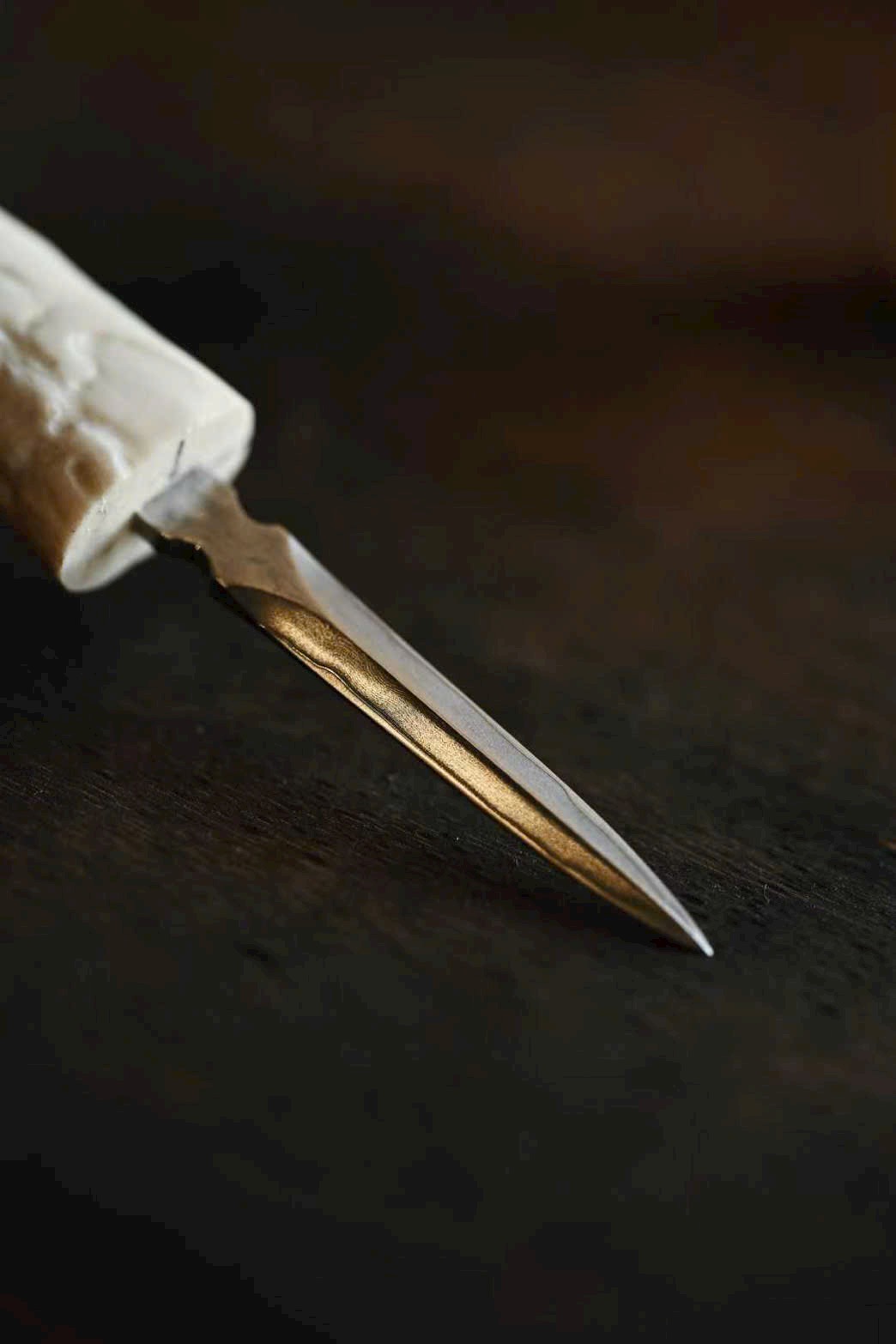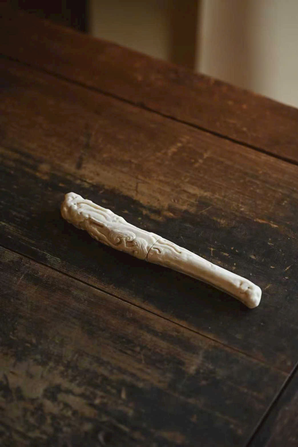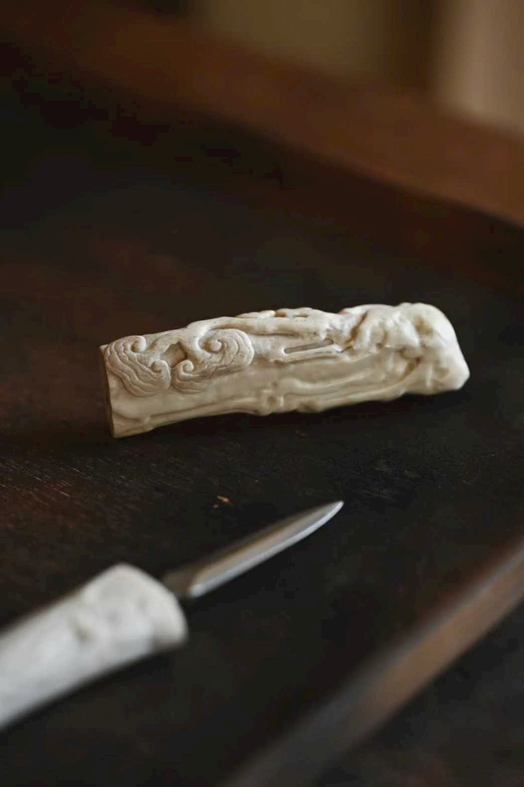 Chọn chất liệu sừng hươu mịn màng, ấm áp; trên thân dao chạm khắc linh chi quấn quanh, tầng lớp sinh động, điêu khắc tinh xảo, mang vẻ cổ mộc mà tao nhã. Đặt trên bàn trà, phong vị càng thêm thanh nhã.
