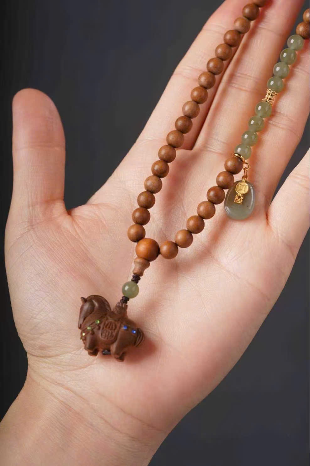 ✨ Dây chuyền đàn hương lão sơn “Mã đáo thành công”