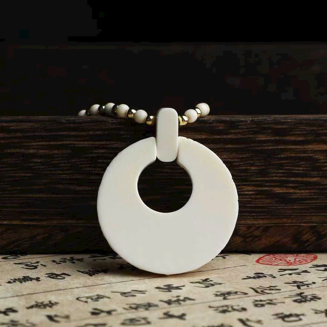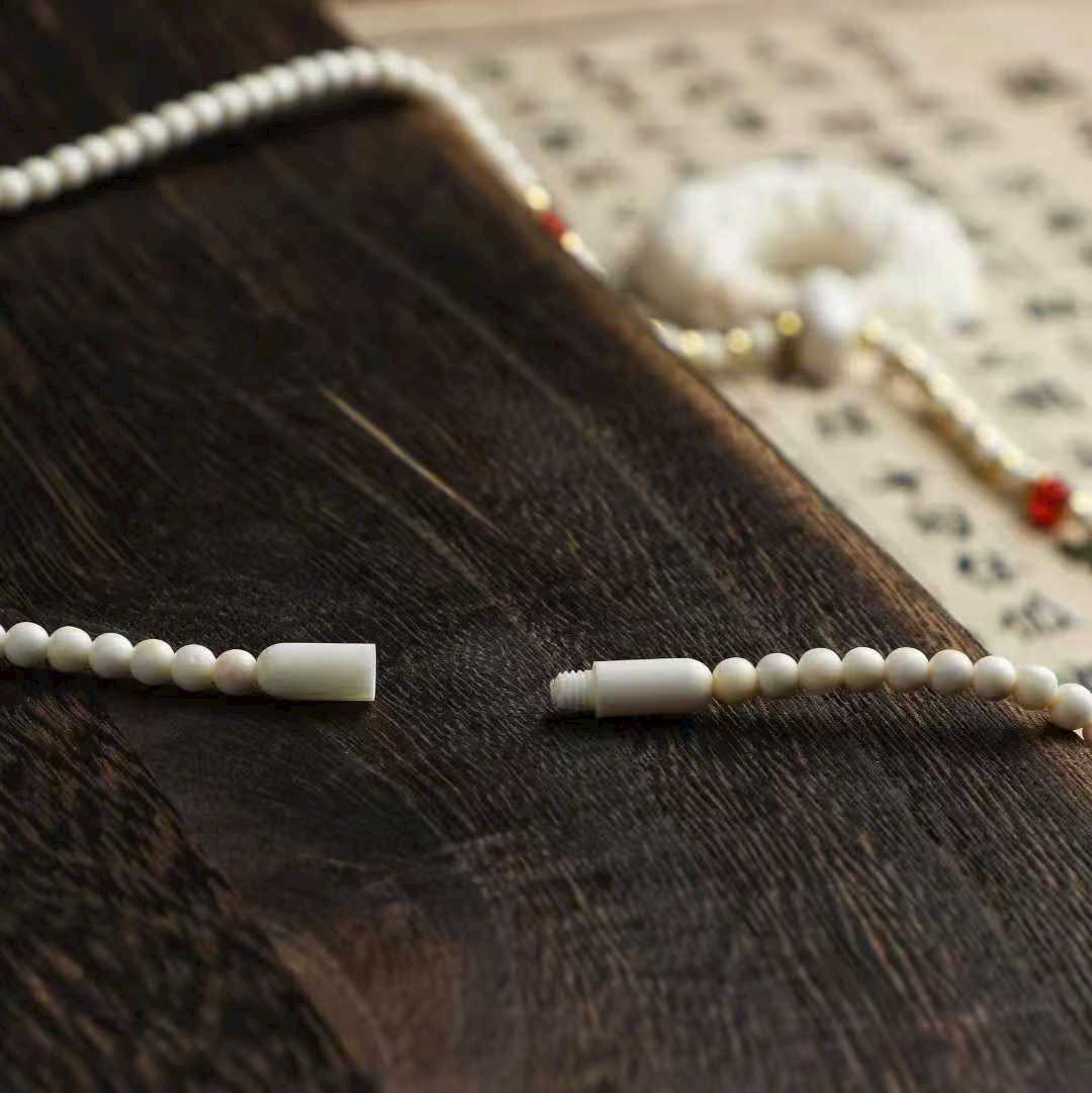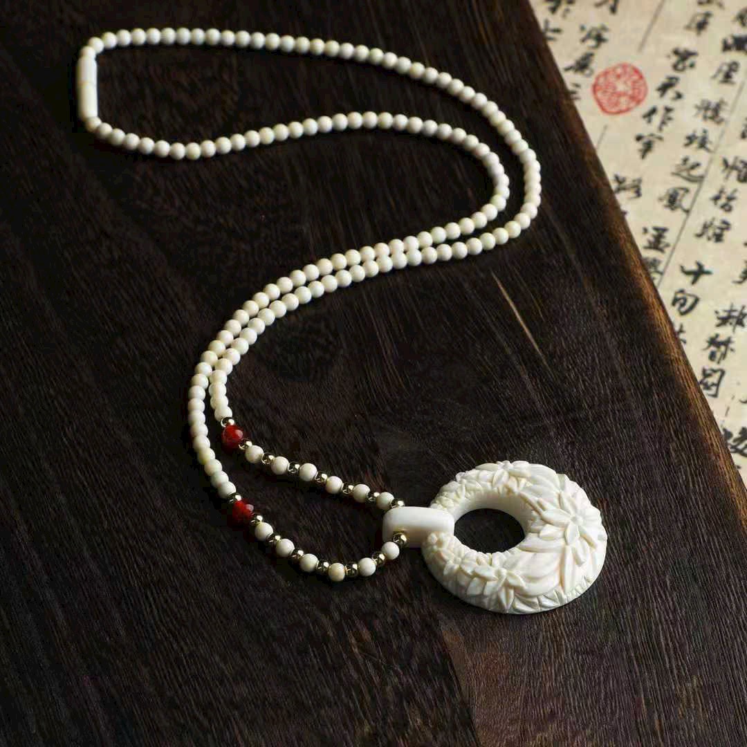 Tác phẩm thượng phẩm tinh tuyển, phối chuỗi hạt phong cách Hồng Kông đường kính 3mm cùng mặt hoa ngọc lan kích thước 42×35×8mm, kèm khóa ngà tiện lợi khi đeo. Tổng trọng lượng khoảng 14g.