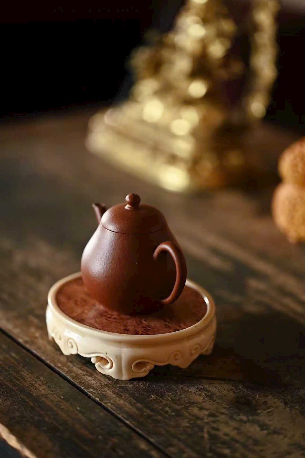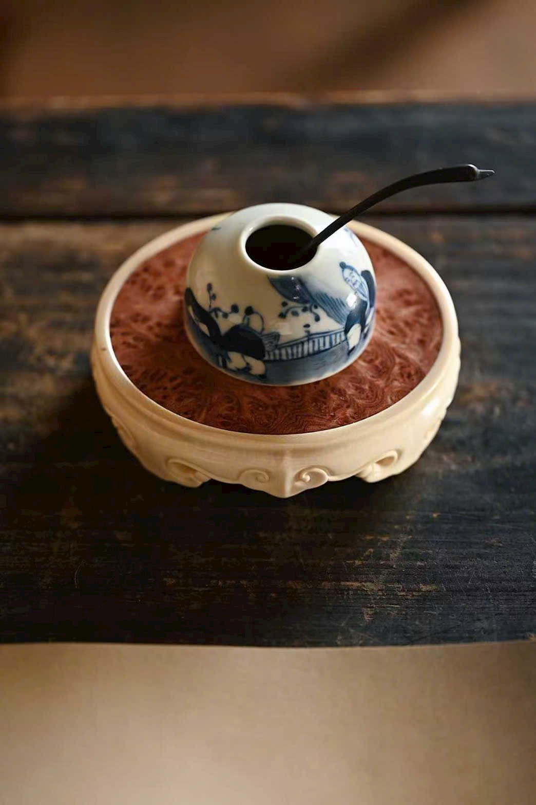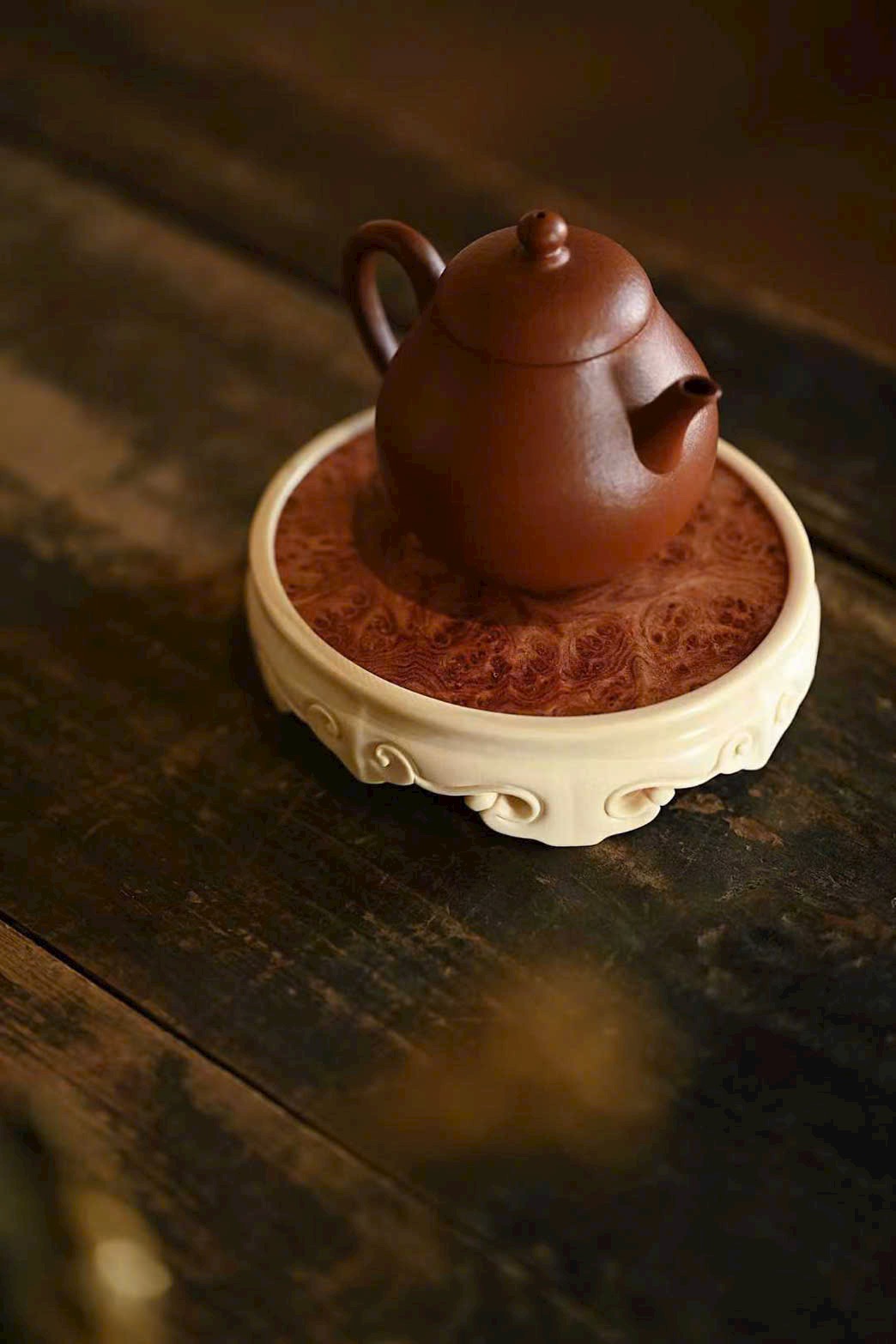 Ngà ma mút x gỗ nu hương Miến Điện | Đế “vân như ý” – đế ấm, khay trà