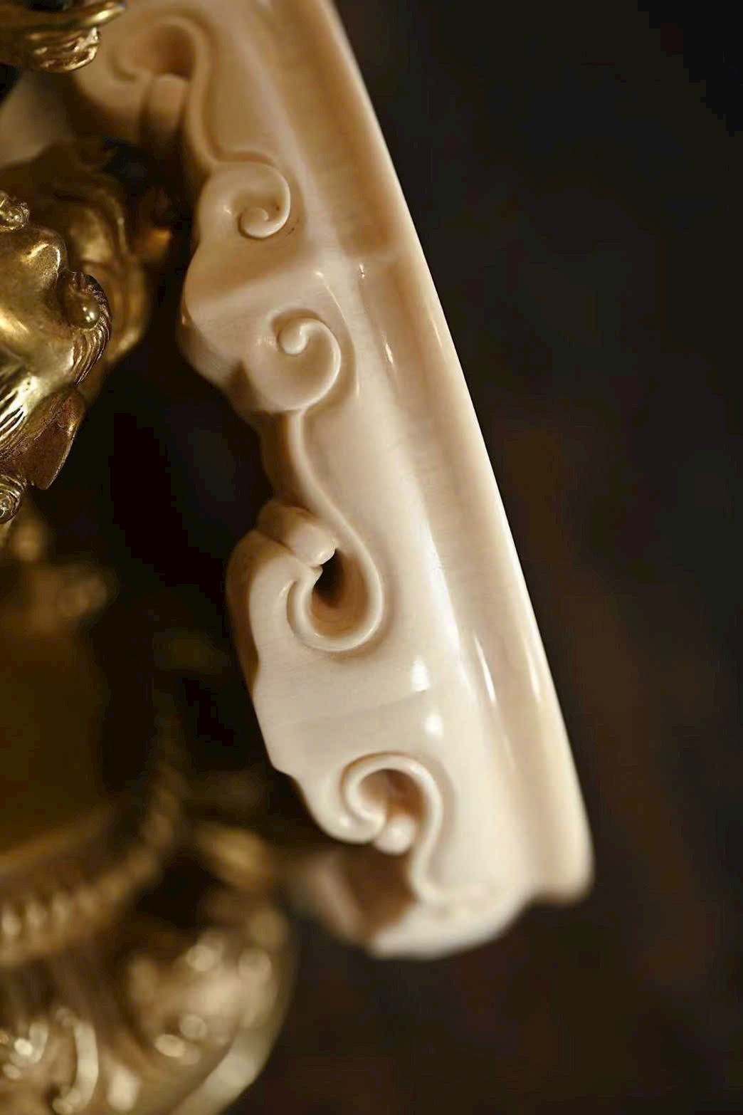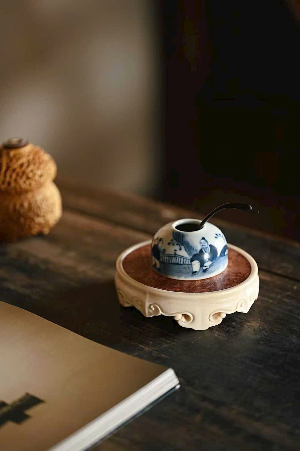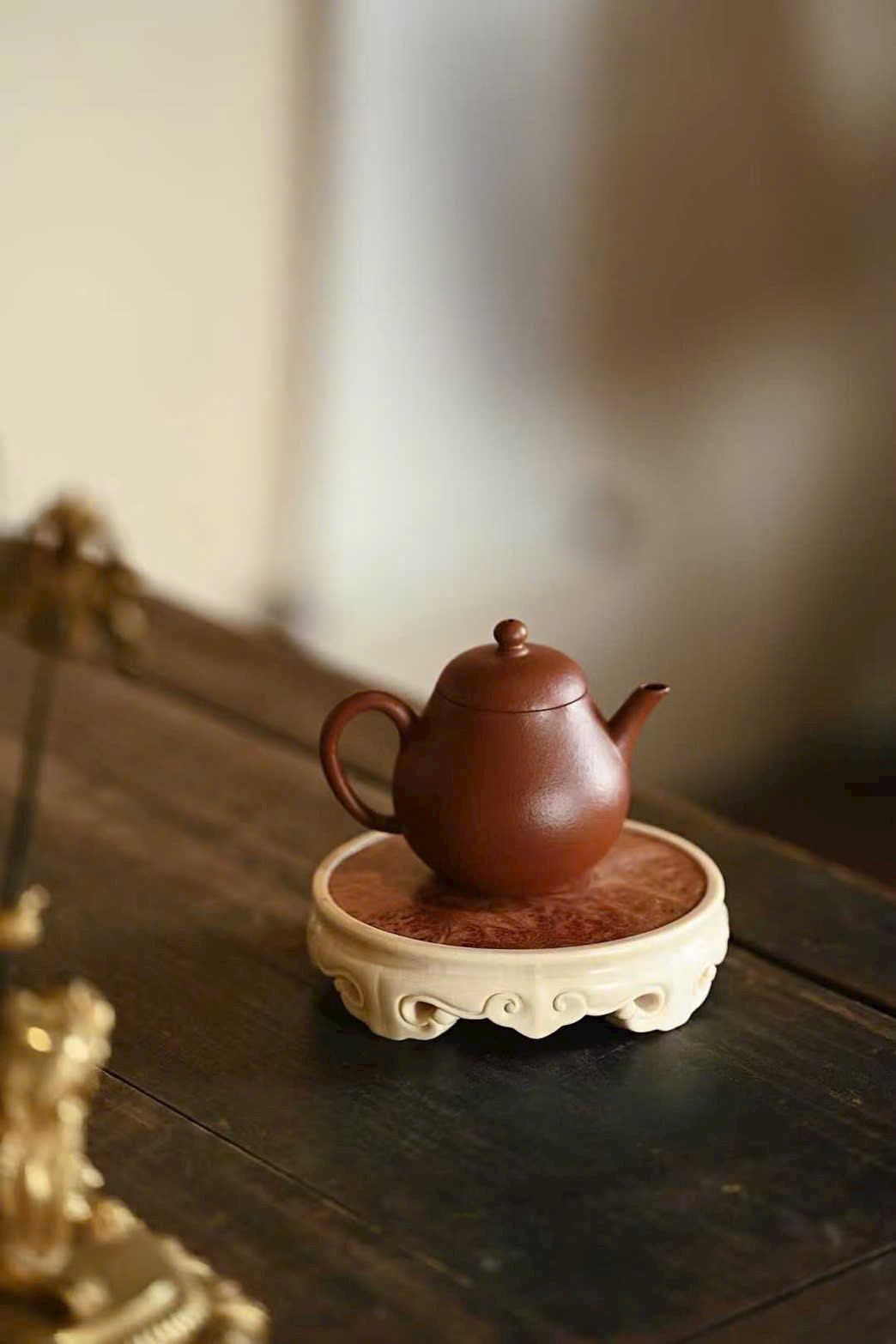 Ngà ma mút x gỗ nu hương Miến Điện | Đế “vân như ý” – đế ấm, khay trà