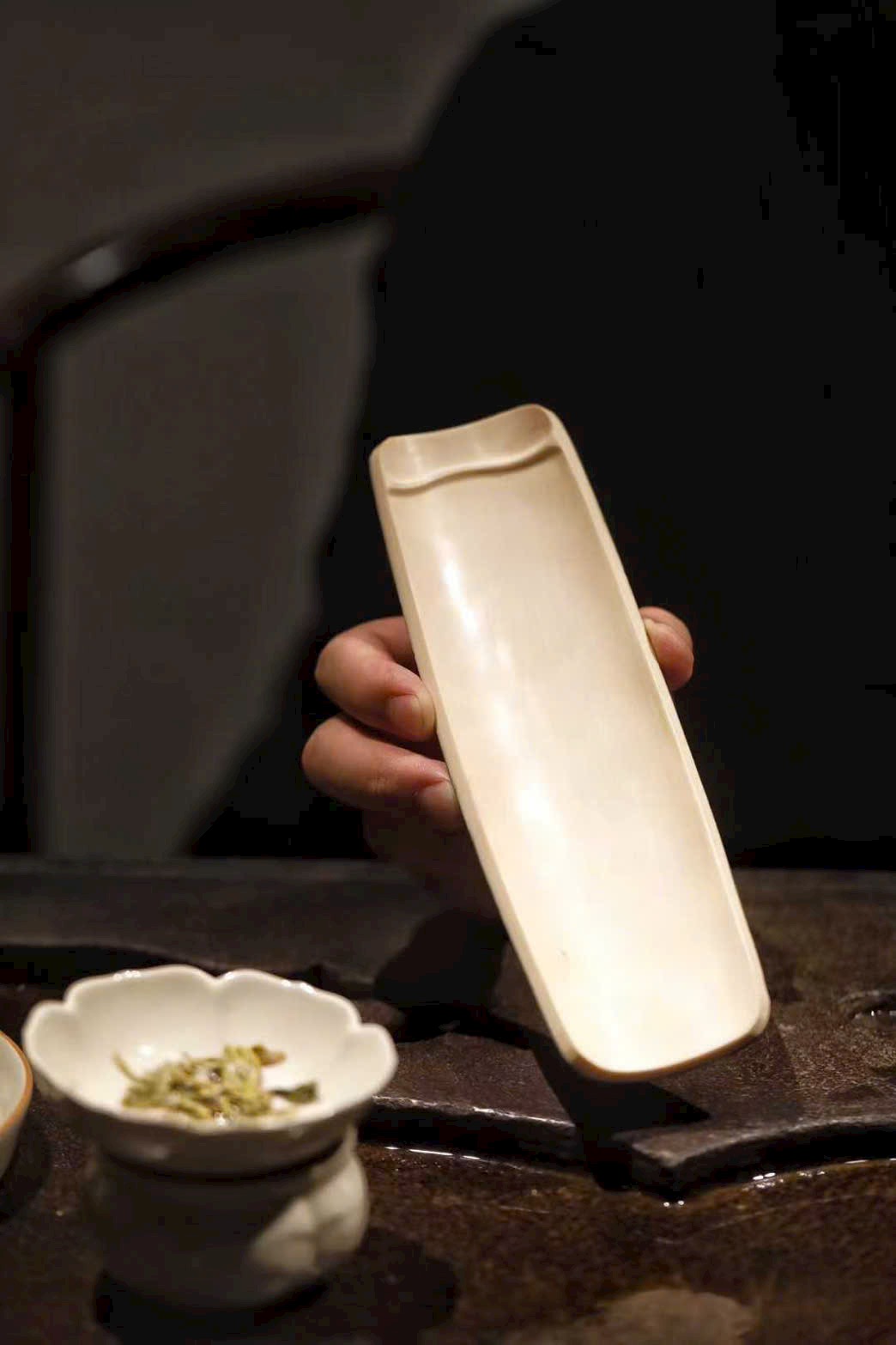 Hình dáng muỗng thoải mái vừa tay, tiện để xúc trà, đồng thời mang ý nghĩa “khoáng đạt – nạp phúc”, là món thủ công tinh mỹ đầy tao nhã trên bàn trà.