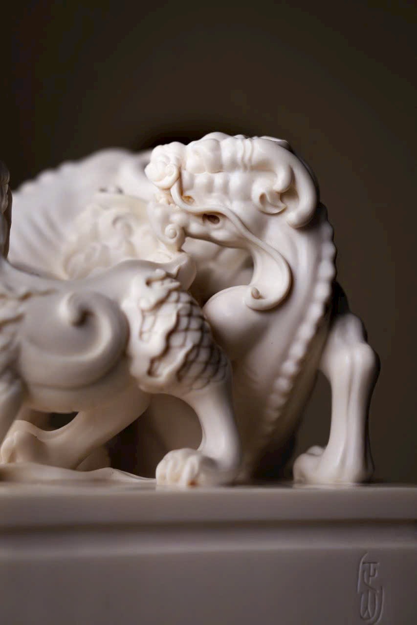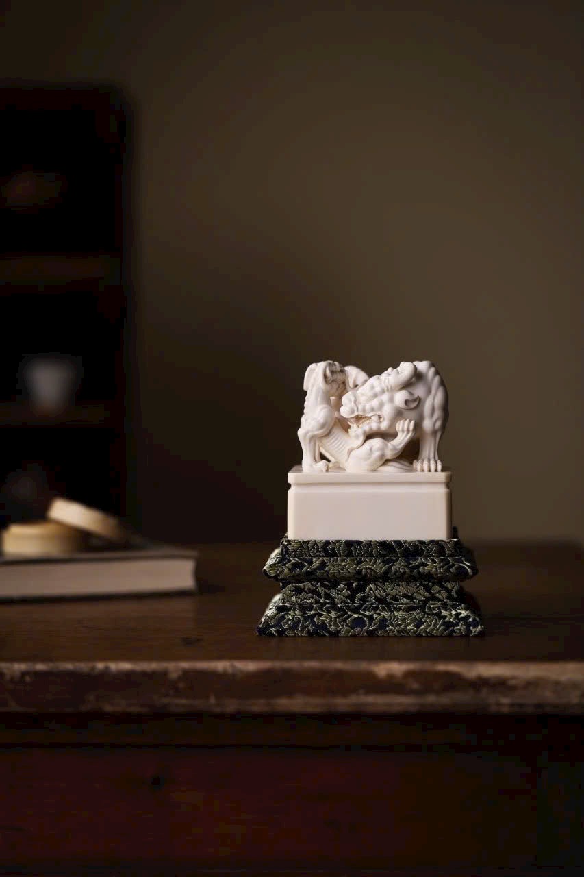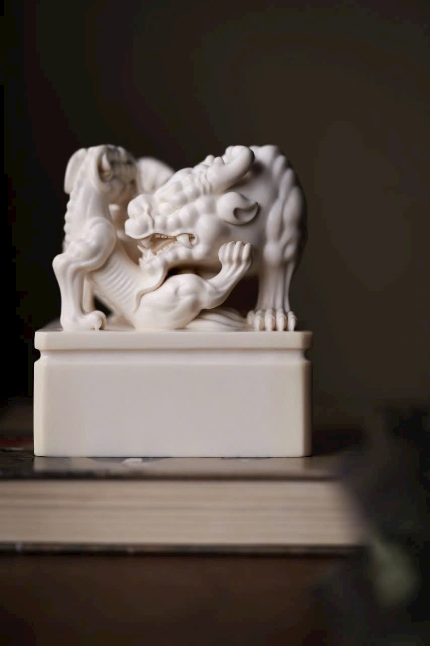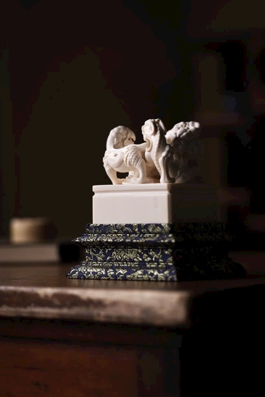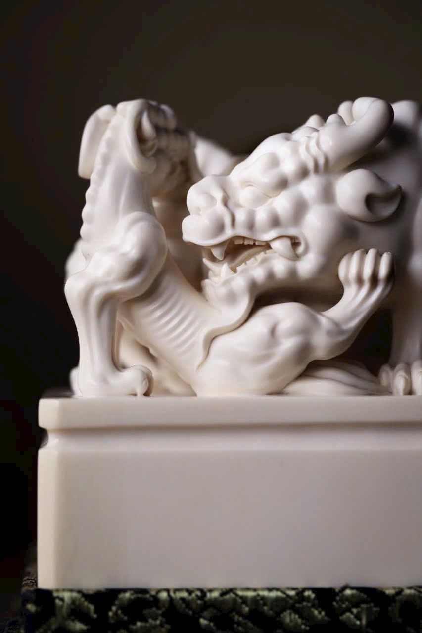 Mô phỏng theo kiểu ấn ngự dụng của Càn Long, đường dao uyển chuyển mạnh mẽ, bố cục sinh động đầy thú vị. Dị thú uốn lượn, nhảy vọt, động tác linh hoạt mang thần thái sống động. Trưng bày trên án thư, tăng thêm sinh khí, tạo điểm nhấn độc đáo và nổi bật.