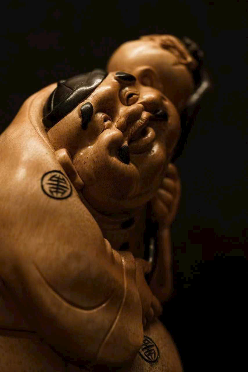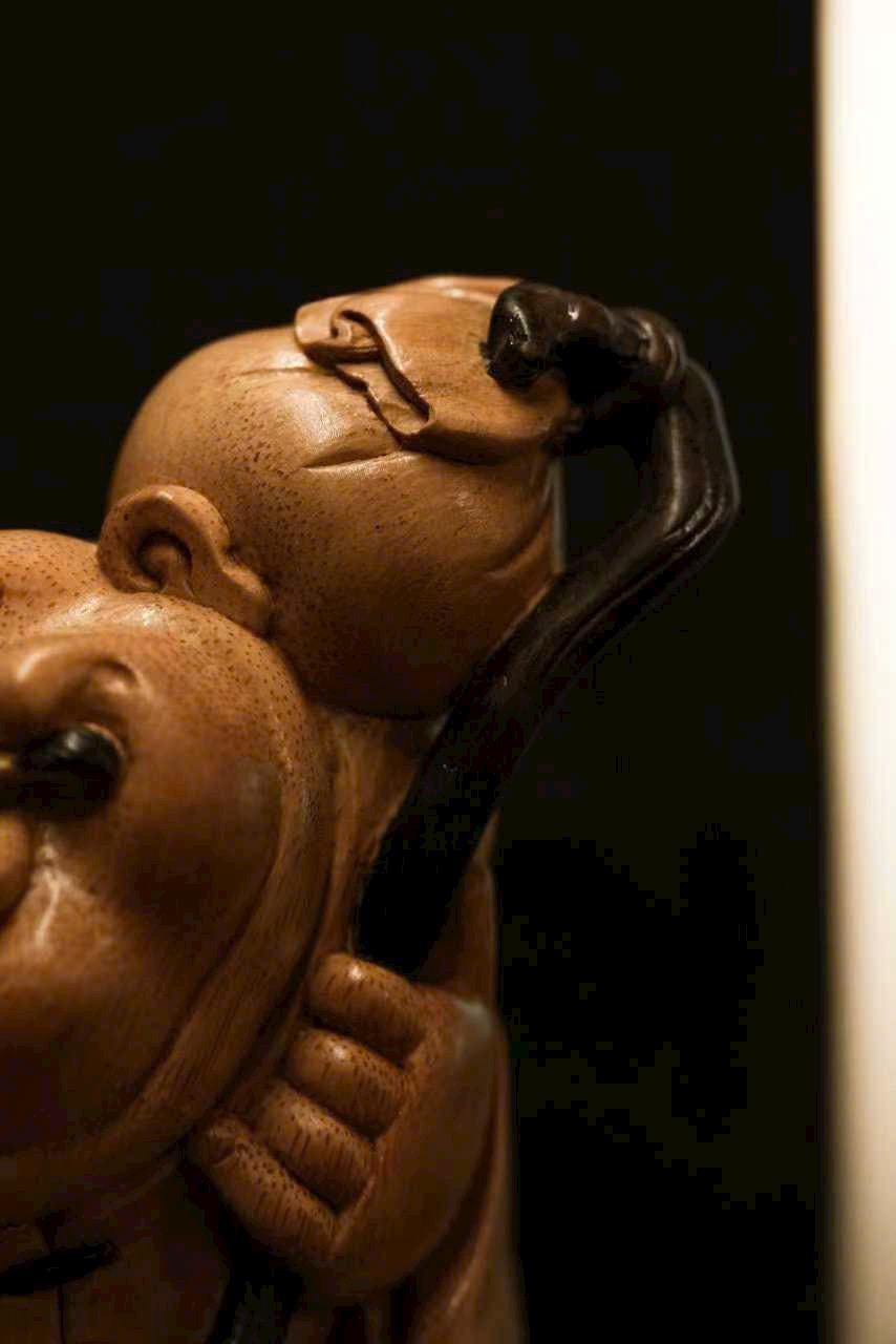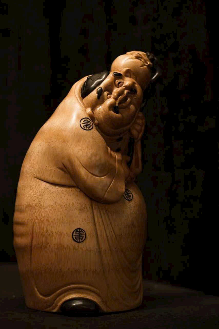 Toàn bộ được chạm khắc thủ công, hình khối tròn đầy, mượt mà, toát lên thần thái hiền hậu và phú quý viên mãn. Nhân vật tay nắm túi tiền, dáng vẻ chính trực mà vẫn mang nét tham tài, ham sắc, thể hiện sinh động tính cách đời thường. Bày trên bàn làm việc hay phòng khách đều mang ý nghĩa phú quý, an nhàn và sung túc.
