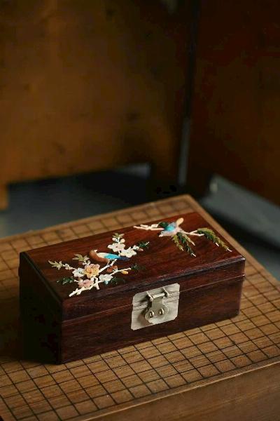 Hộp trang sức khảm bách bảo gỗ tử đàn lá nhỏ