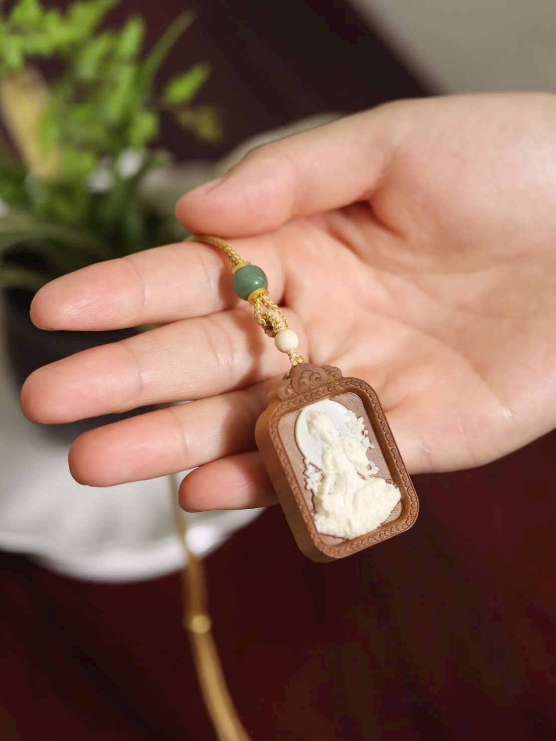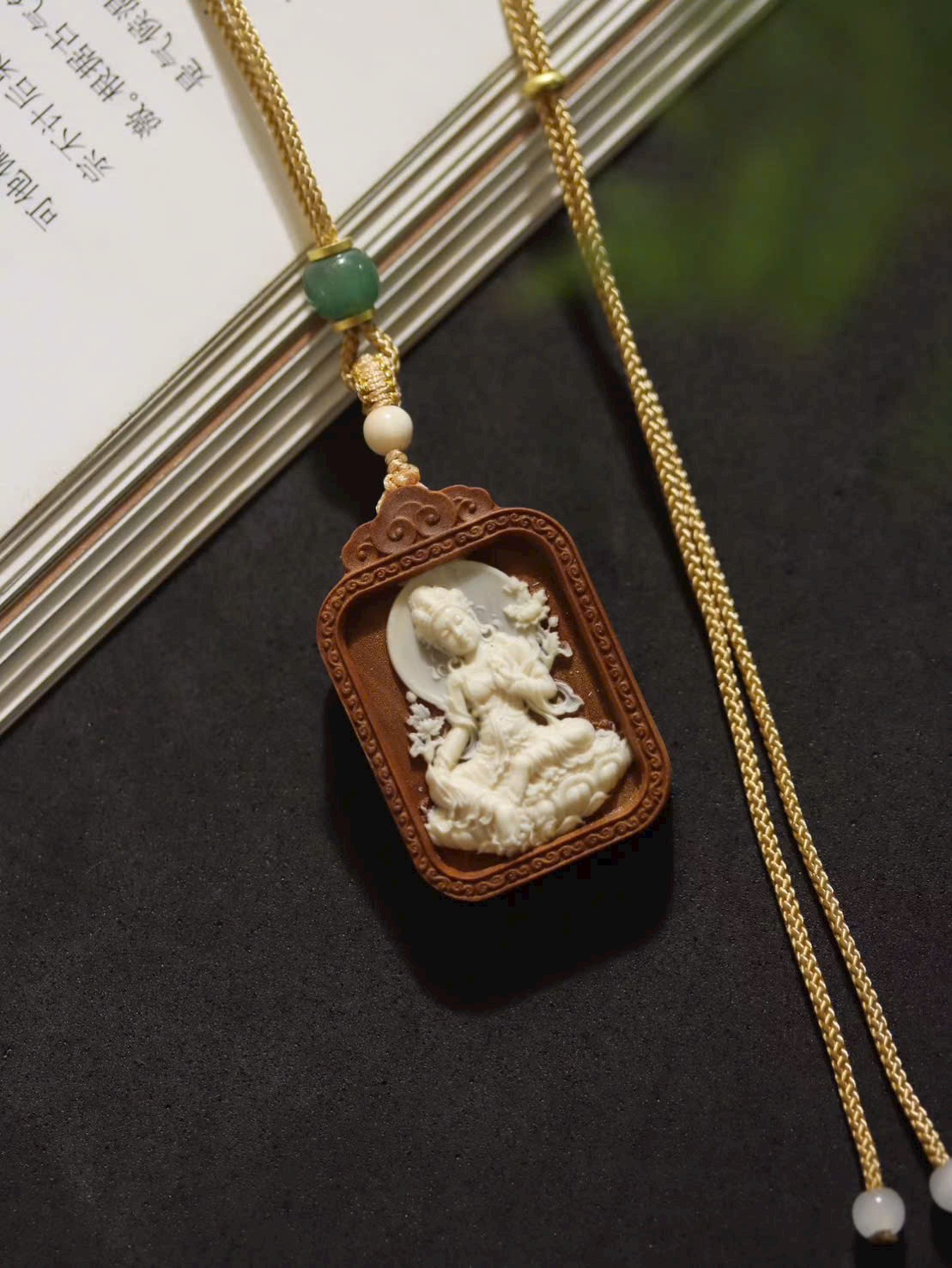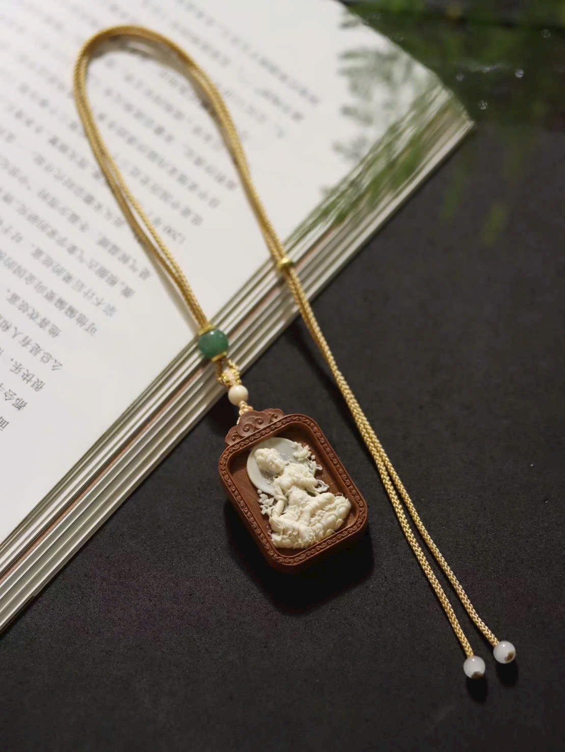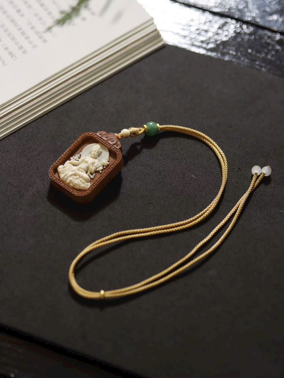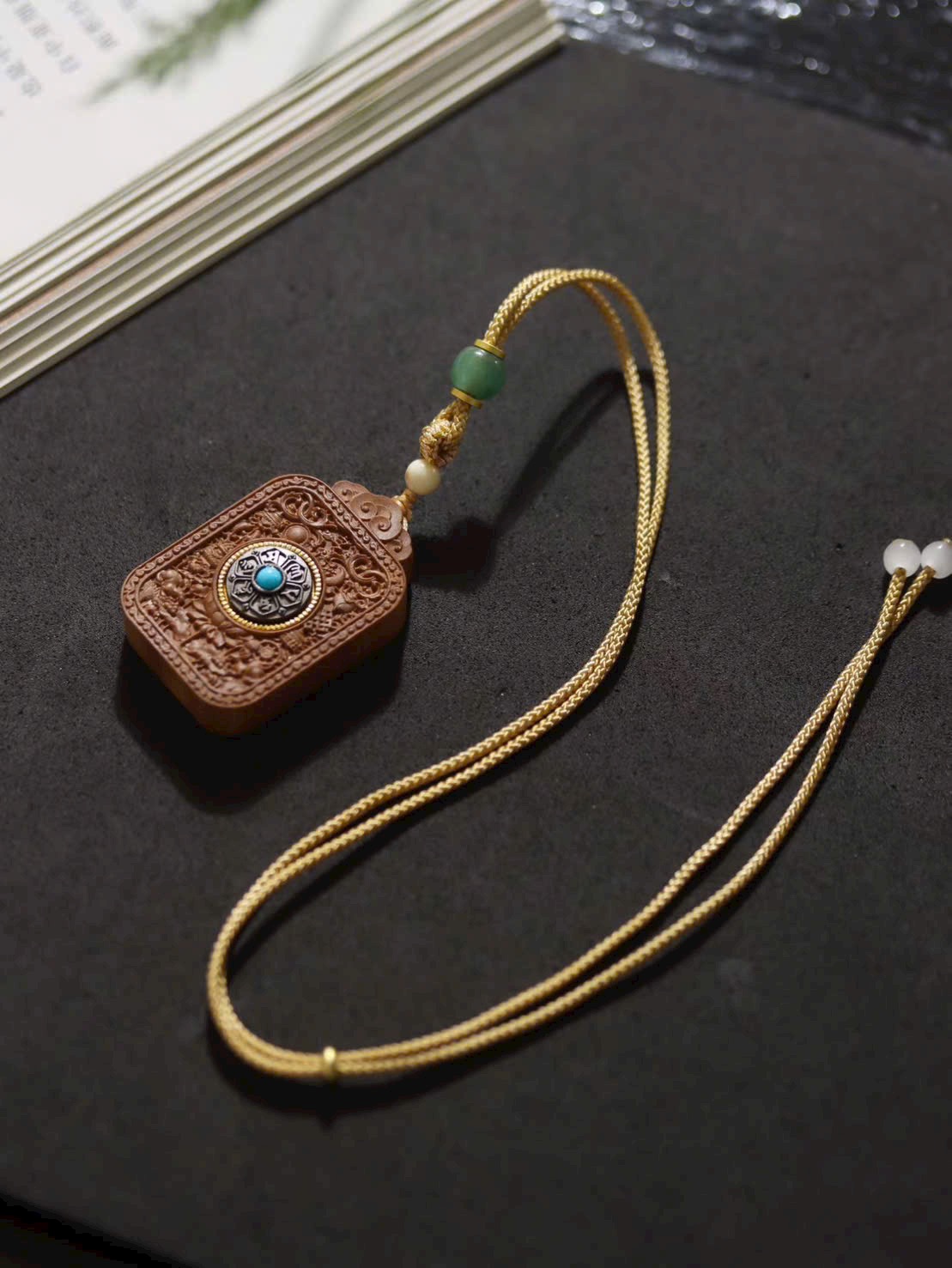 Chế tác từ đàn hương kết hợp m.a mút khảm liền mạch, kỹ nghệ tinh xảo độc đáo. Phối dây treo cao cấp, tặng kèm hộp quà sang trọng – phù hợp tự đeo hoặc biếu tặng.