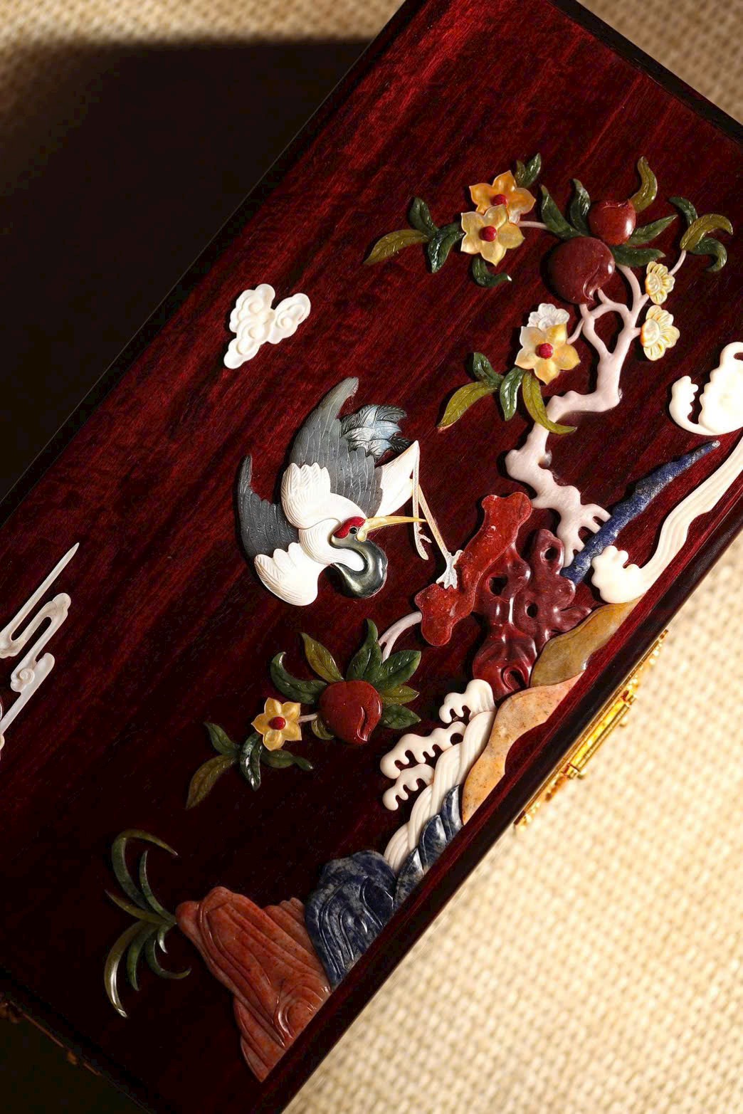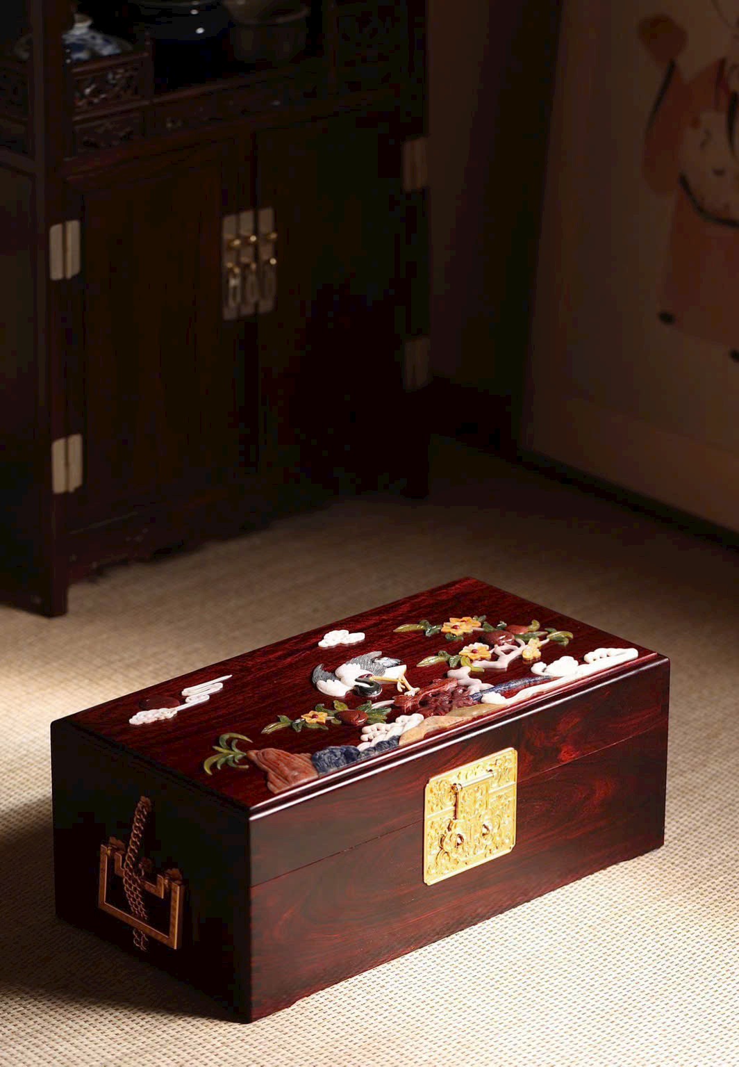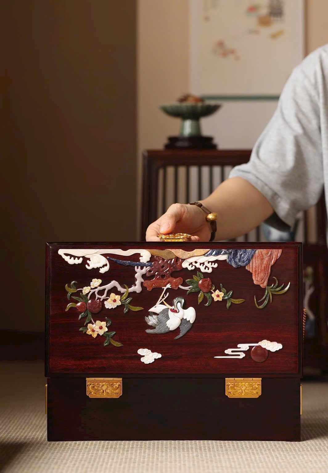 Tử đàn x bách bảo khảm “Đồ Thụy Hạc” – Hộp trang sức