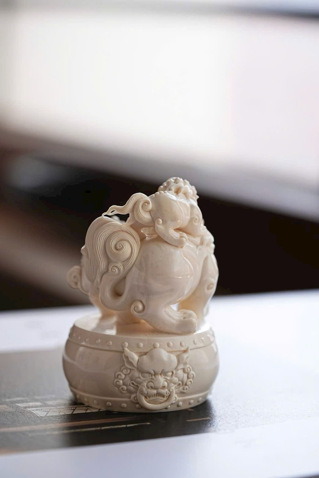 Linh sư mang ý nghĩa tốt lành, cát tường; lưng cõng một tiểu sư tử, tượng trưng cho “đời đời phú quý”, còn hàm ý “dắt con vào triều”, biểu trưng cho con cháu hưng vượng, luôn có chỗ dựa — phú quý truyền đời.