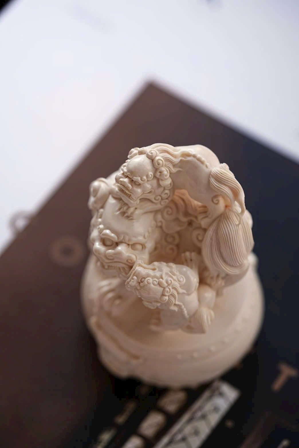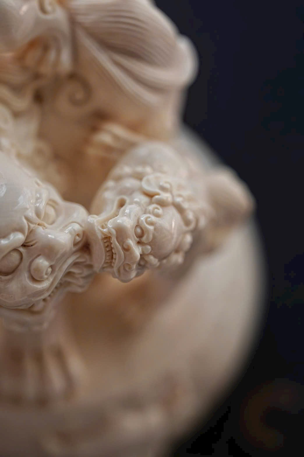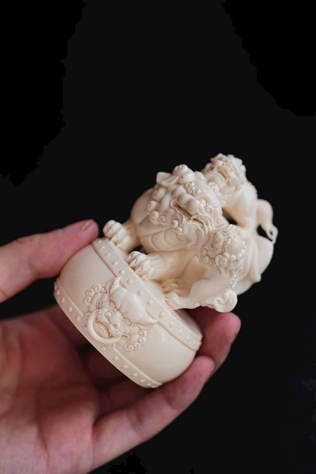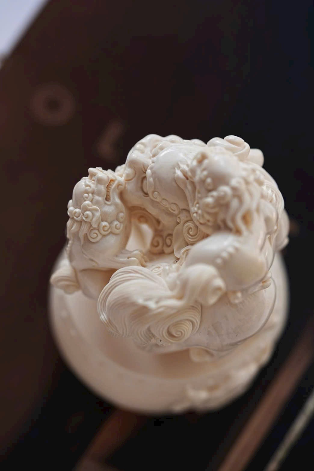 Tuyển chọn ng.à ma mút chất lượng cao, hình dáng cân đối, mật độ dày, bố cục tổng thể hài hòa. Đường nét cơ bắp tròn đầy, kỹ nghệ chạm khắc tinh xảo, mang ý vị cát tường — đúng là tác phẩm khó gặp.
