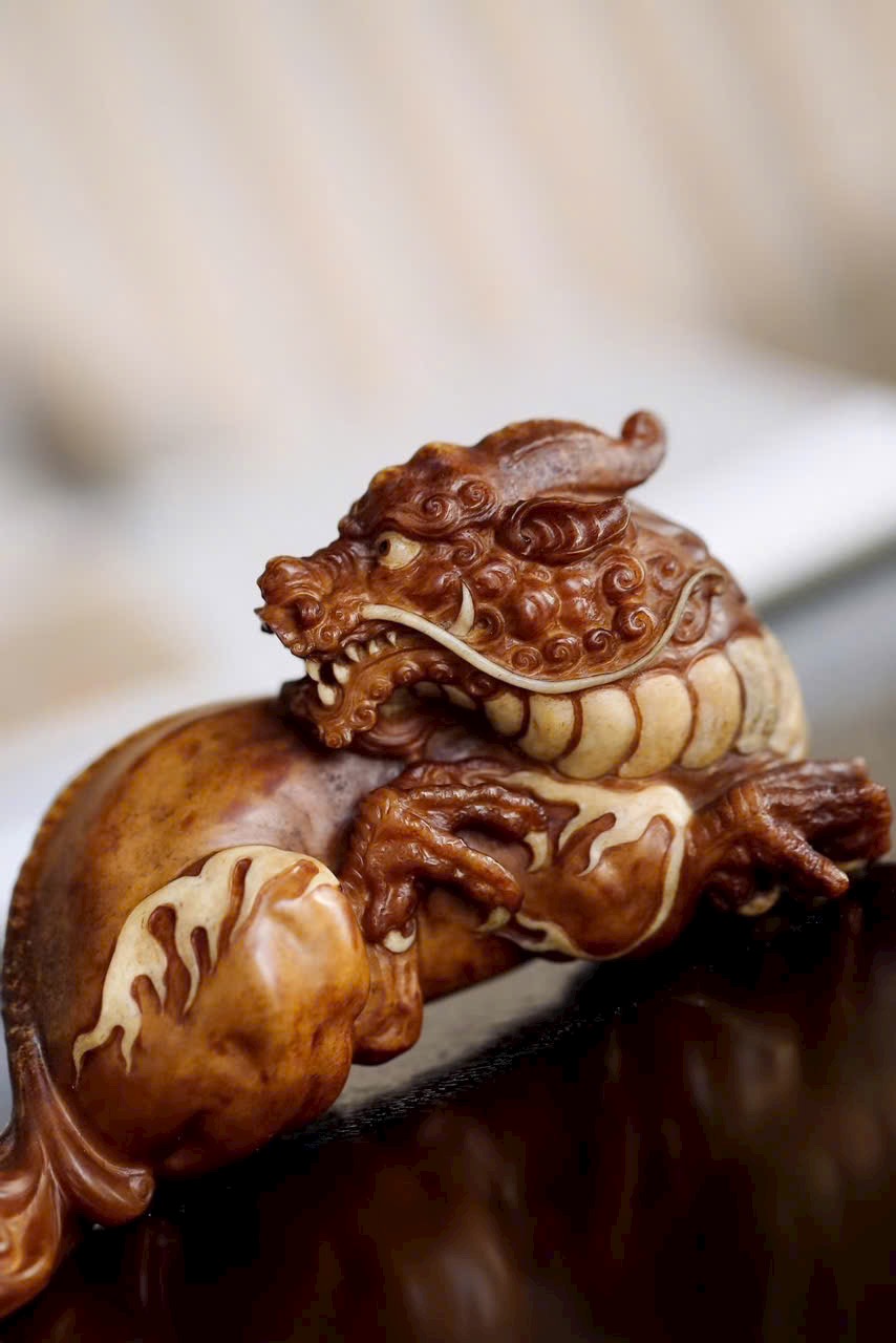 Tác phẩm điêu khắc thủ công, đường nét uyển chuyển mạnh mẽ, hình khối tròn đầy mượt mà.