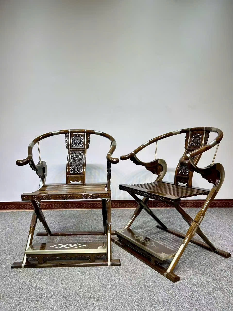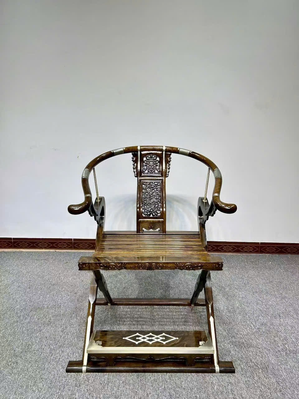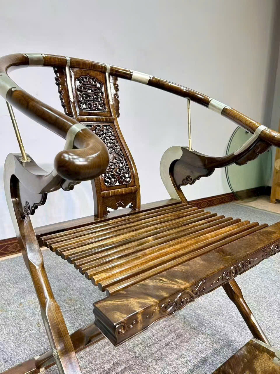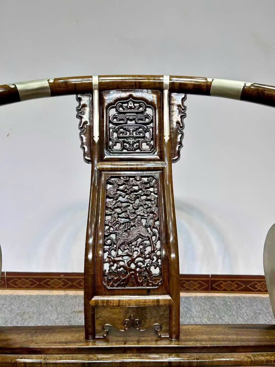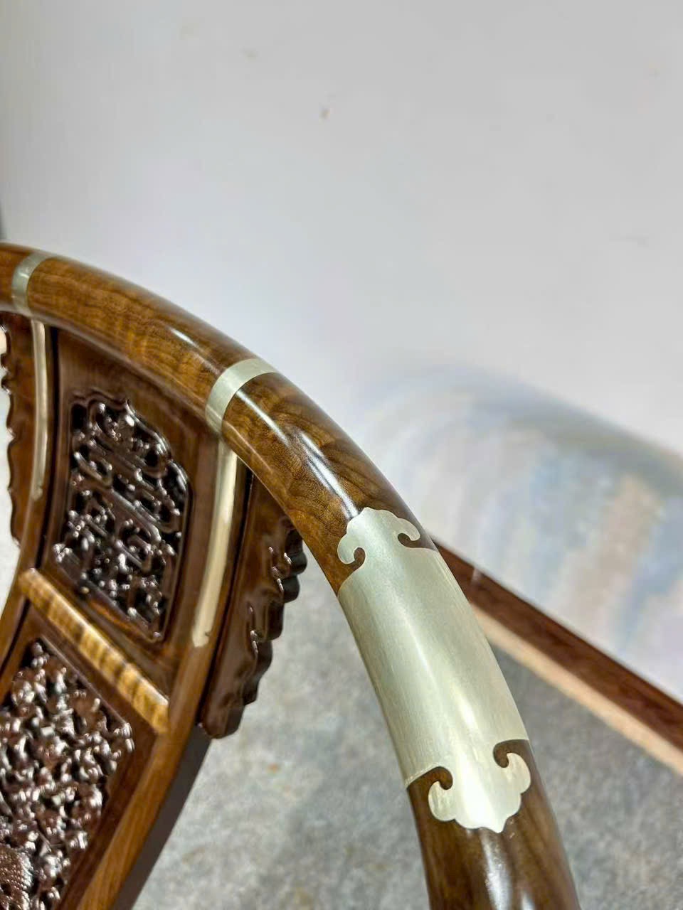 Toàn bộ ghế được gia công thủ công tỉ mỉ, dáng ghế cong mềm mại, kết cấu vững chắc, vừa thể hiện khí độ cổ điển tao nhã, vừa mang vẻ uy nghi trầm tĩnh.