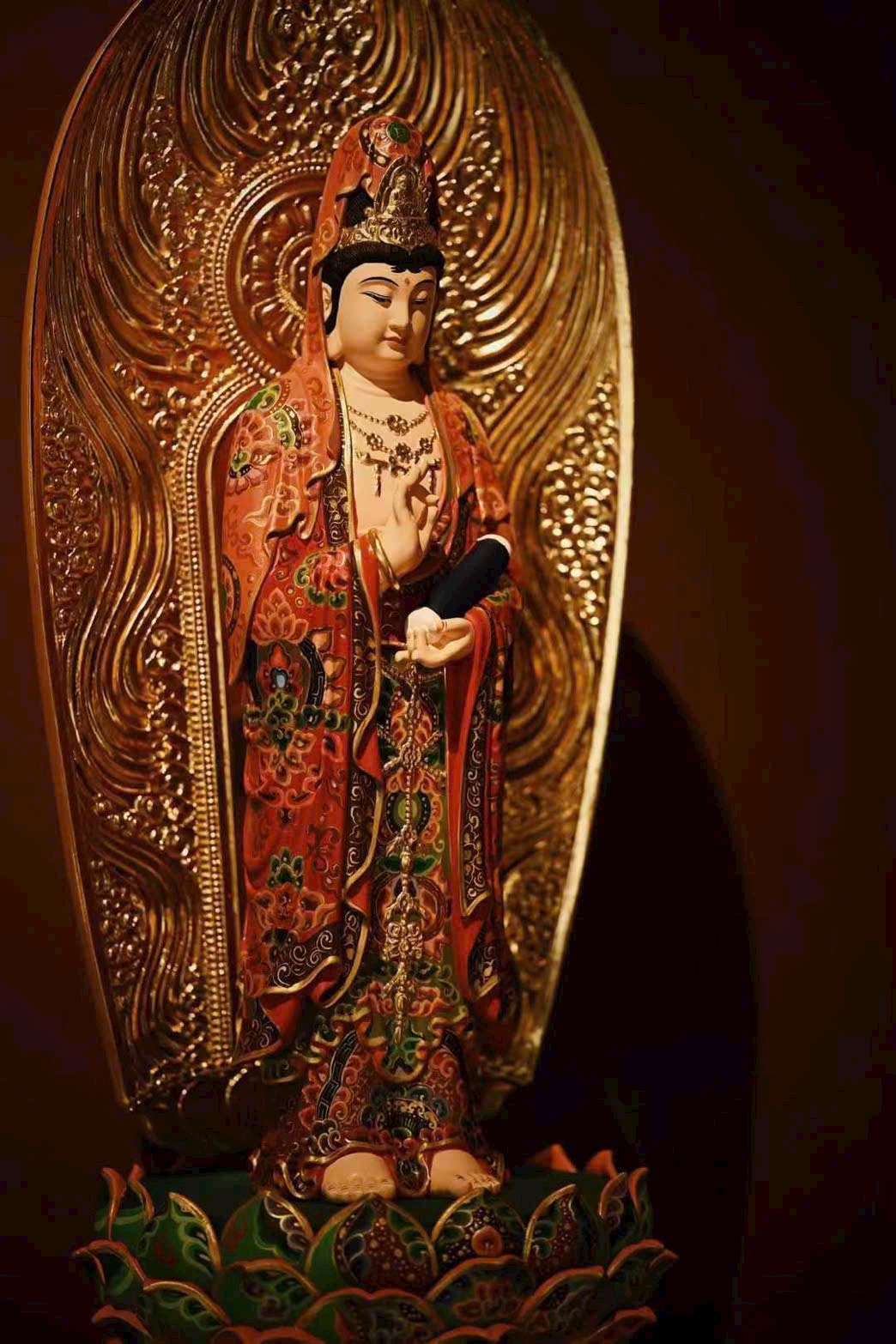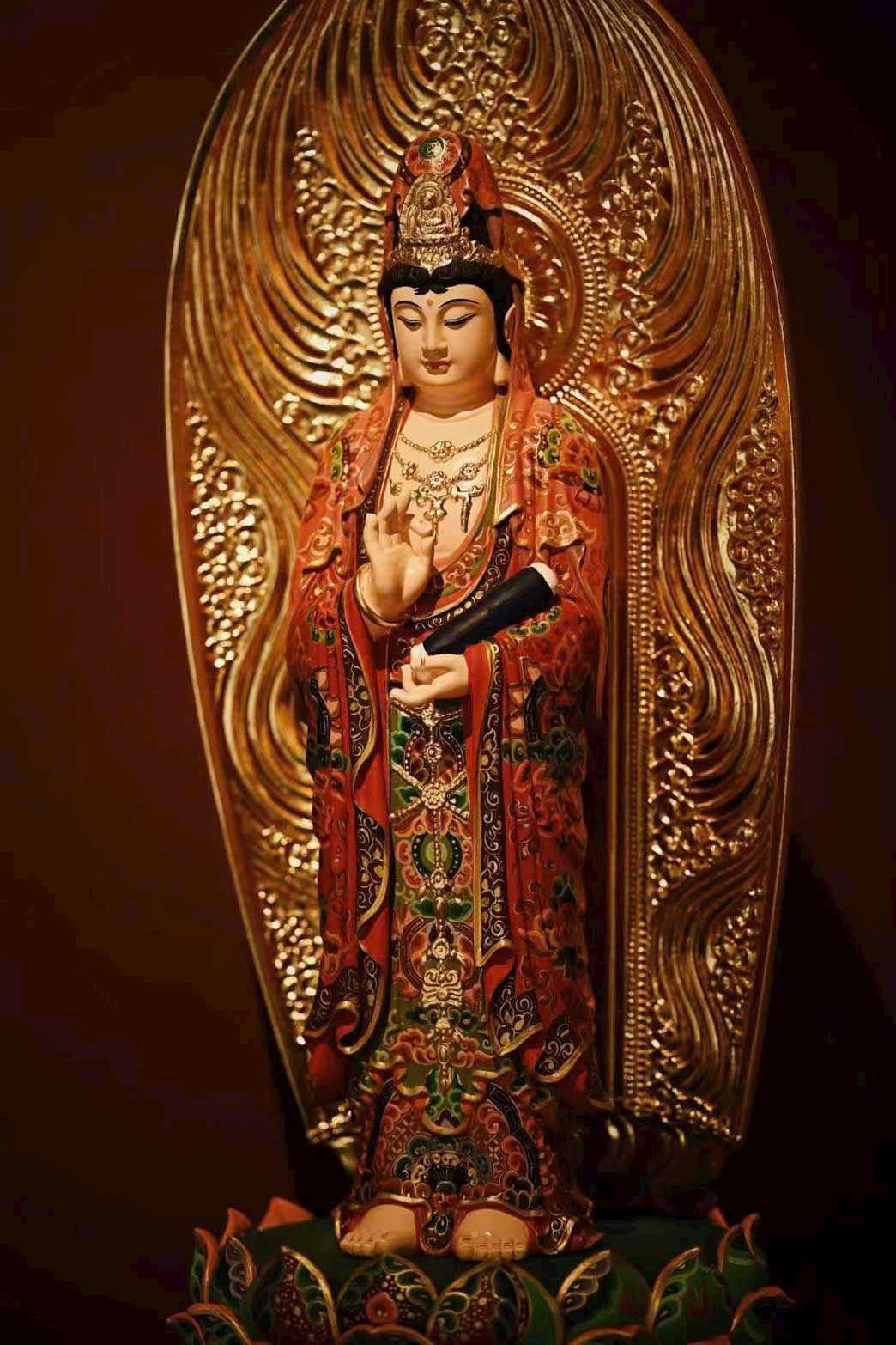Gỗ Chương Mộc vẽ gấm dát vàng “Quan Âm”