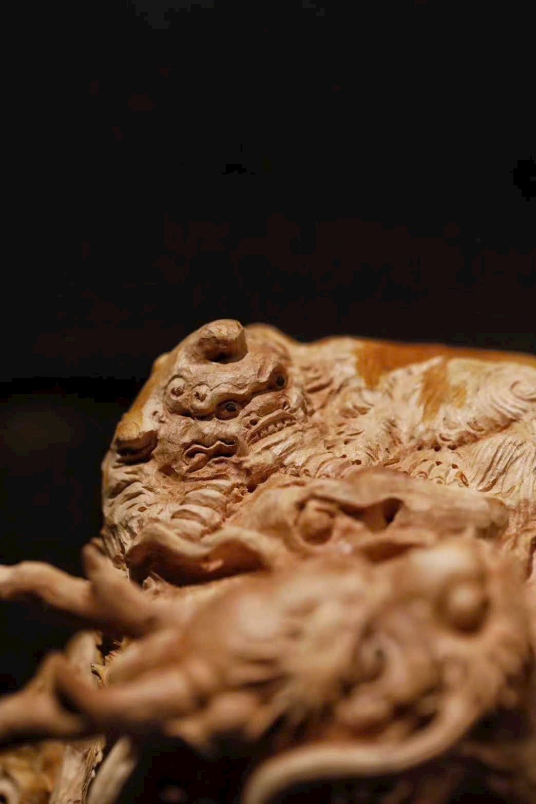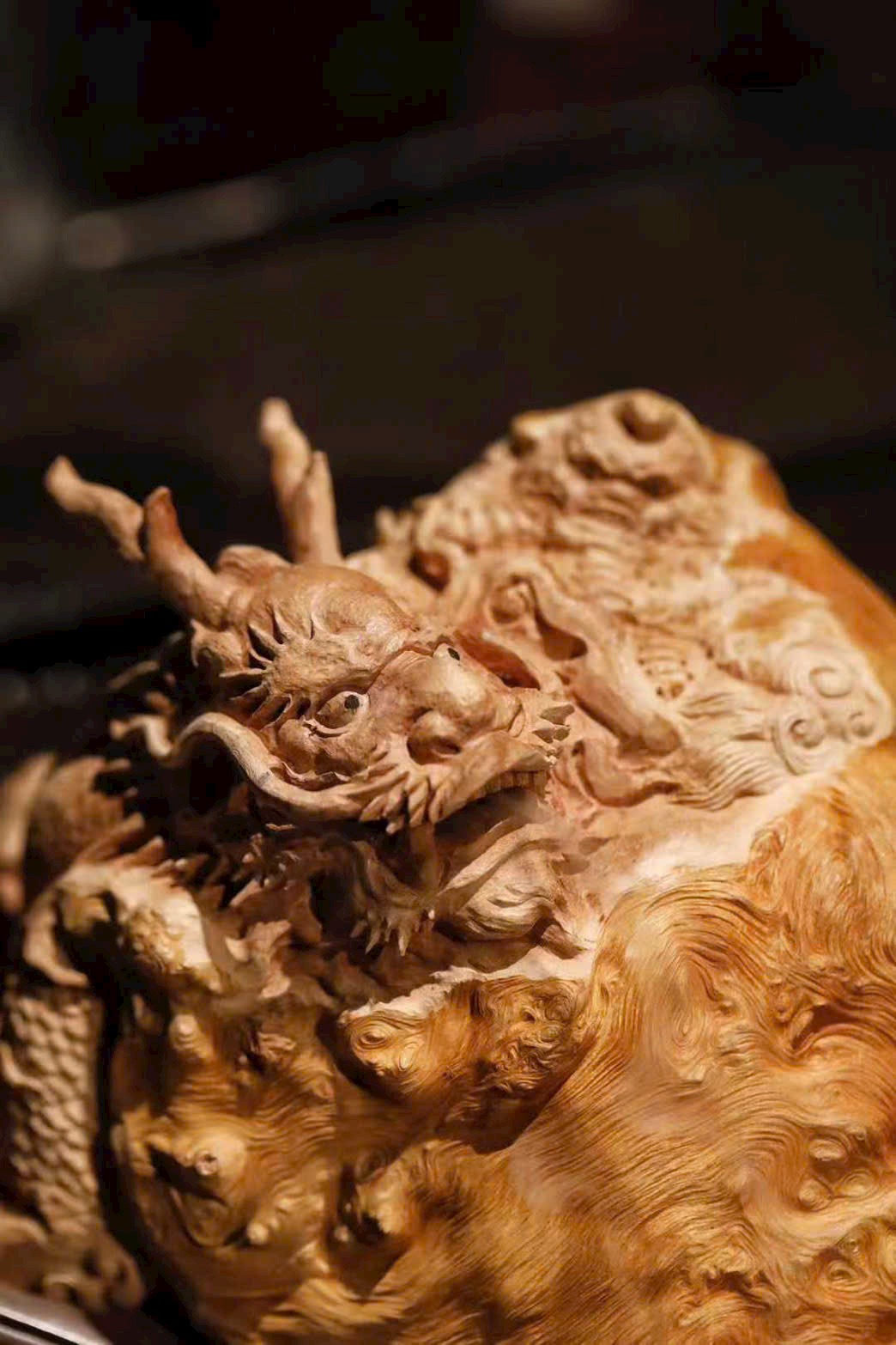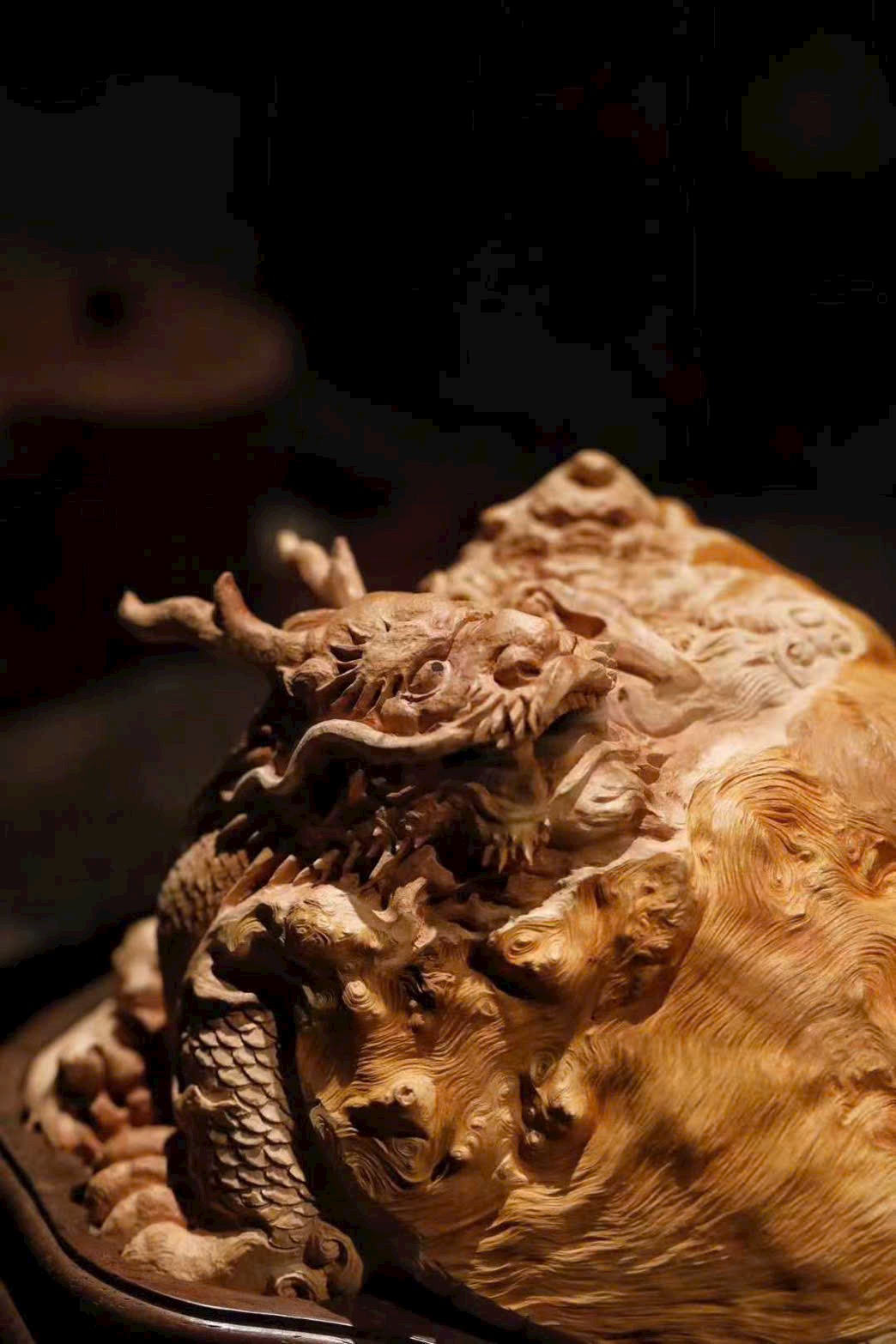Tác phẩm được chế tác từ lũa Lệ Chi tự nhiên, tận dụng thế liệu khéo léo để tạo hình Long Quy hài hòa, tựa như sinh thành từ thiên nhiên. Đầu rồng chạm khắc mạnh mẽ, đường vân cổ kính; mai rùa hiện rõ từng lớp, chân thực và sống động. Vân gỗ tự nhiên hòa quyện cùng tay nghề điêu khắc, tạo nên tổng thể vừa mộc mạc vừa tinh xảo.