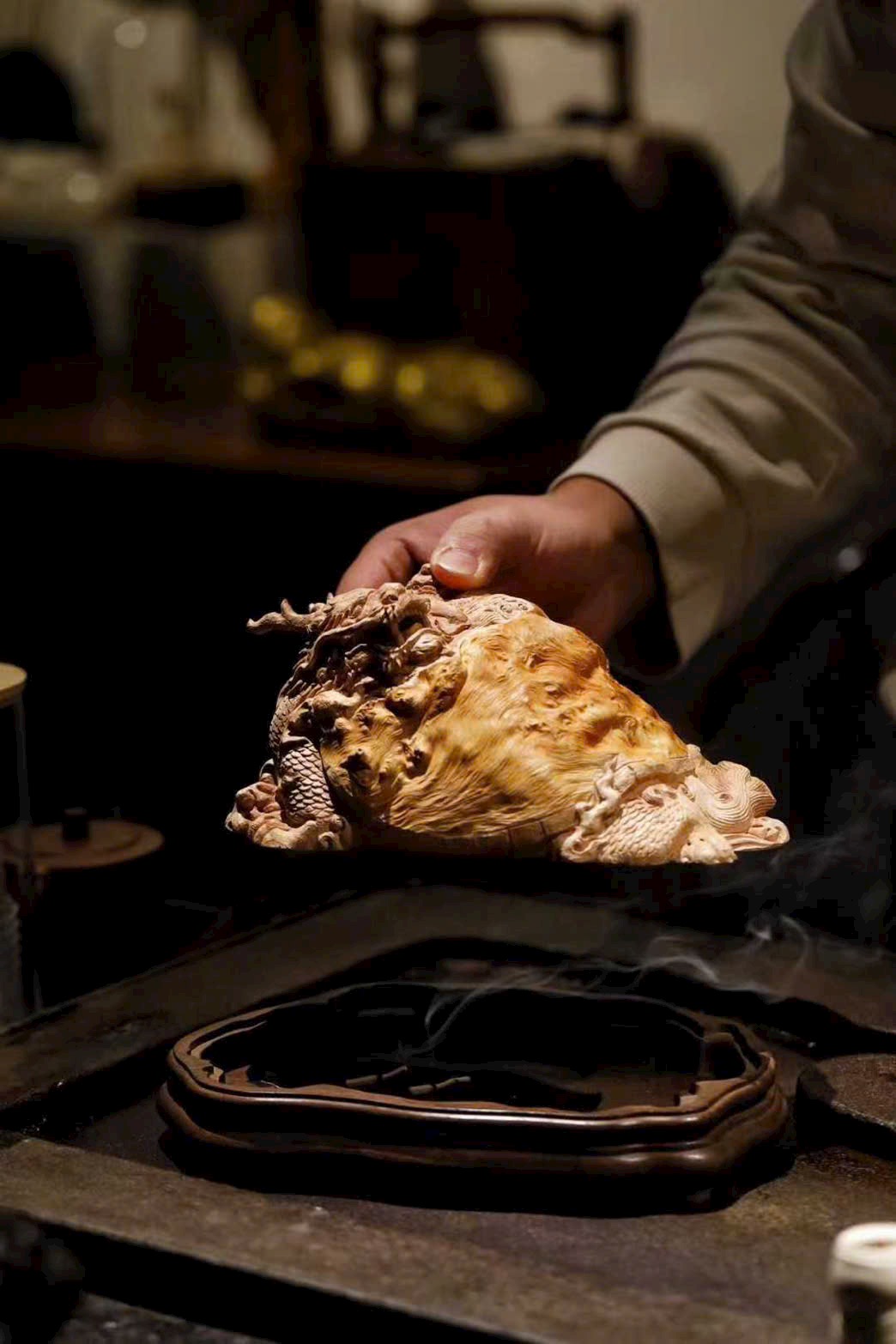 Khi đốt hương, làn khói xanh nhẹ nhàng tỏa ra từ các khe chạm, như cảnh Long Quy nhả cát khí, mang đến cảm giác linh động và thanh tịnh. Trưng bày trong không gian sống vừa tăng thú vị tự nhiên, vừa hàm chứa ý nghĩa cát tường – chiêu tài – trấn trạch.