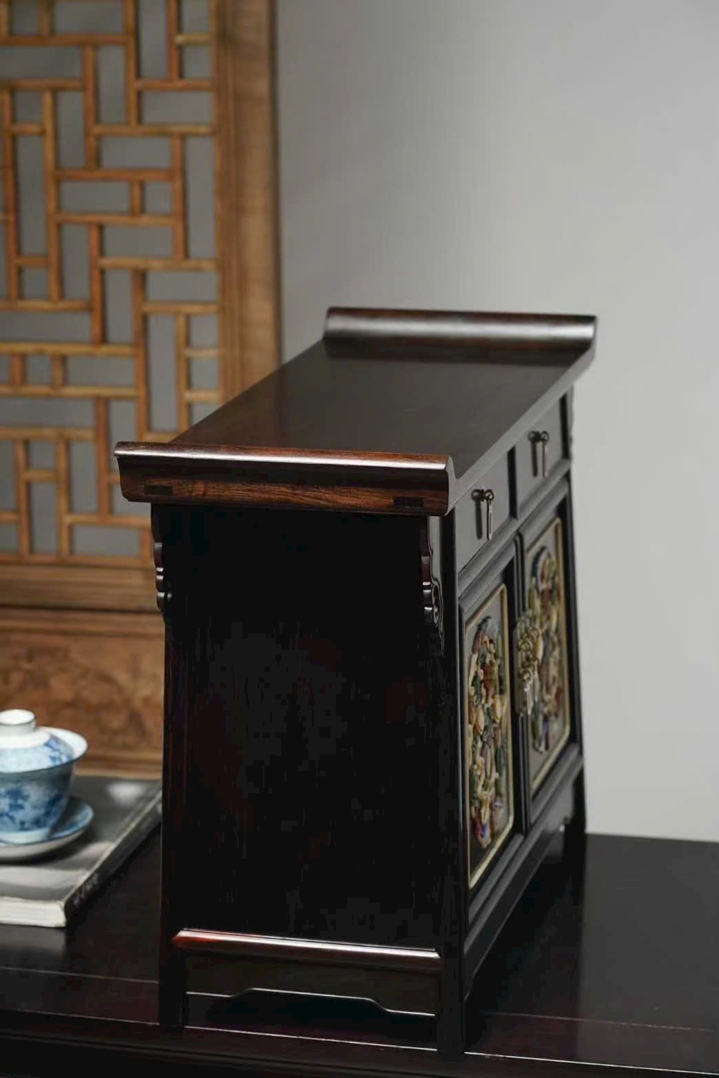 Phù hợp đặt trên án thư, bàn trà hoặc tủ trưng bày để lưu trữ trà, chén nhỏ, vật phẩm phong thủy hay đồ sưu tầm. Vừa thực dụng vừa tôn lên phong vị cổ điển cho không gian.