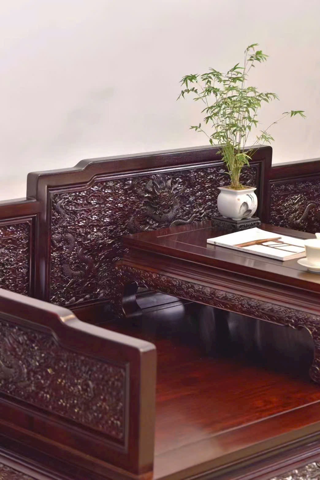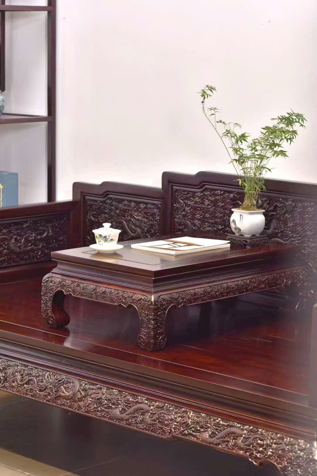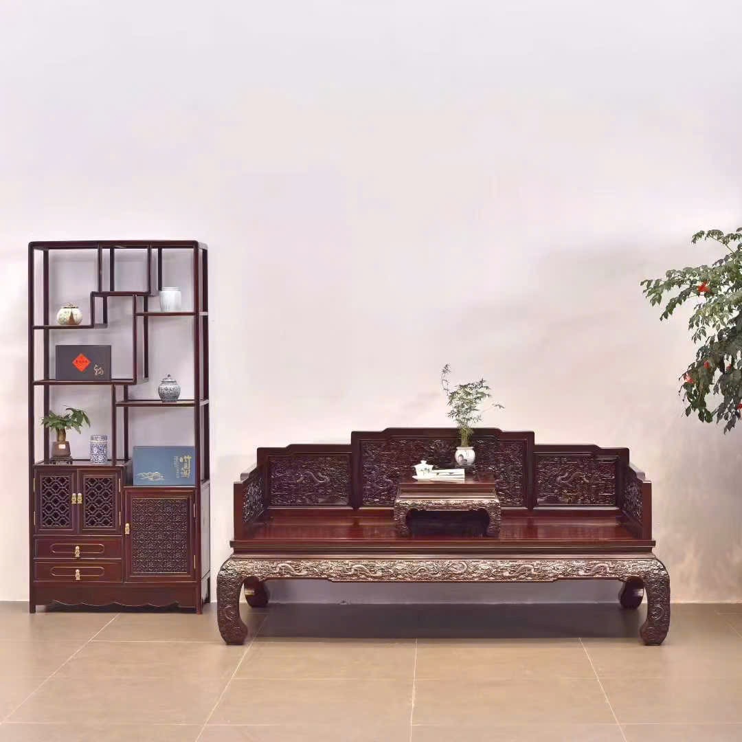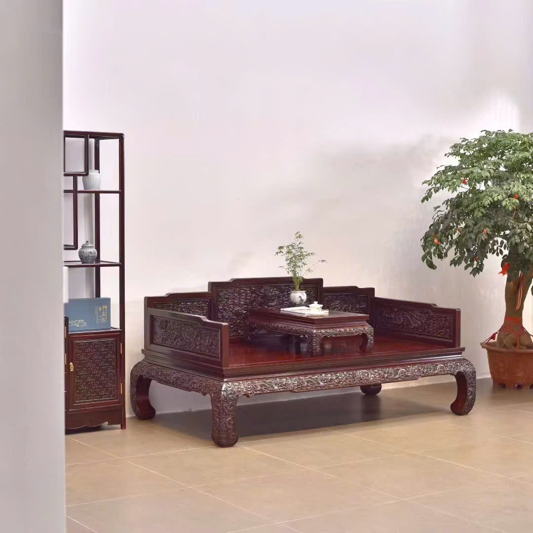 Gỗ Tử Đàn Phi Điêu Long La Hán Sàng – Bộ 2 Món