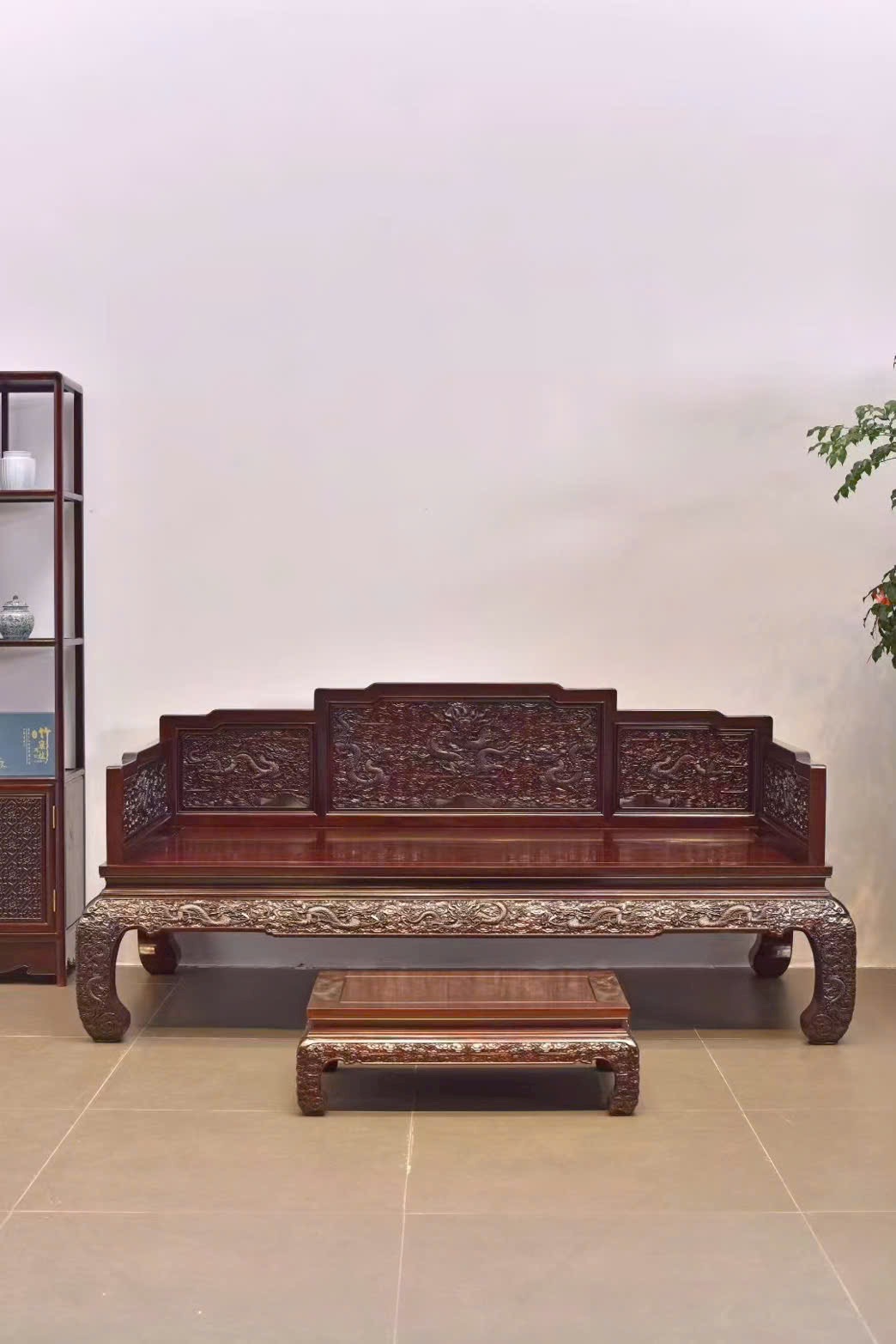 🍂 Gỗ Tử Đàn Phi Điêu Long La Hán Sàng – Bộ 2 Món