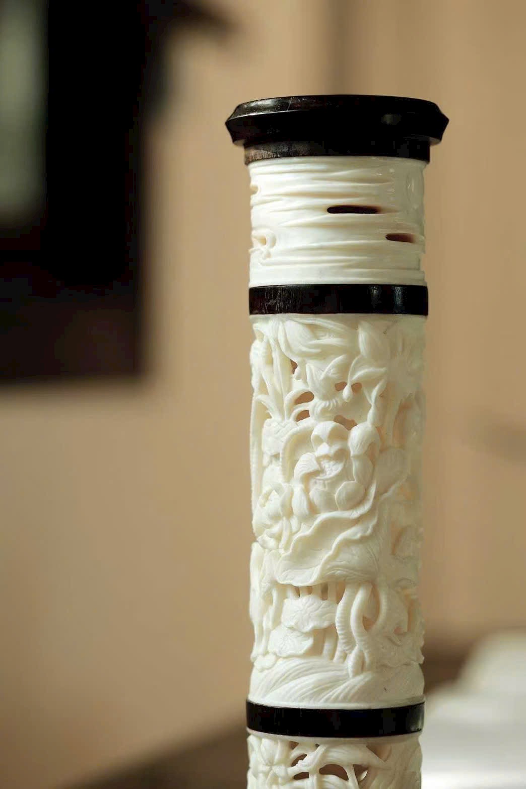 Toàn thân ống hương chạm khắc tầng lớp rõ ràng,