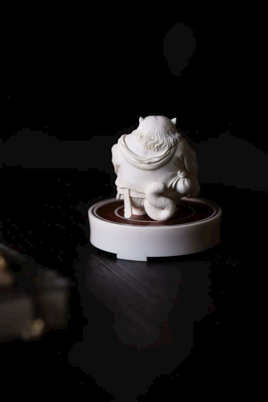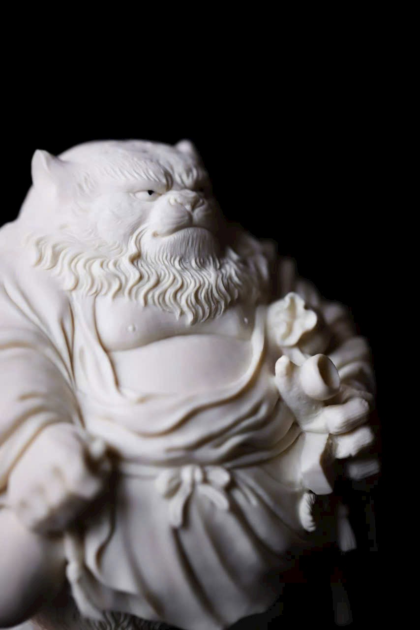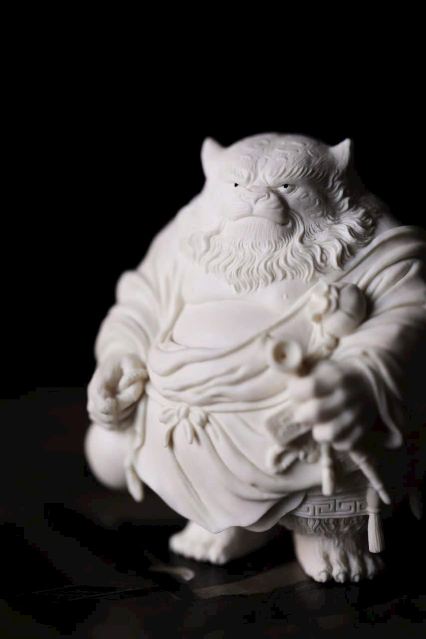 Tác phẩm chế tác từ ng.à voi mịn như mỡ, Hổ Tiên đứng trên vách núi, uy phong và sinh động. Eo treo hồ lô báu với tua rua, đầu ngẩng cao, gầm gió, đuôi vằn uốn theo họa tiết mây cuộn, toát lên khí thế mạnh mẽ và linh thiêng.