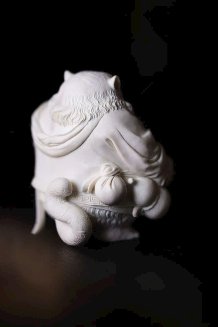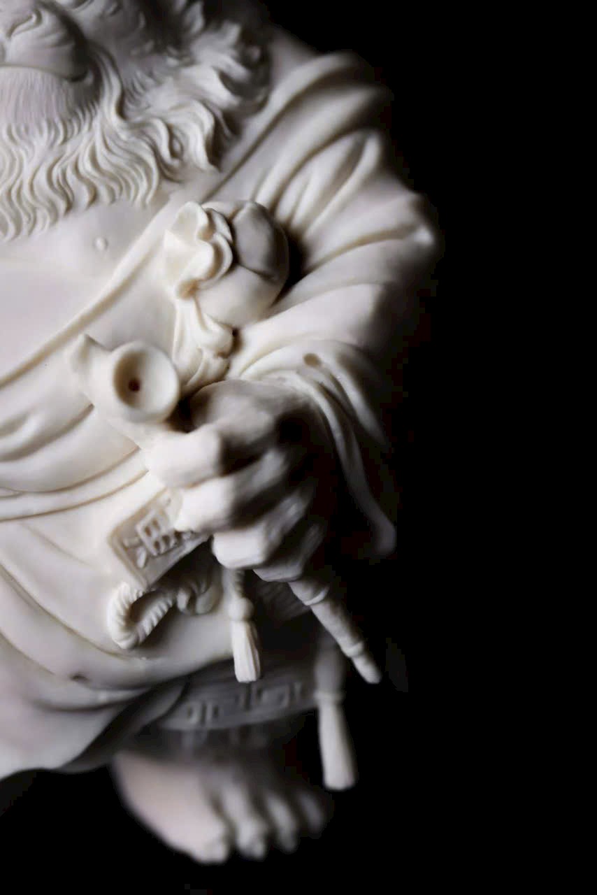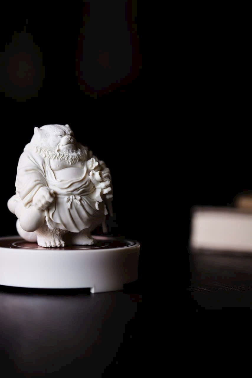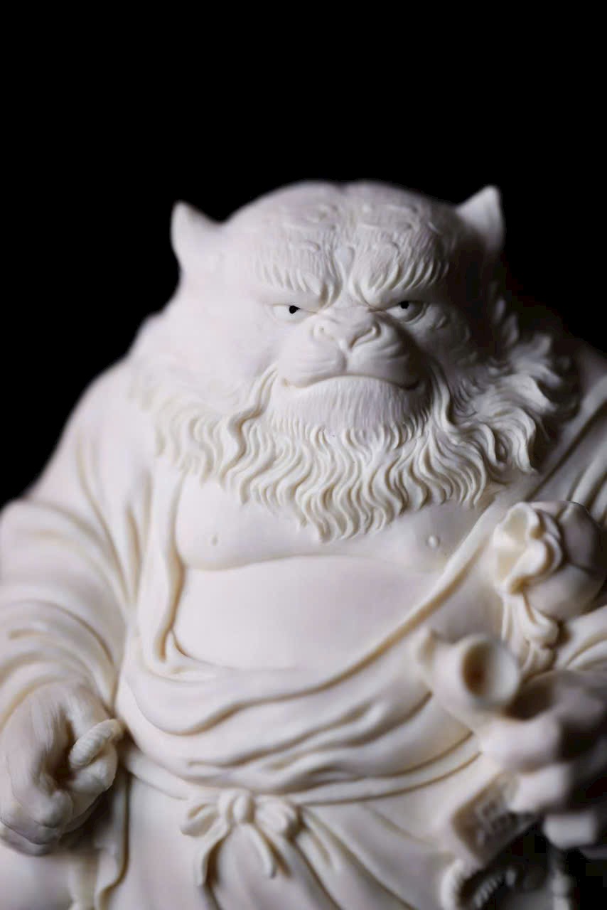 Tác phẩm chế tác từ ng.à voi mịn như mỡ, Hổ Tiên đứng trên vách núi, uy phong và sinh động. Eo treo hồ lô báu với tua rua, đầu ngẩng cao, gầm gió, đuôi vằn uốn theo họa tiết mây cuộn, toát lên khí thế mạnh mẽ và linh thiêng.