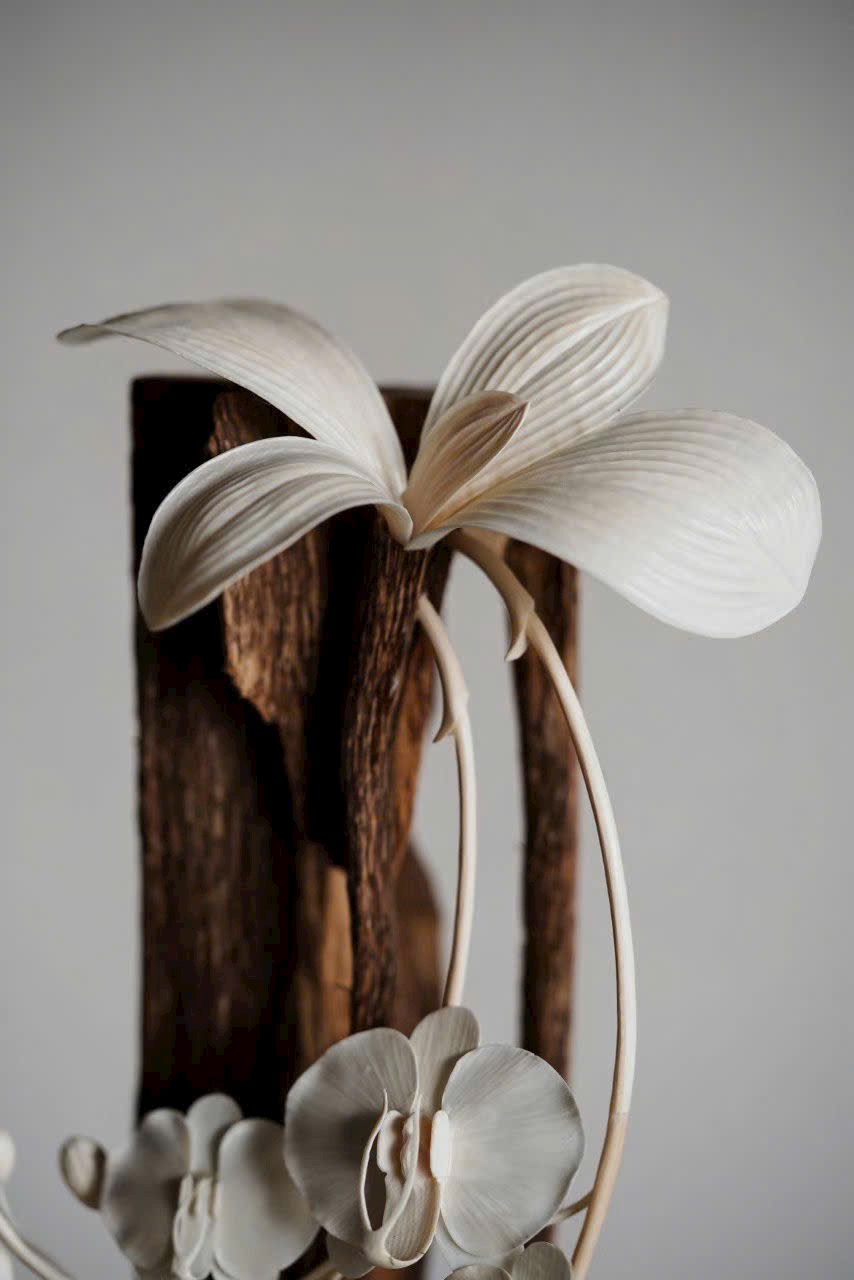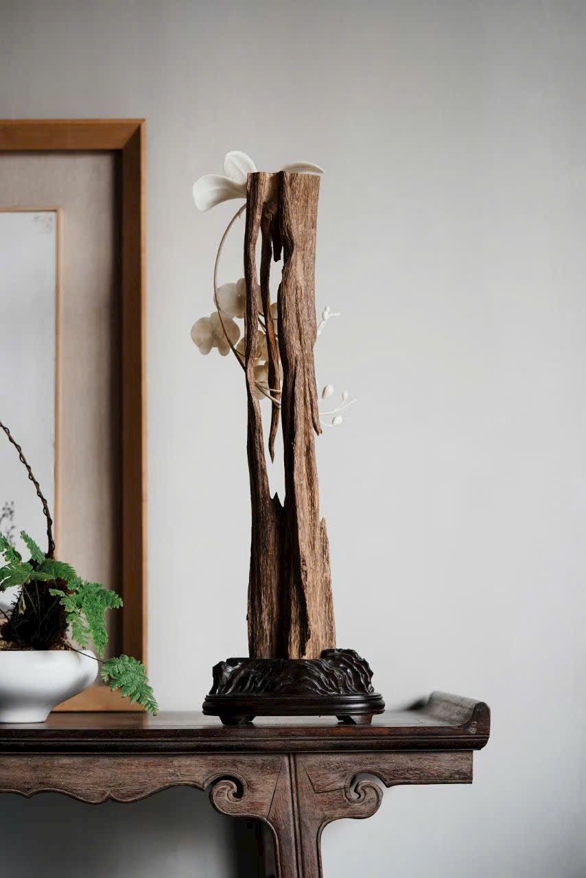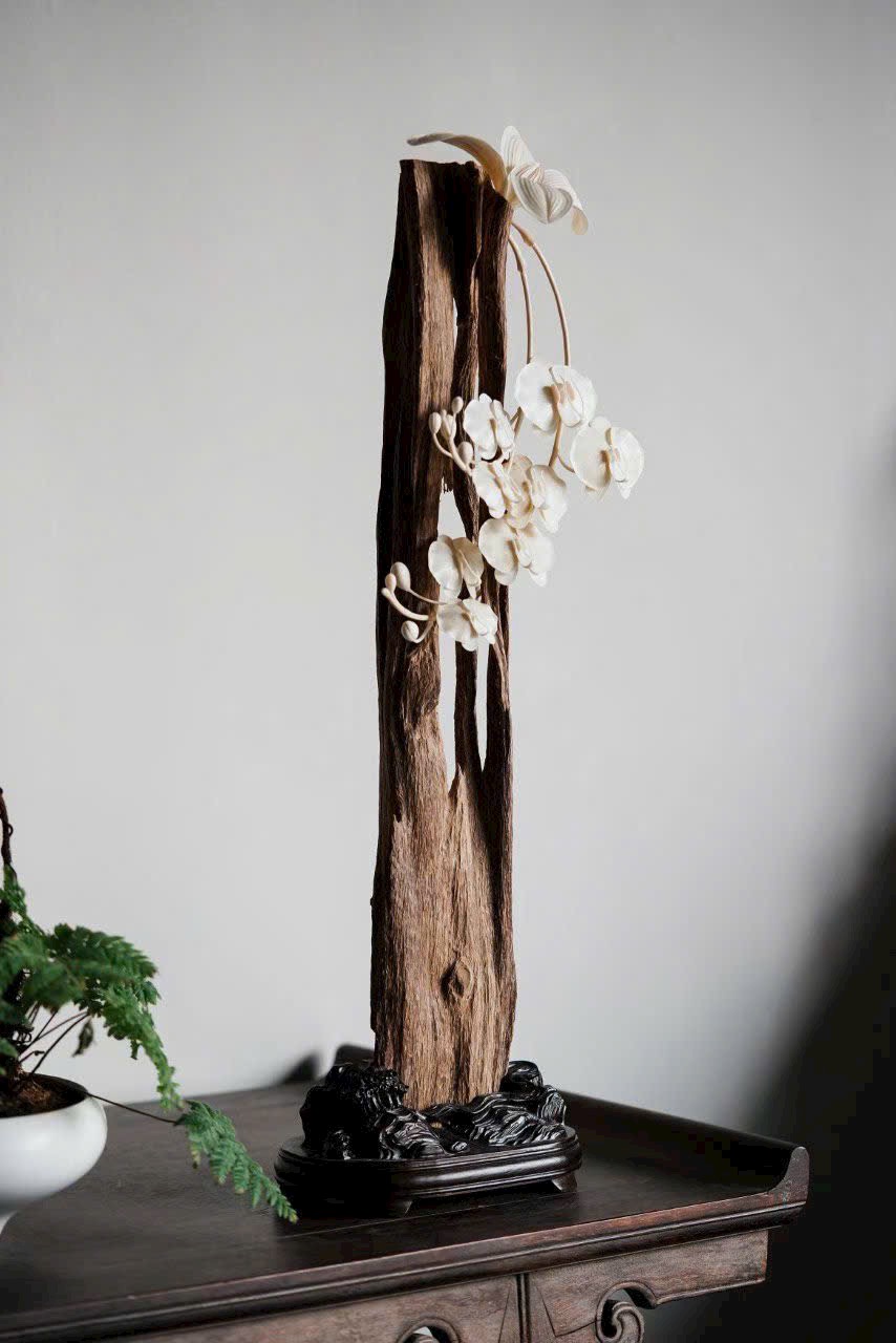 Trầm hương sánh mịn như mực, ng.à voi mamut trắng ngà tựa ánh trăng. Hồ điệp lan nhẹ nhàng như sắp bay, cánh lan xếp lớp, trong suốt, thấm ánh sáng. Tựa như cảnh u cốc dưới trăng, đặt trên án thư liền tỏa hương thanh nhã, lan khắp không gian.