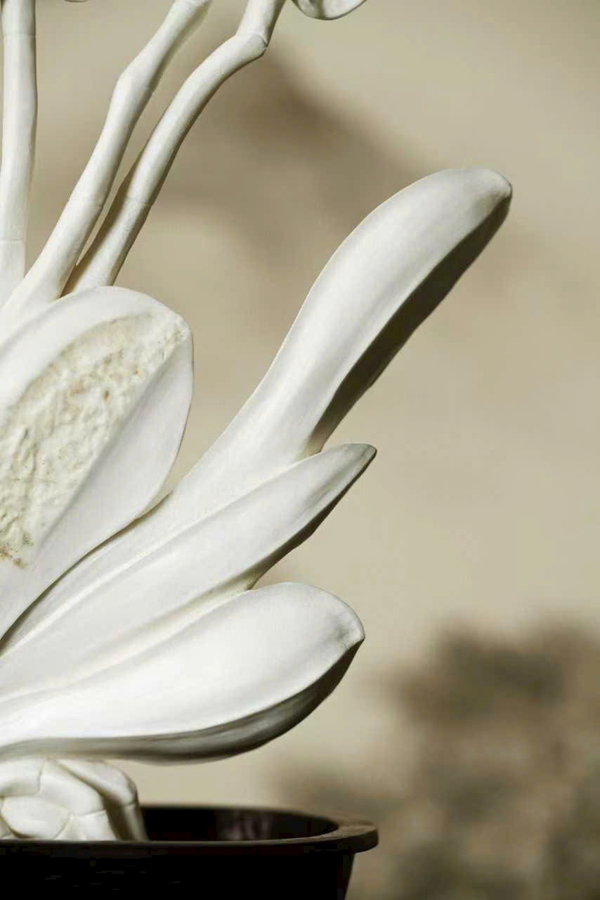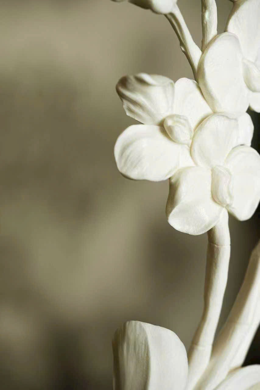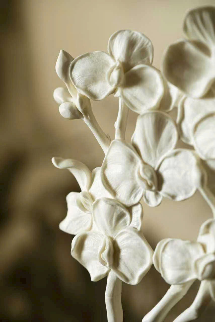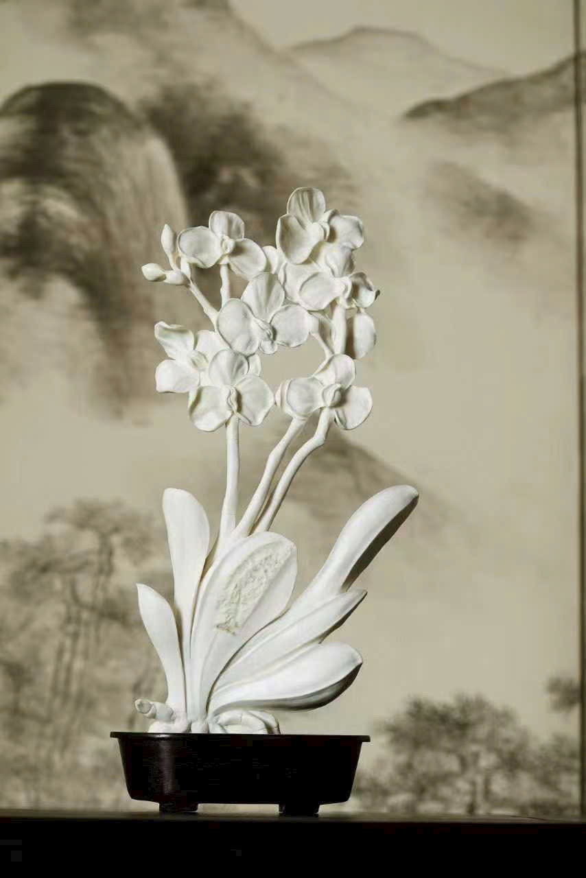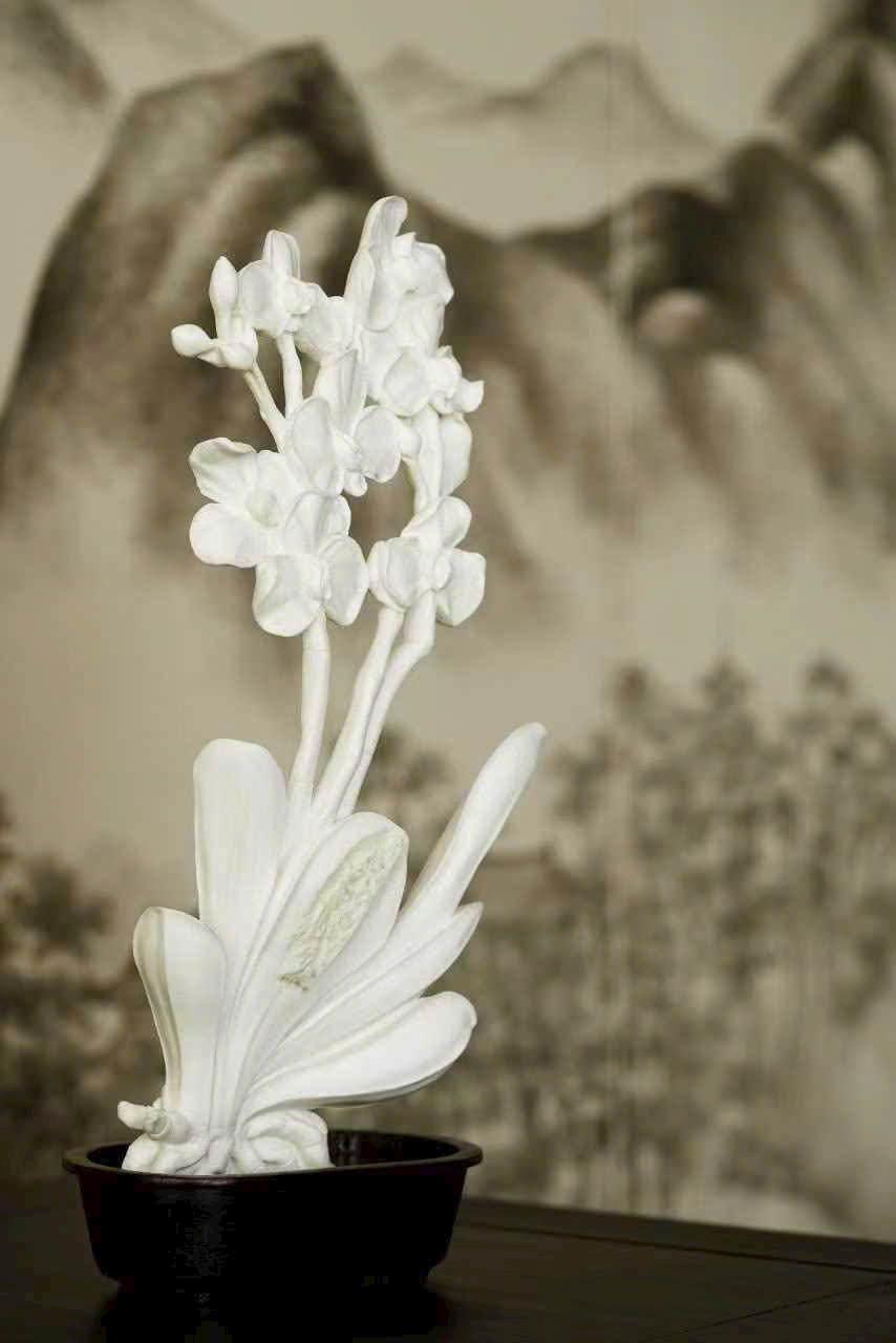 Tạc liền khối khéo léo, hoa nở phú quý. Hoa, nhụy, lá phân tầng rõ rệt; gần thì tinh tế chân thực, xa lại gợi ý vị hội họa. Tay nghề thể hiện qua từng đường đục mộc mạc mà tao nhã, ý nghĩa cát tường. Thích hợp làm món thanh cúng, vật phẩm trang nhã bày trên án thư, tôn lên vẻ đẹp thanh mỹ.