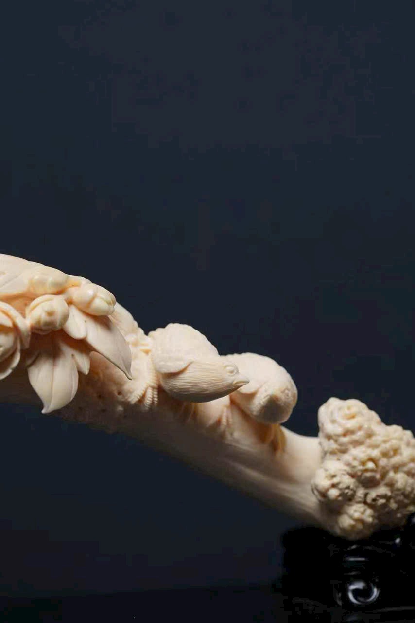Được chạm khắc từ n.gà voi ma mút nguyên khối cao cấp, chất liệu trong mướt, vân n.gà mịn màng, tinh xảo đến từng chi tiết.