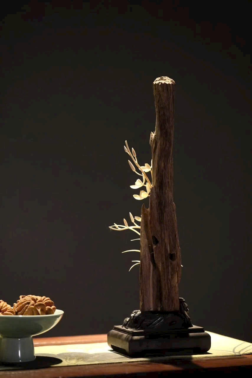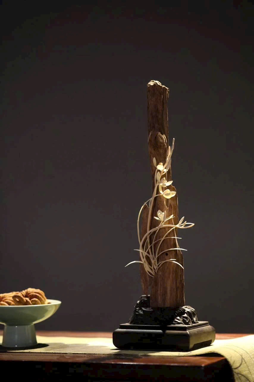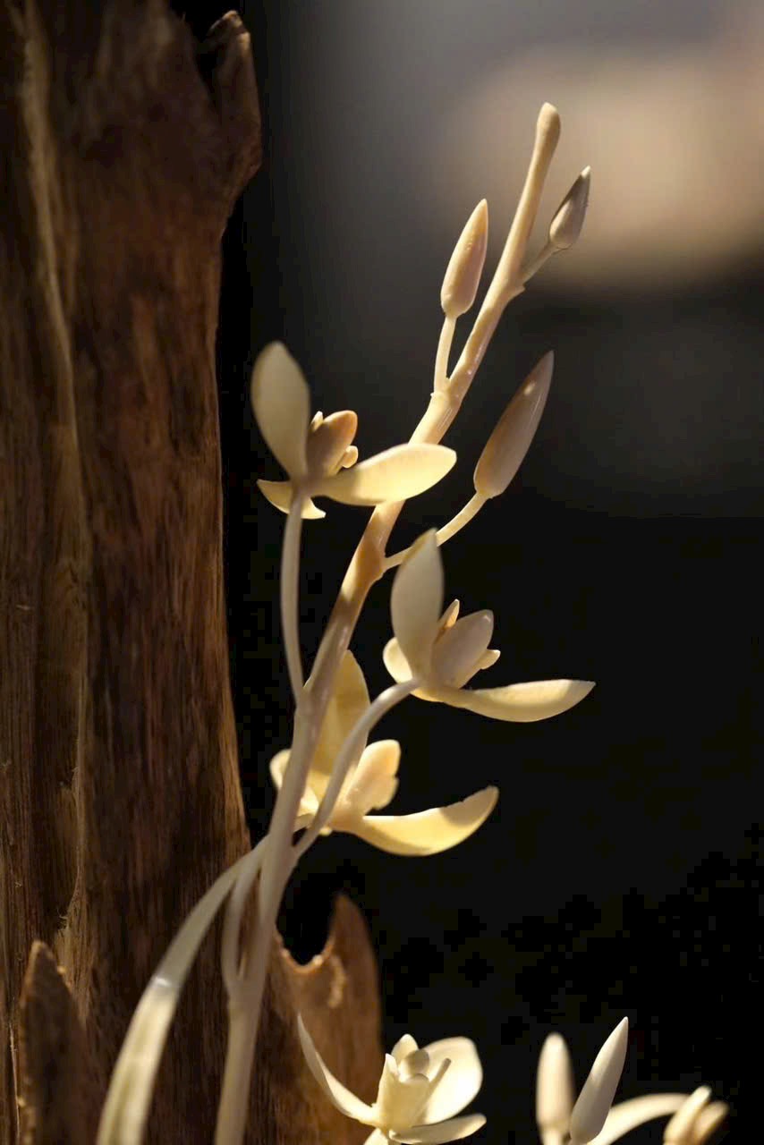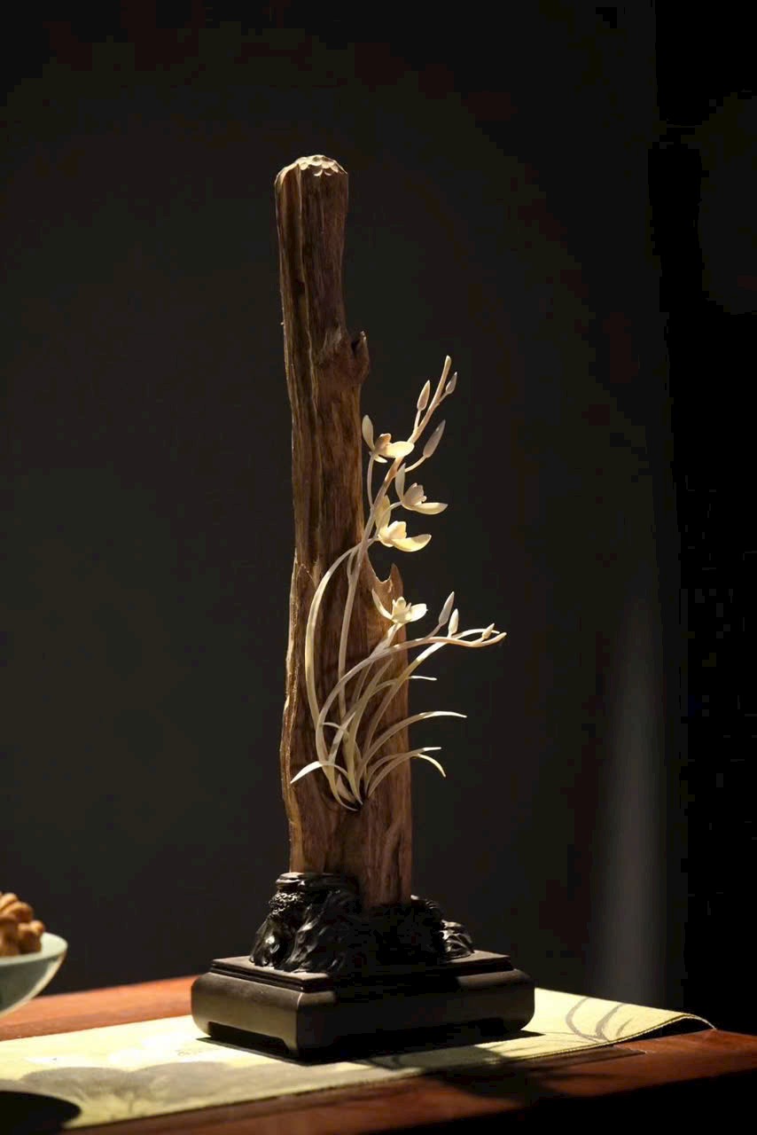 🌿 Lấy trầm hương Indo tự nhiên làm cốt, hình dáng độc đáo. Hoa lan chạm từ n.gà mamut, cánh trắng như mây trăng, tinh tế thanh nhã, toát lên vẻ đẹp “không tranh sắc thắm, tự tỏa hương xa”.