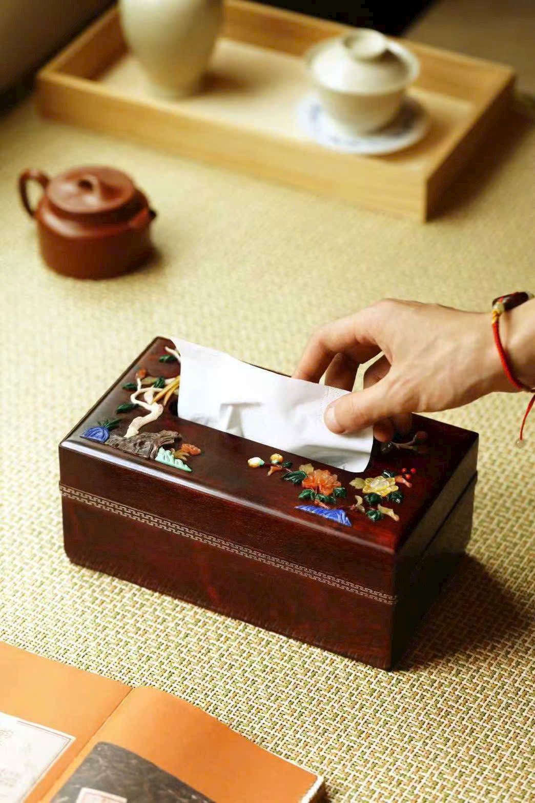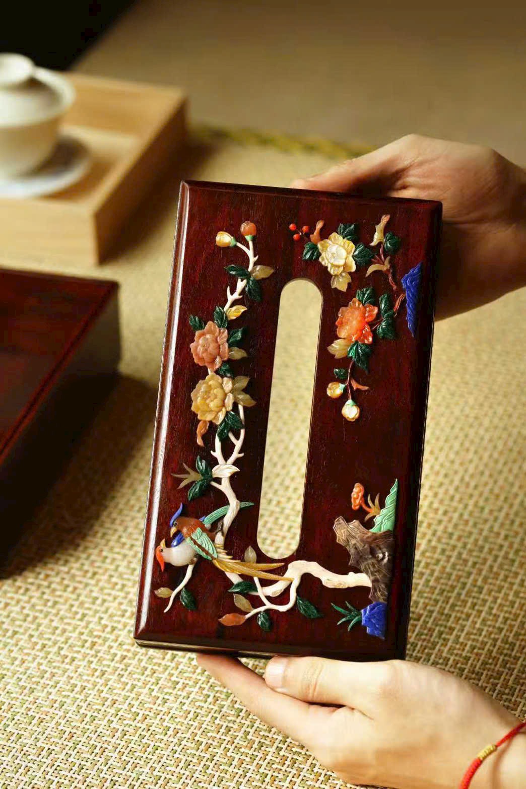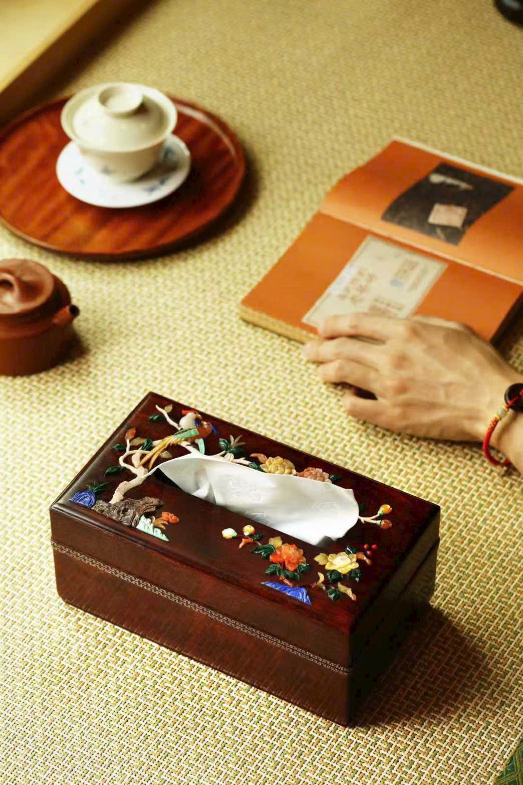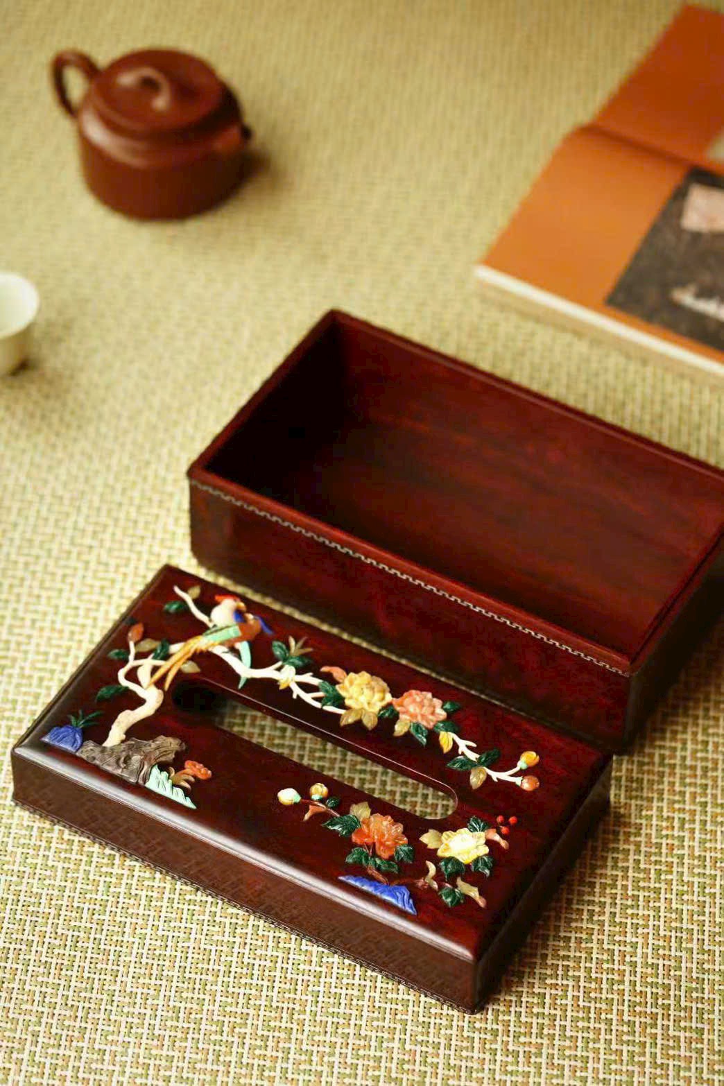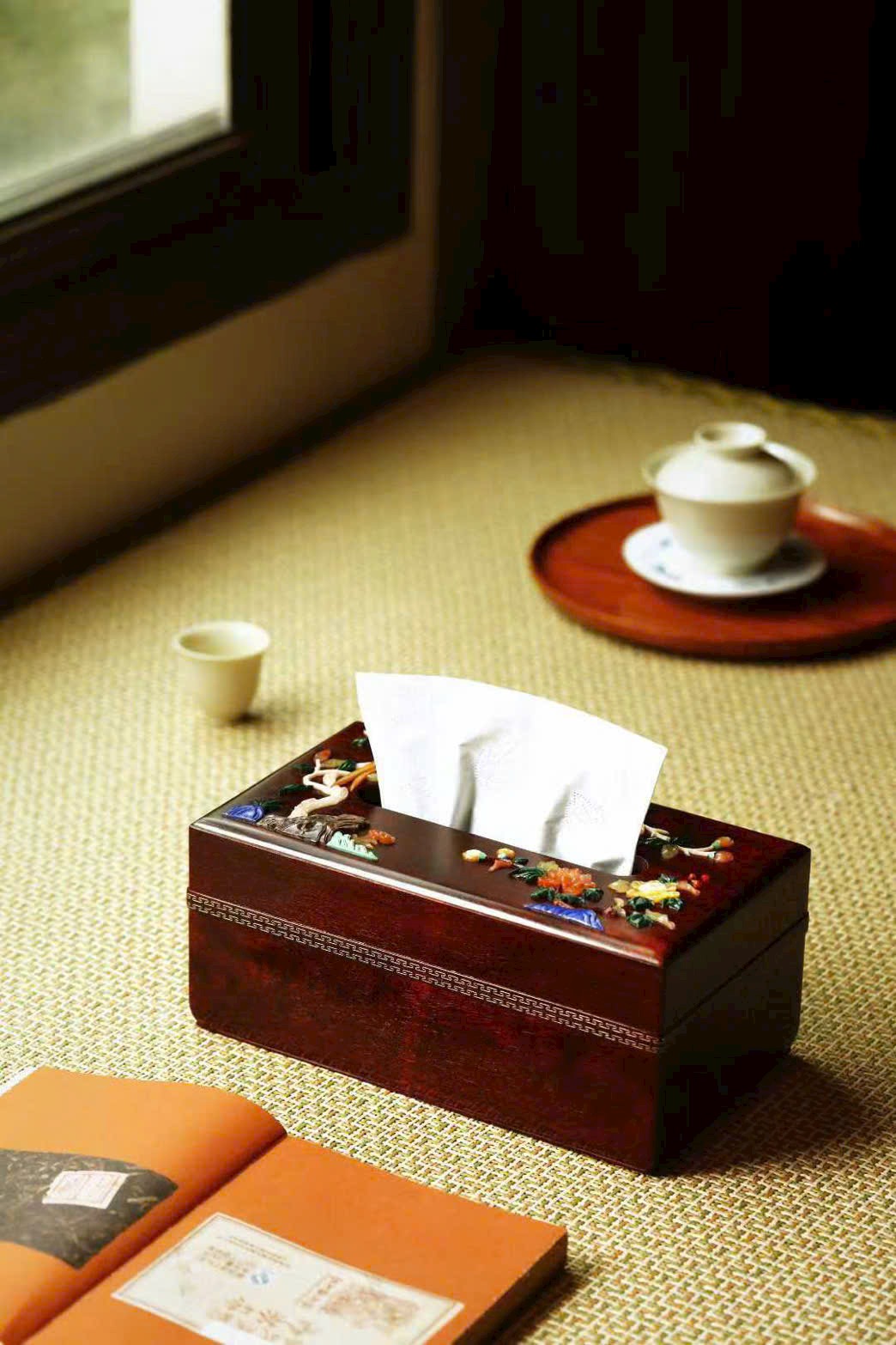 “Hoa phú quý – Thái bình” – hộp khăn giấy