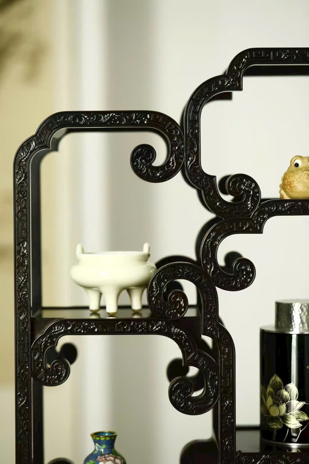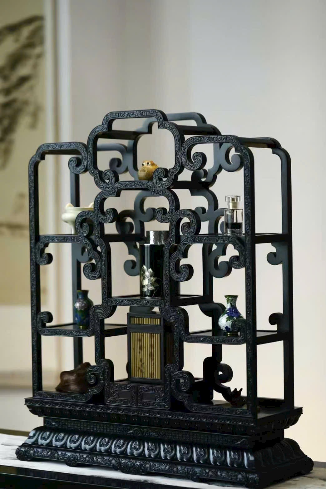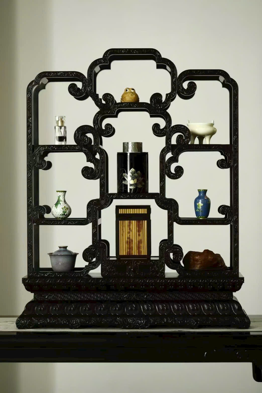Dáng tủ đa bảo, thích hợp bày biện nhiều món sưu tầm tinh mỹ, tôn nhau làm nổi bật, hài hòa tương xứng.