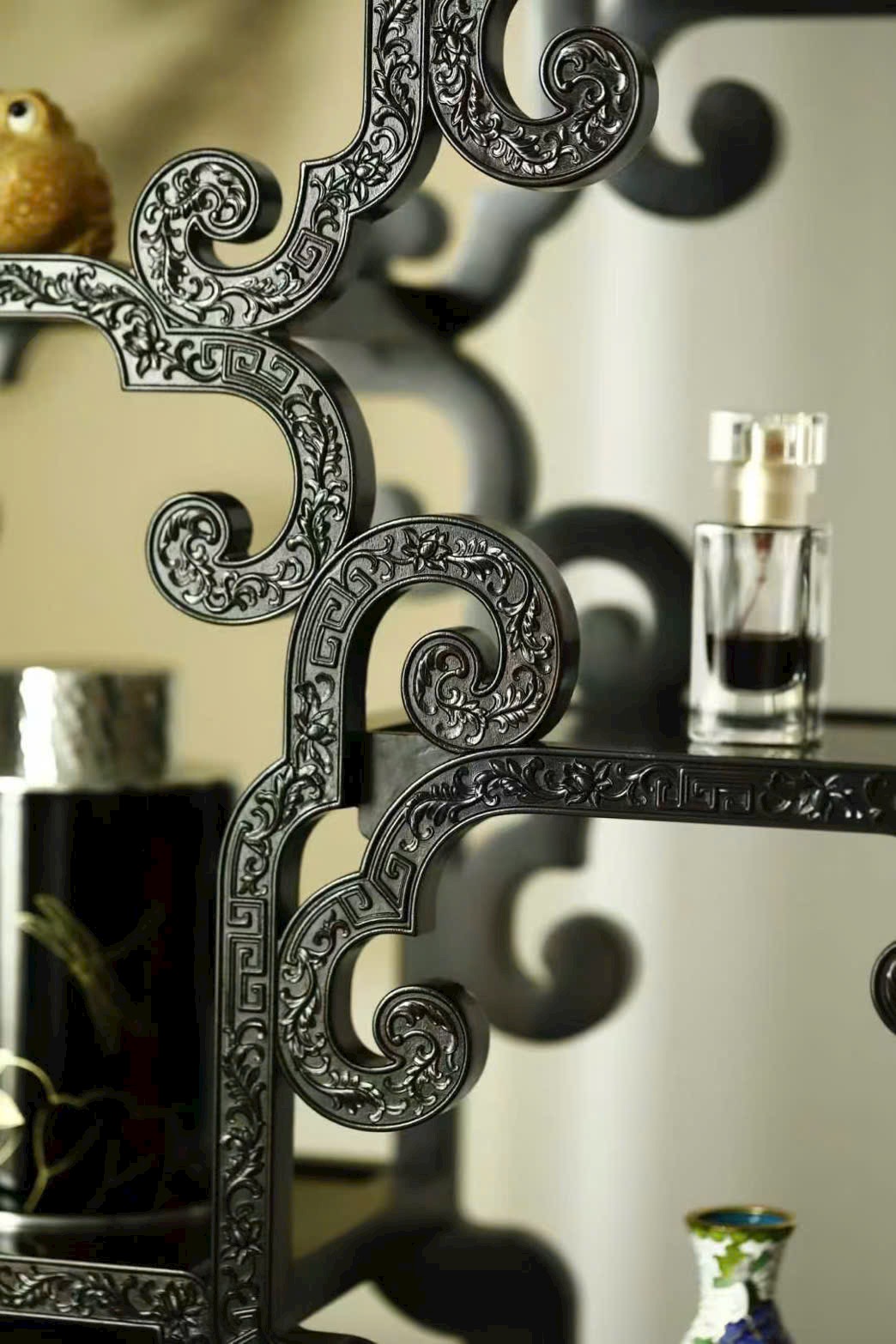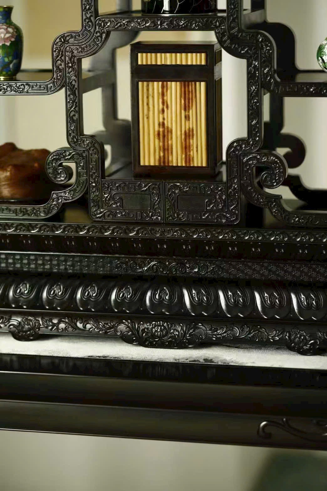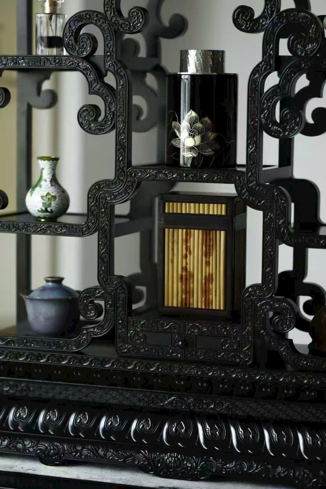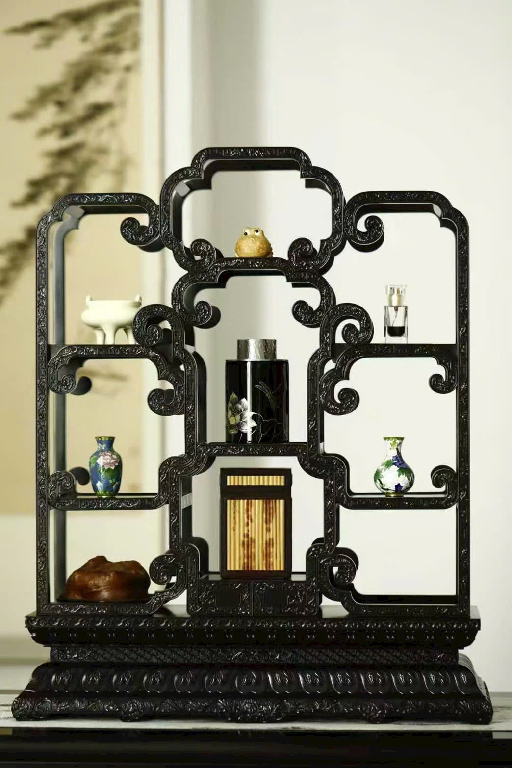 Dáng tủ đa bảo, thích hợp bày biện nhiều món sưu tầm tinh mỹ, tôn nhau làm nổi bật, hài hòa tương xứng.