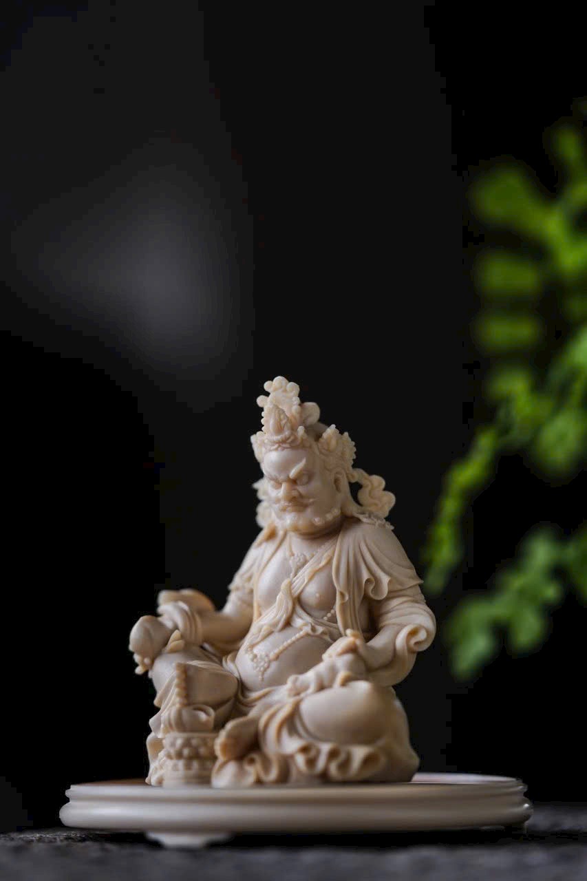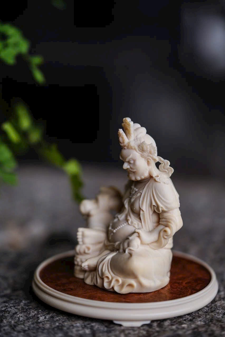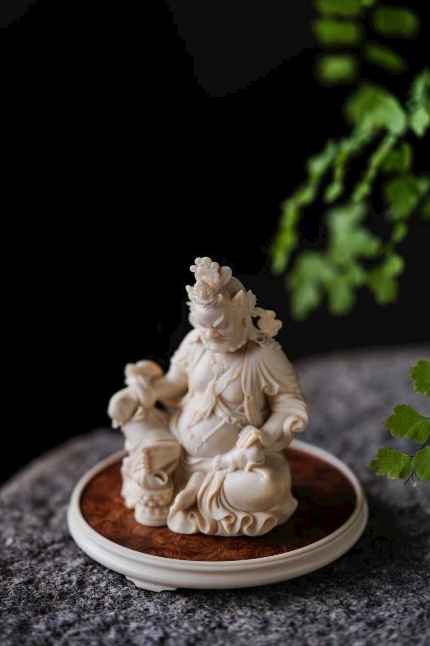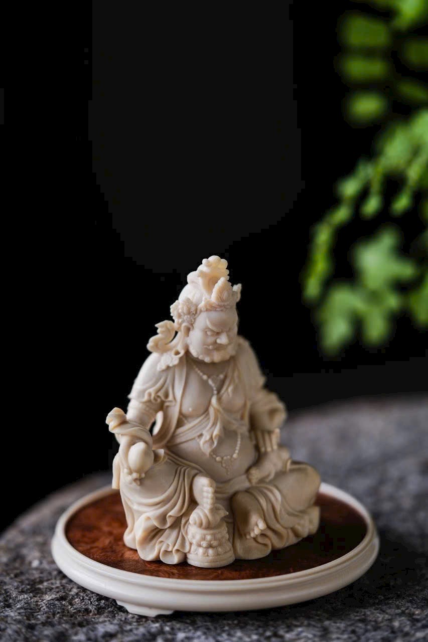 - Đội bảo quan, đeo ngọc quý, tay phải cầm bảo châu, tay trái đỡ chuột nhả châu đầy ắp. Trưng bày trên bàn giúp chiêu tài nạp lộc, phúc khí viên mãn, thêm phần thiền ý.