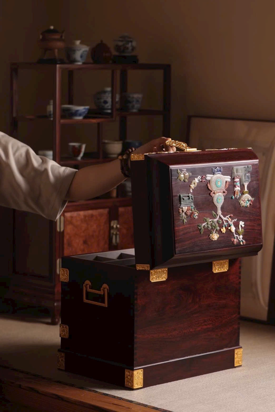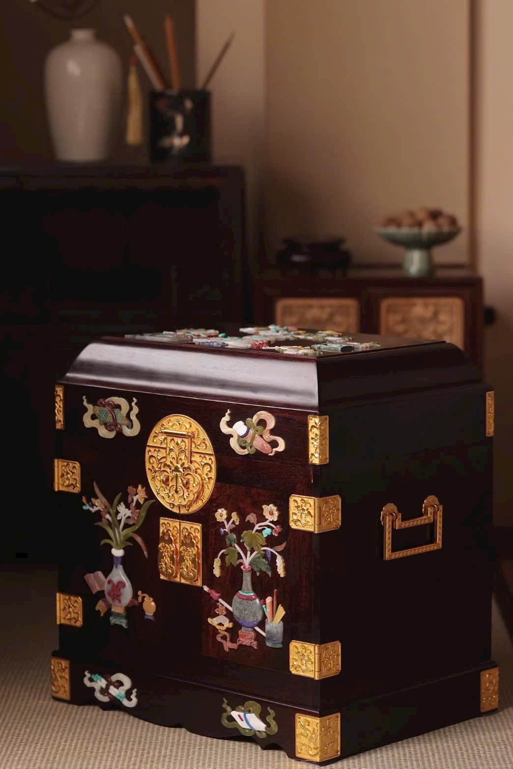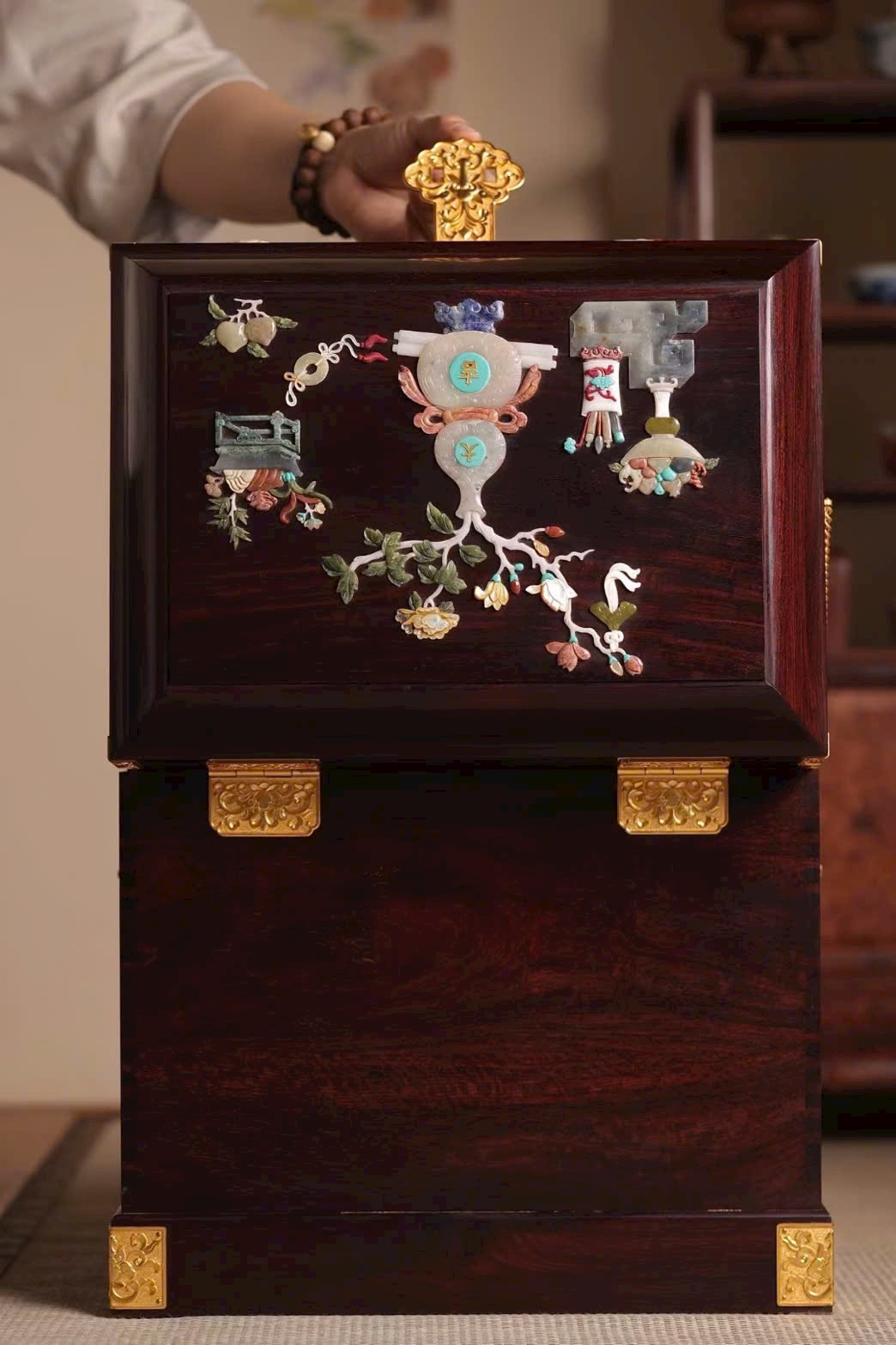 🌿 Hộp Gia Bảo - Vương Mộc Tử Đàn Ấn Độ khảm Bách Bảo