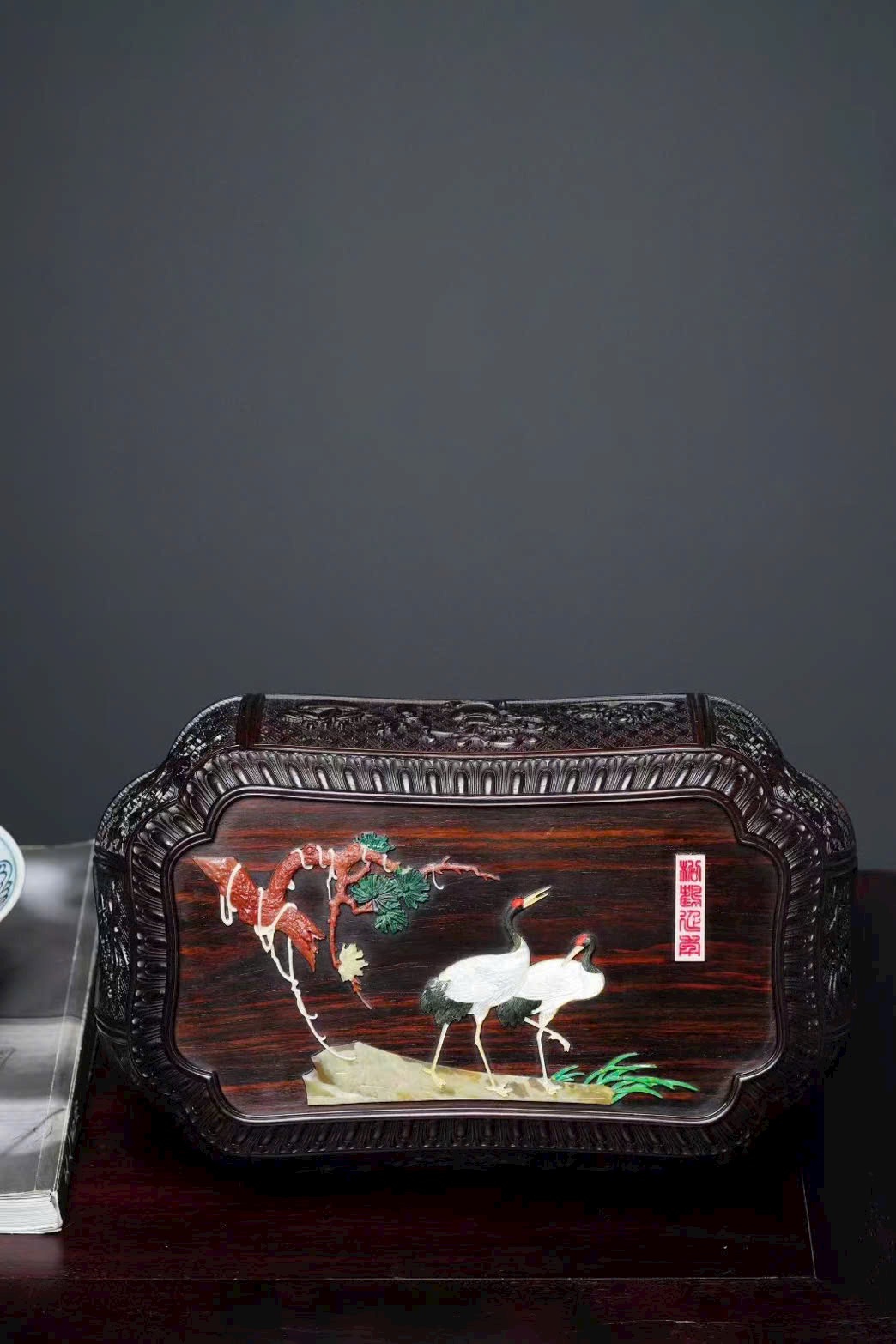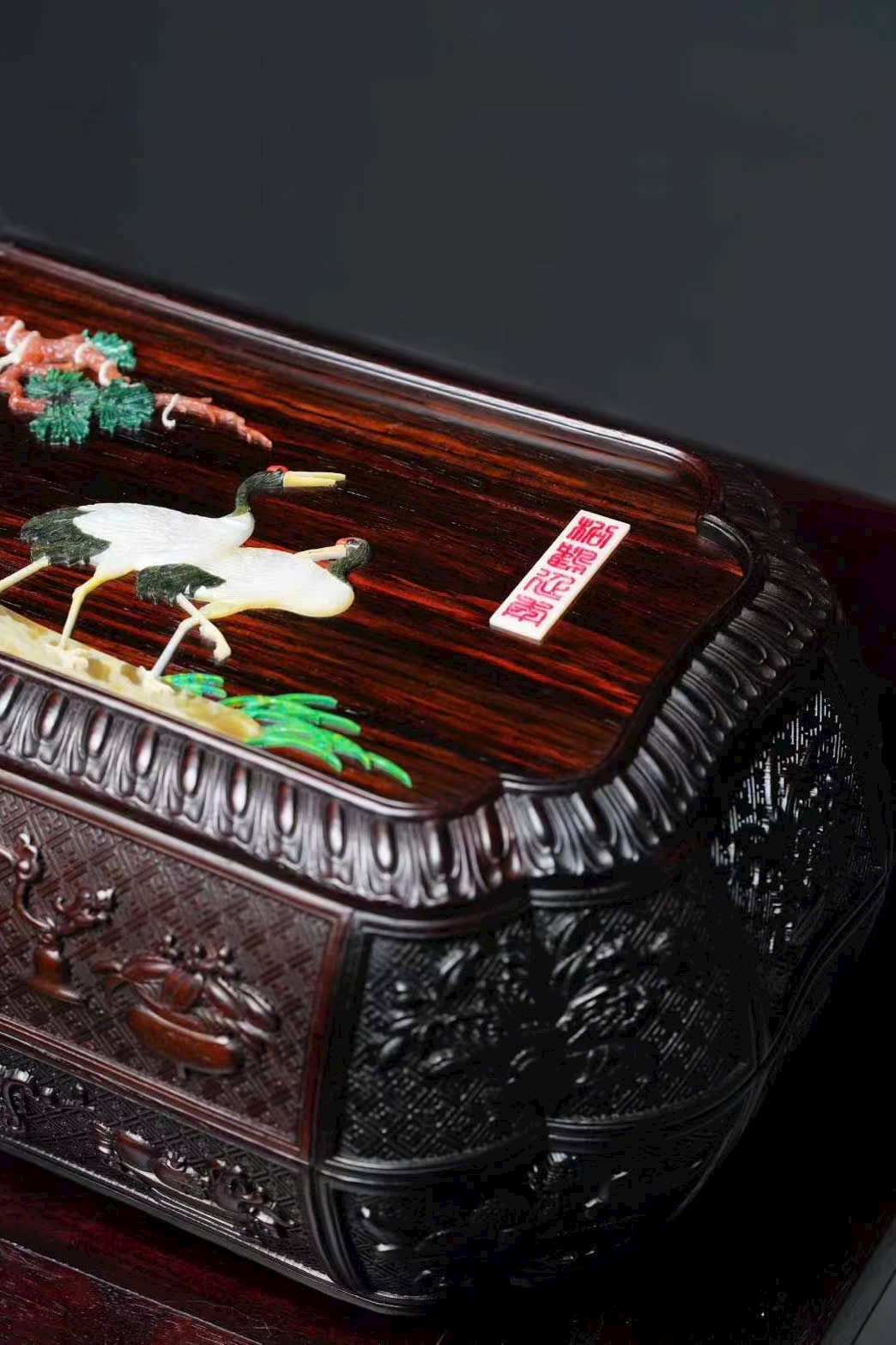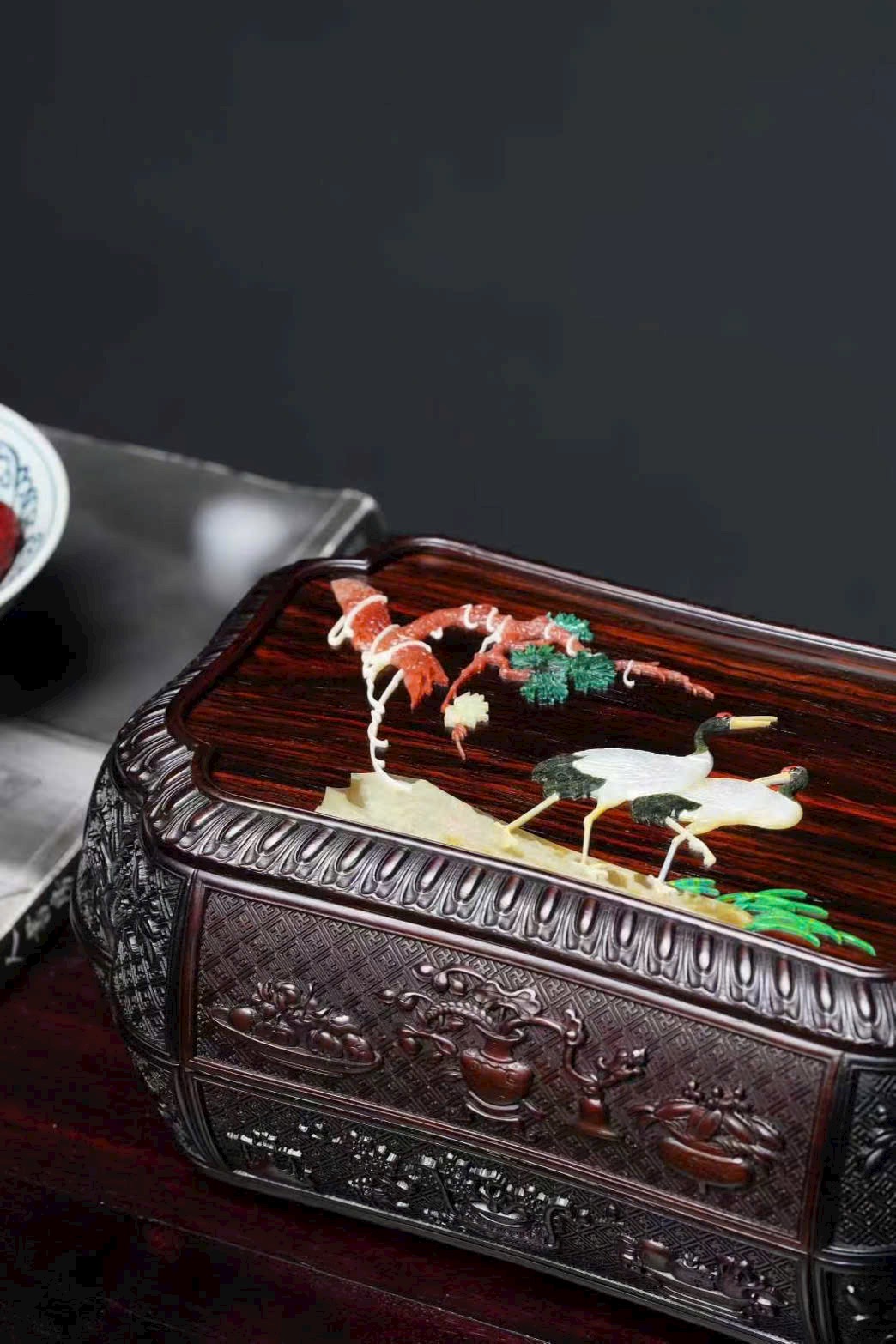 Chất liệu gỗ trắc đỏ, kiểu dáng trang nhã, phù hợp đựng đồ thư phòng, sưu tầm và trưng bày.