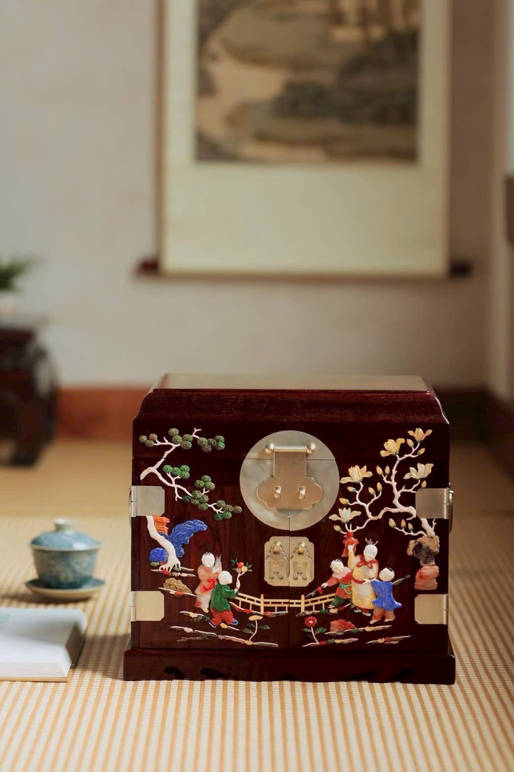 Hộp gia bảo 【Đồng Thú Trường Xuân】 khảm bách bảo gỗ tử đàn