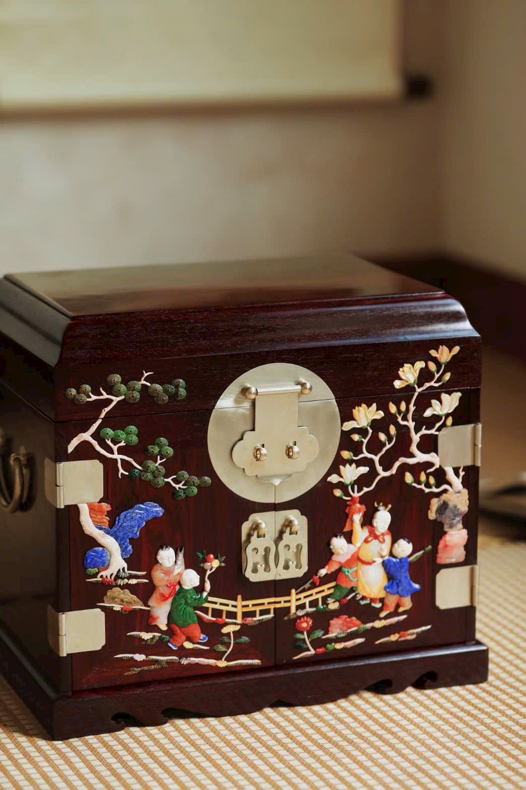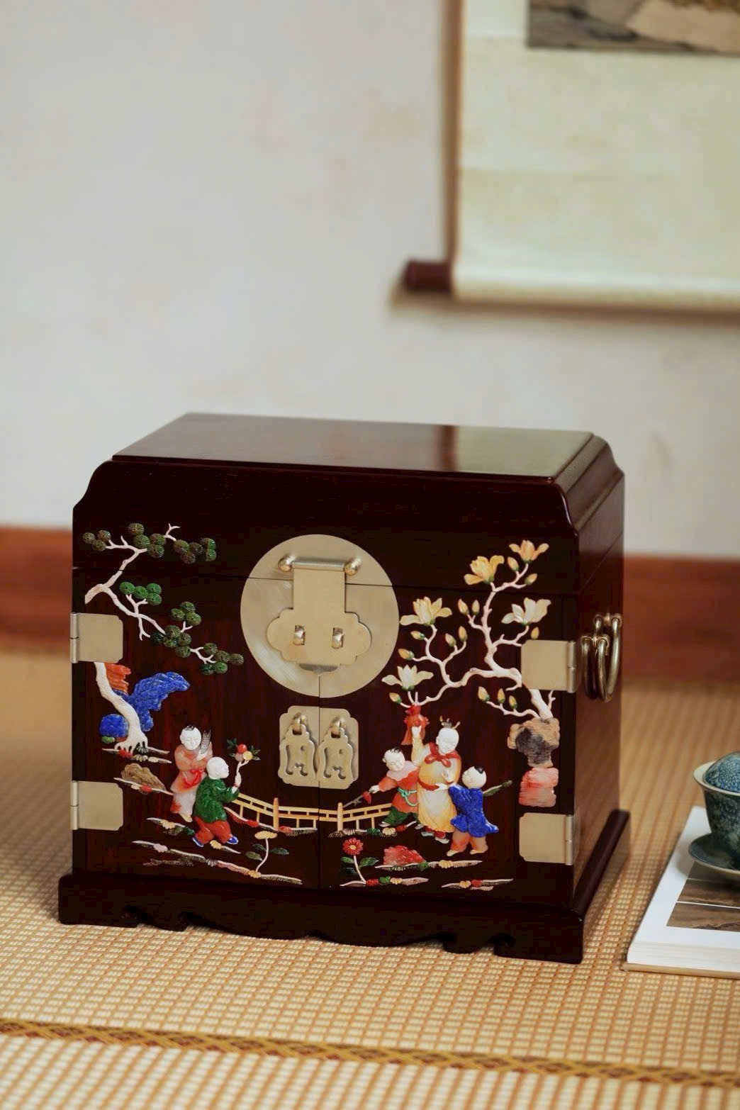 Cấu trúc mộng mộng tinh xảo, trang trí đồng khảm, nhiều tầng ngăn kéo,