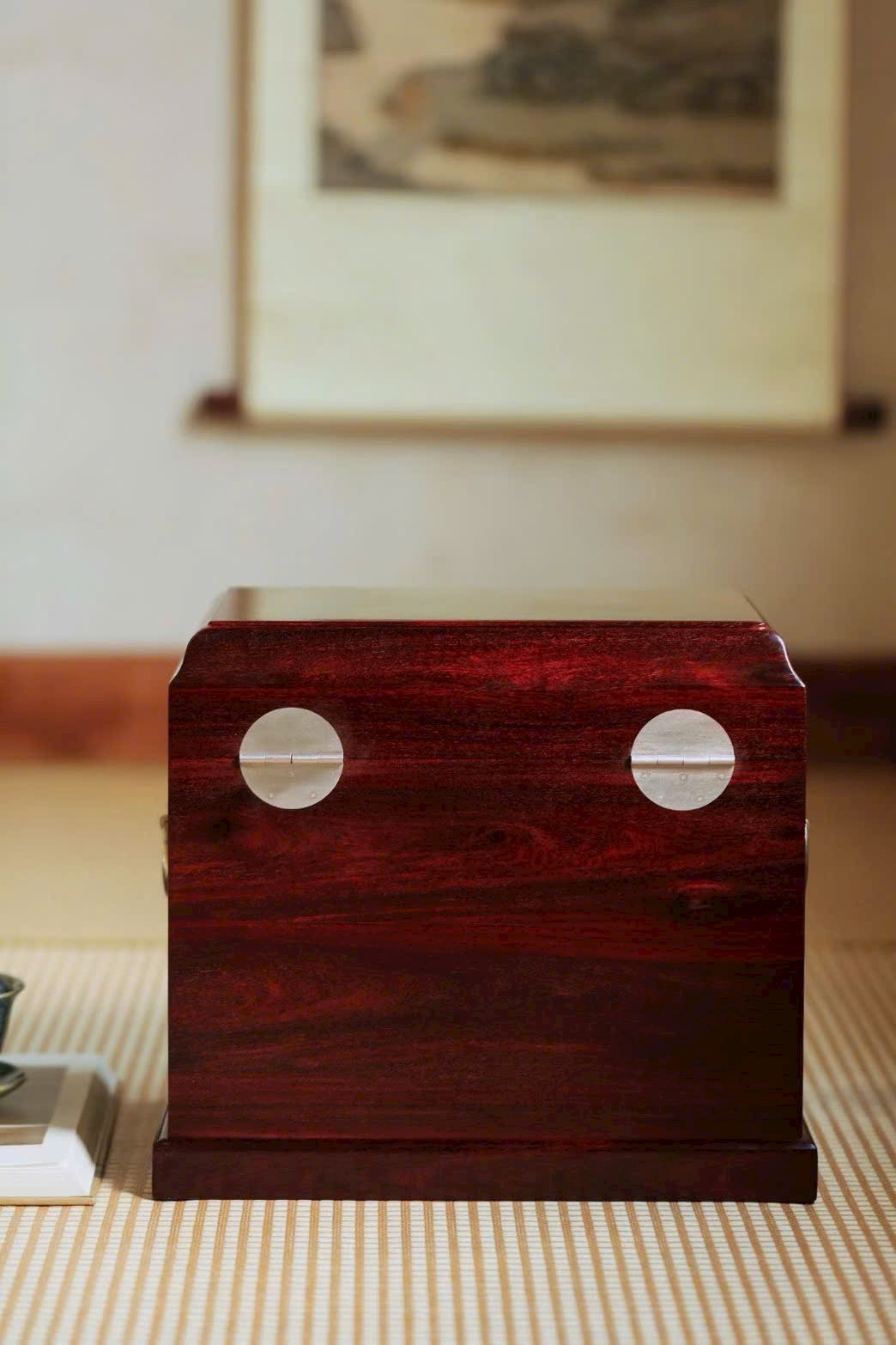 Chế tác từ gỗ tử đàn lá nhỏ, chất liệu mật độ cao, kèm vân sóng nước kim tinh.