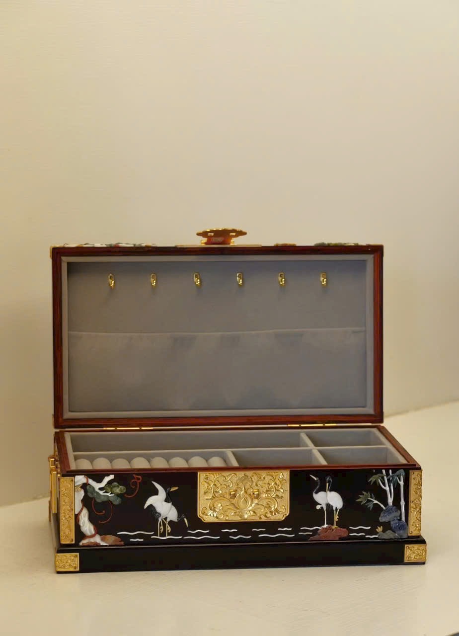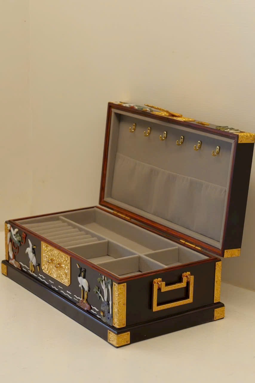 Bên trong lót gấm, chia ngăn gọn gàng – vừa tiện dụng, vừa tôn vinh vẻ đẹp thủ công truyền thống phương Đông.