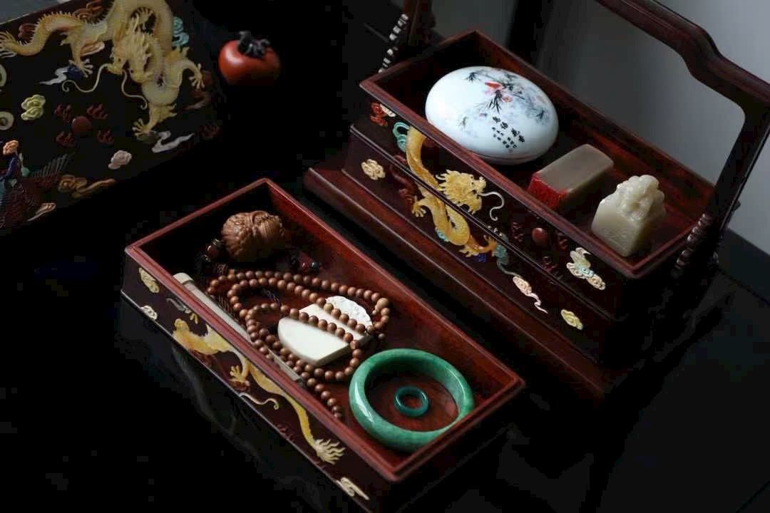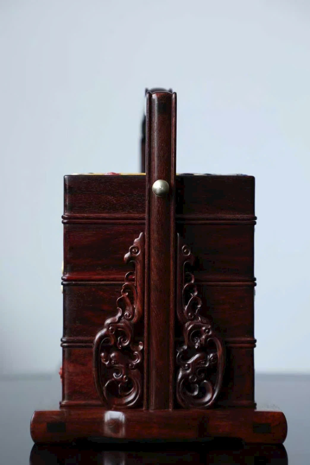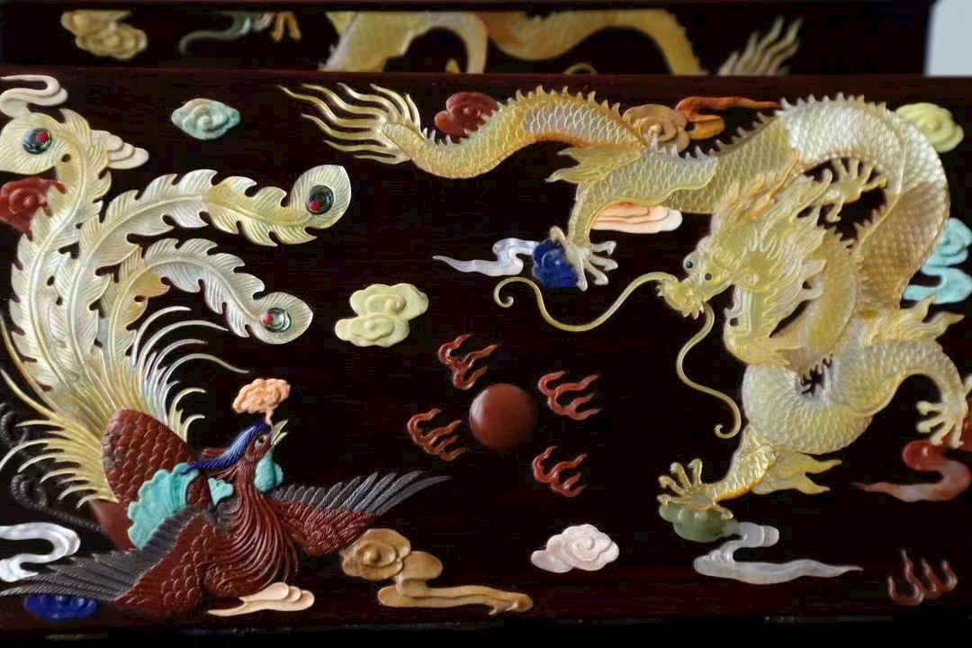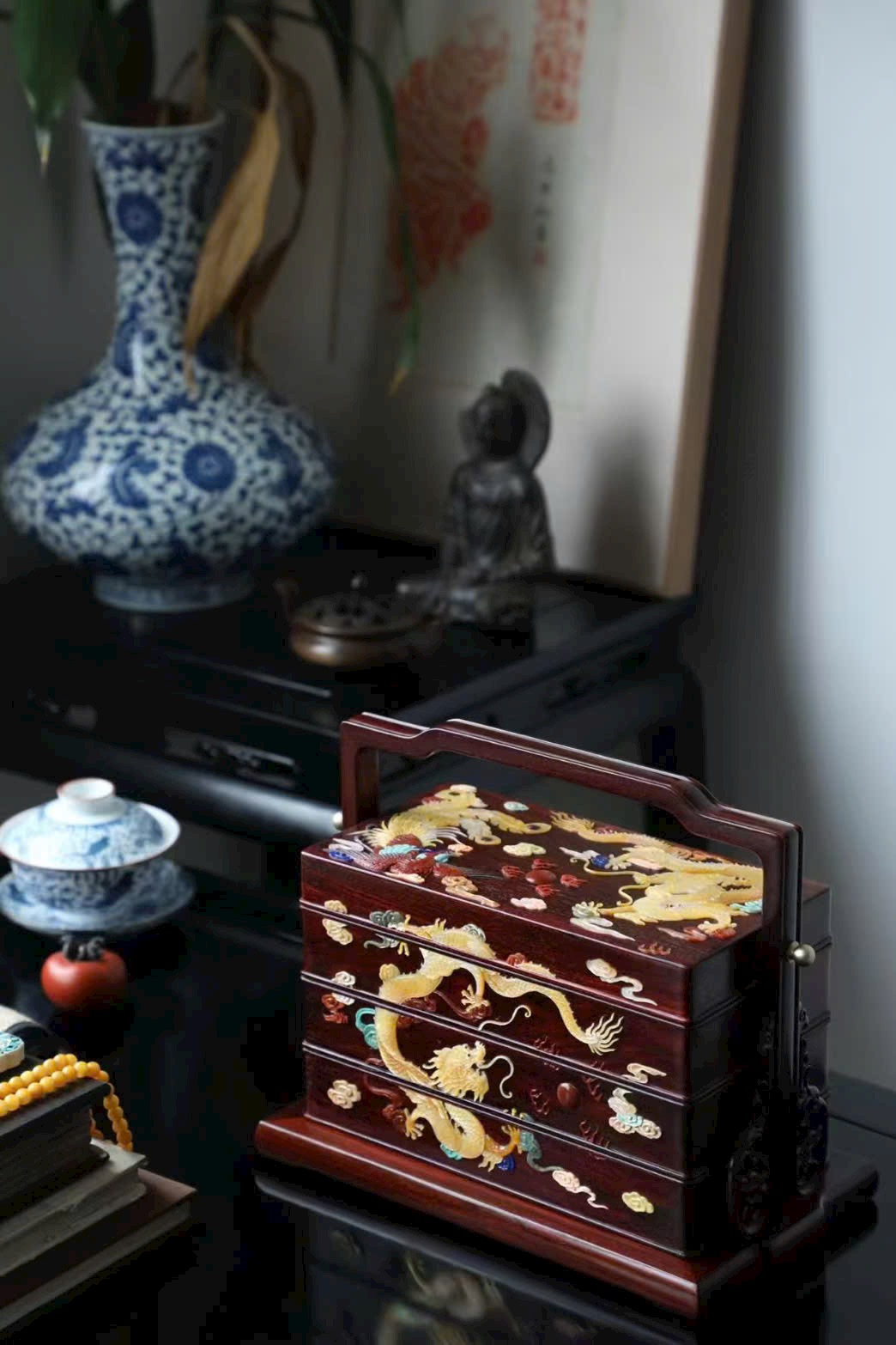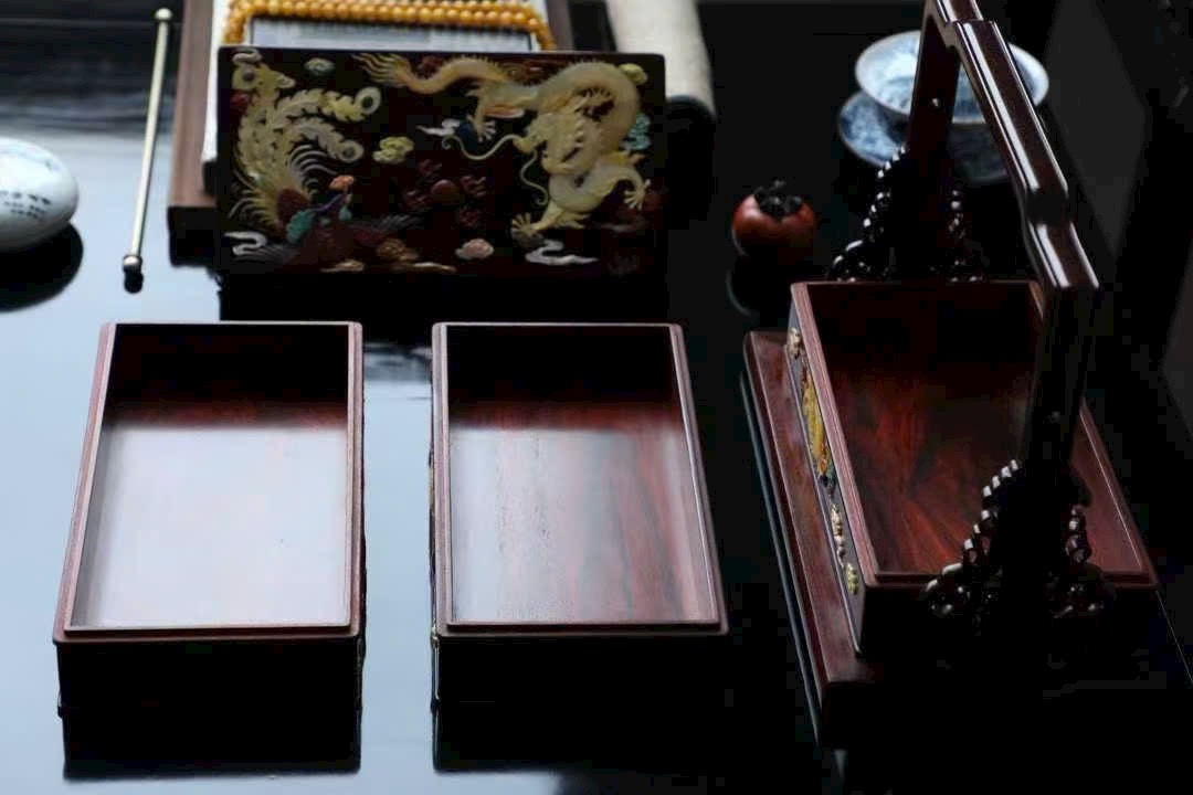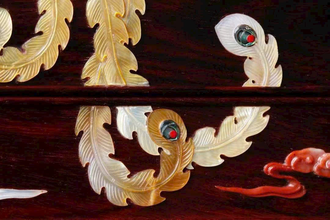 🌿 Gỗ tử đàn lá nhỏ Ấn Độ | Chế tác mộng thủ công khảm Bách Bảo (các loại đá ngọc quý) hoạ tiết Long Phụng