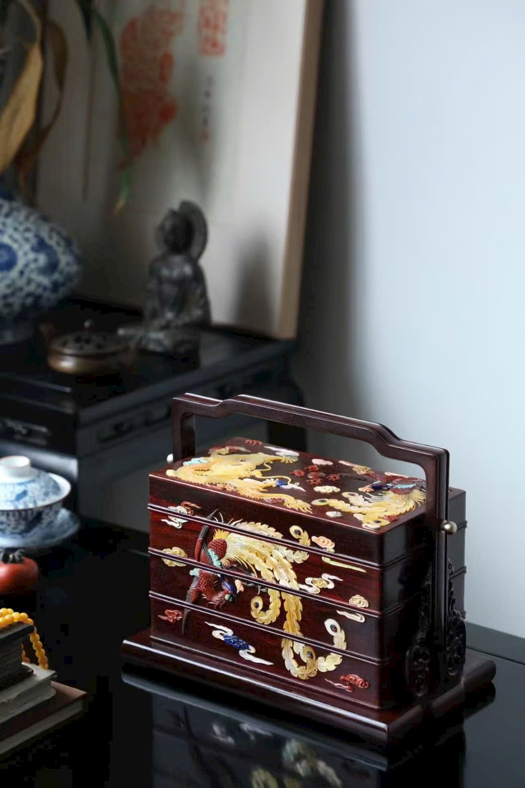 Tuyển chọn gỗ tháo dỡ nhà cổ, chất liệu quý hiếm, gia công bằng kỹ nghệ mộng thủ công truyền thống. Toàn bộ quá trình được chế tác thủ công tỉ mỉ, cẩn trọng trong khâu chọn gỗ. Trên khí vật khảm nạm bách bảo ngọc thạch cung đình, rồng phượng ẩn chứa ý nghĩa cát tường rộng rãi, tượng trưng “gia đình có rồng phượng ắt có điềm lành”. Mỗi công đoạn đều do bàn tay thợ thủ công tinh tế hoàn thành, nhằm đạt đến sự hoàn mỹ tột cùng.