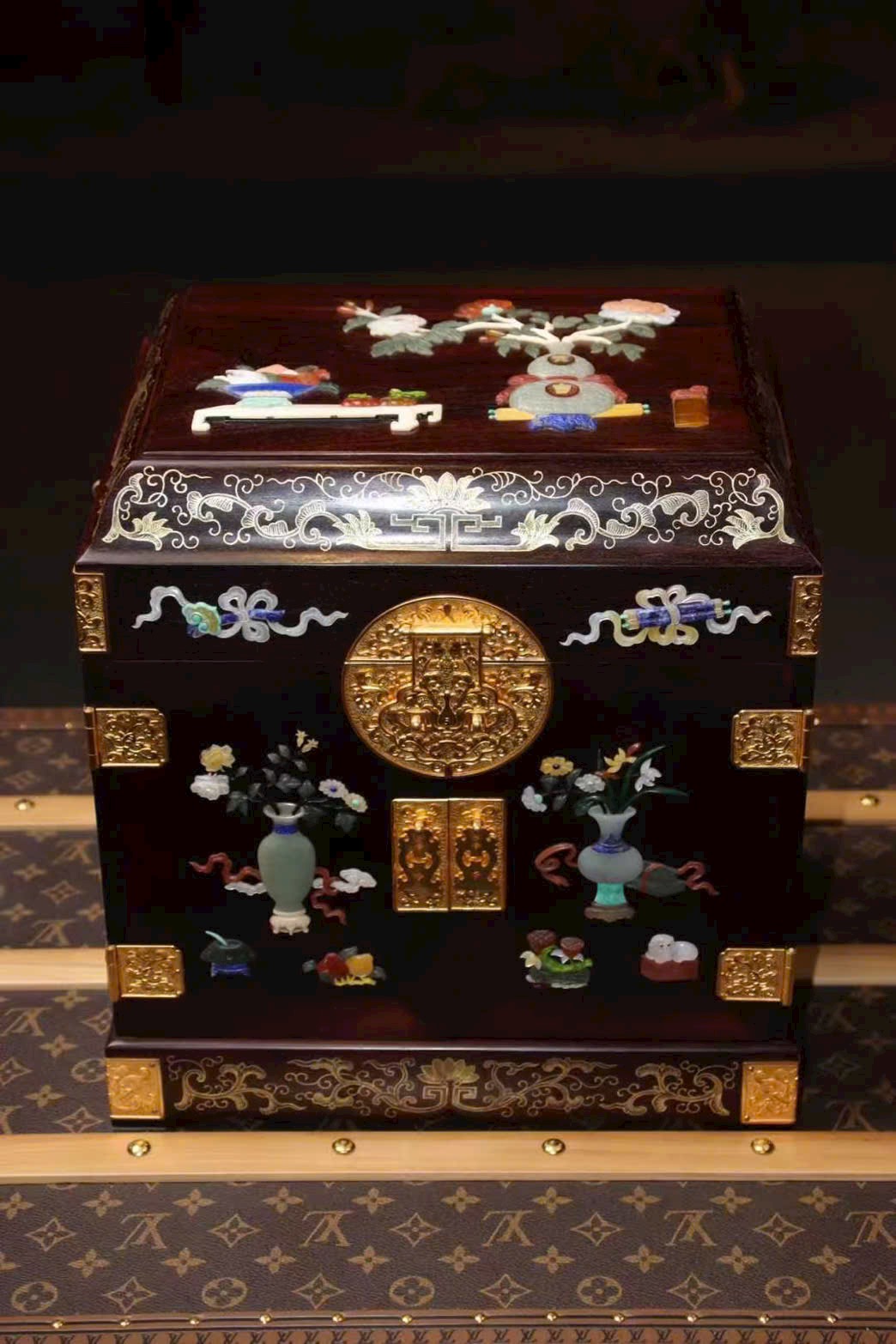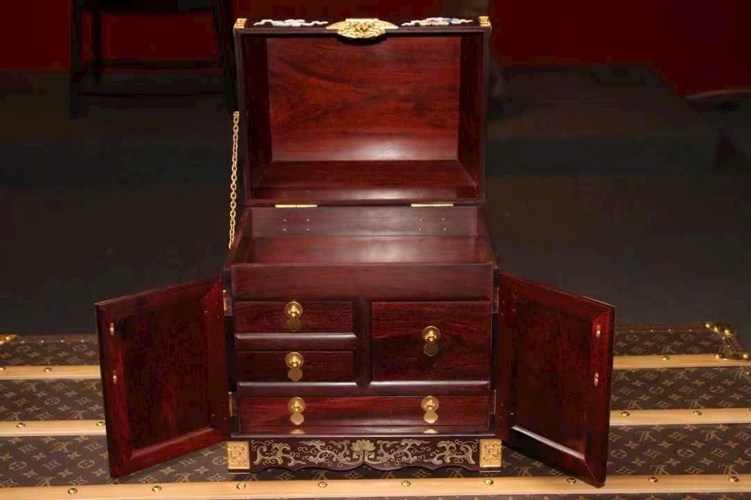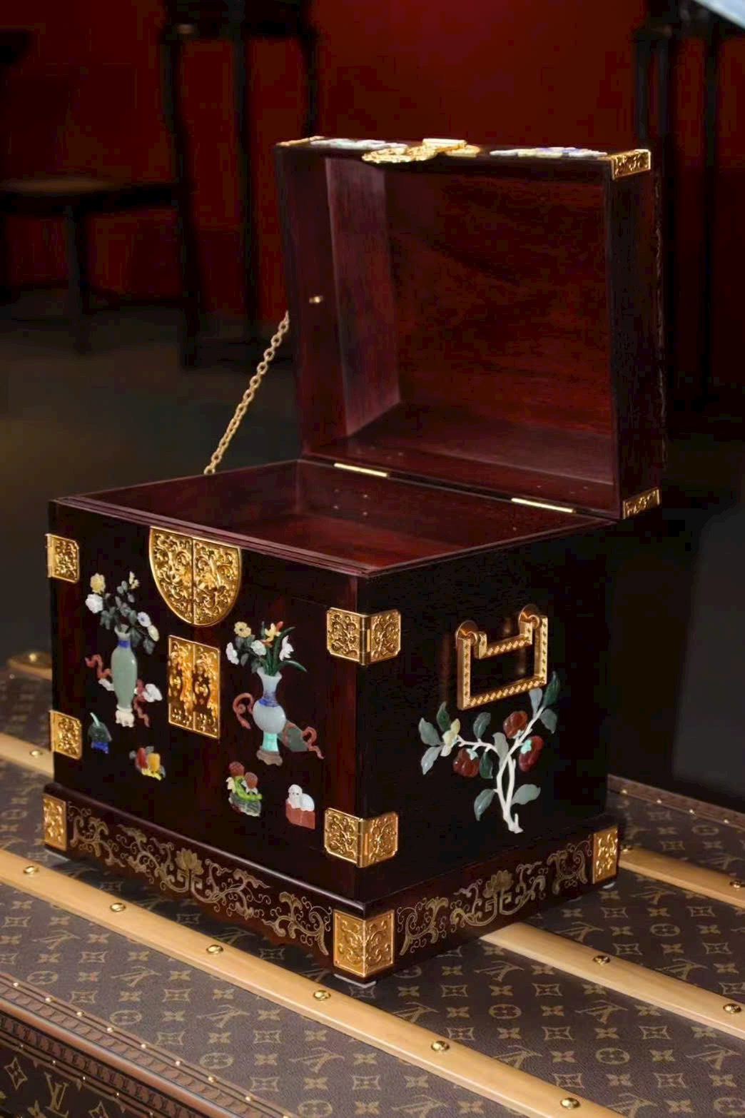 Hộp trang sức khảm bách bảo gỗ tử đàn lá nhỏ