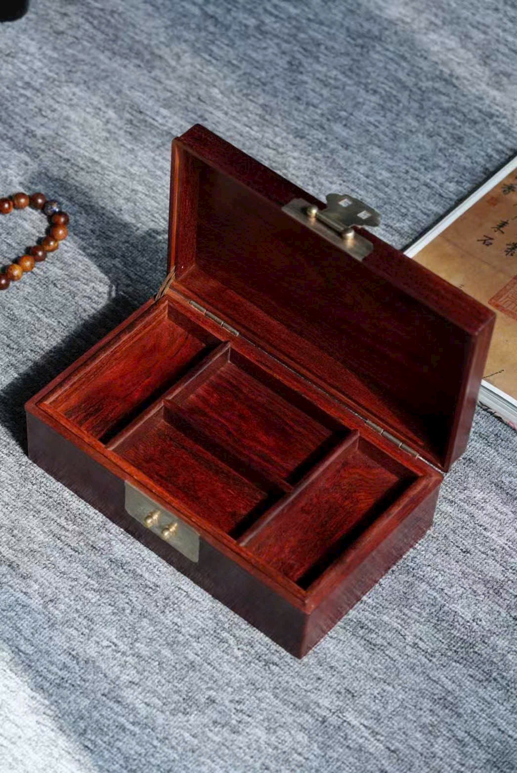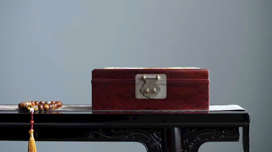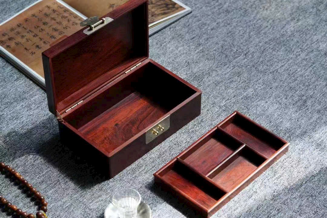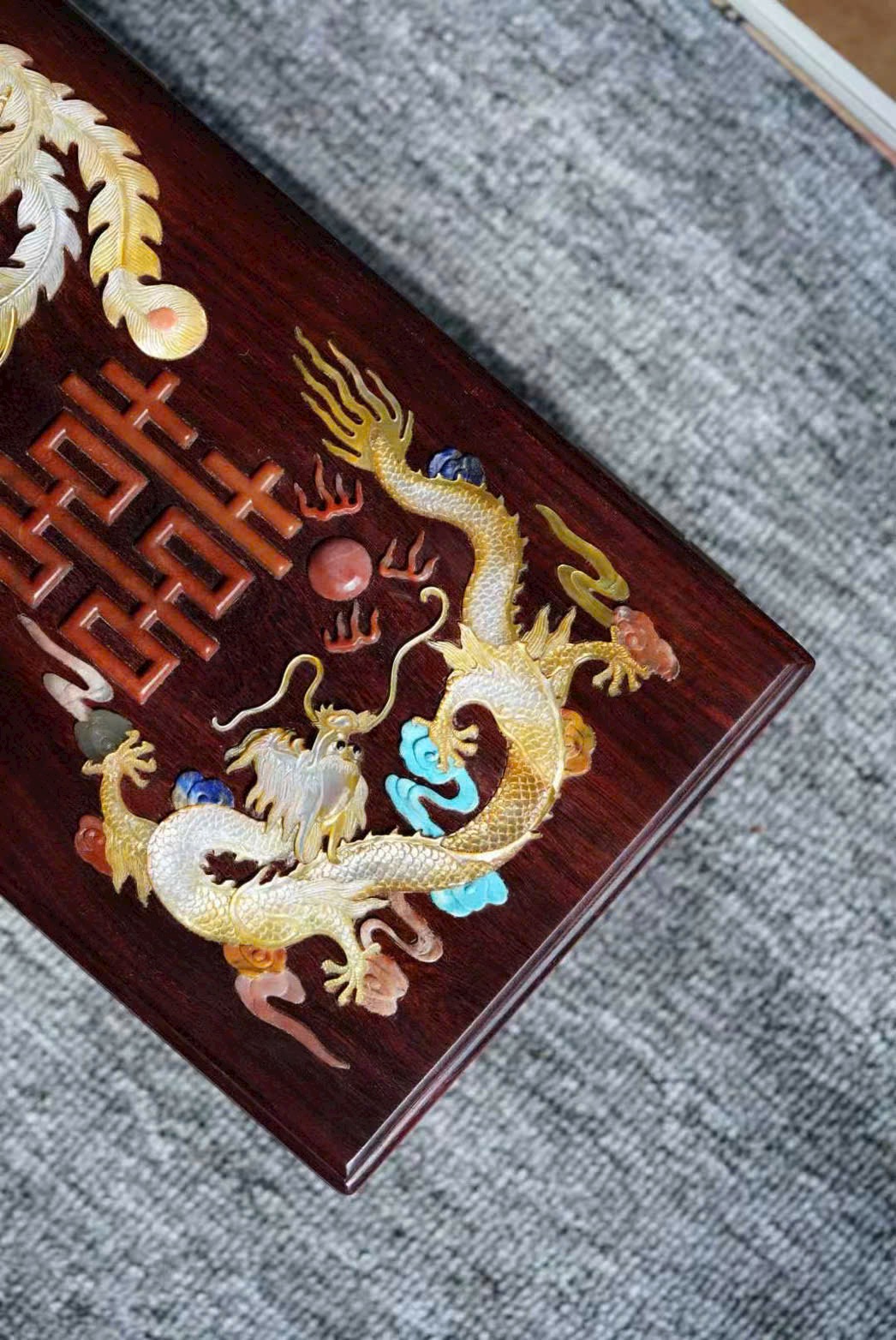Hộp trang sức “Long Phượng Song Hỷ” bằng gỗ Tử Đàn Ấn Độ nguyên tấm