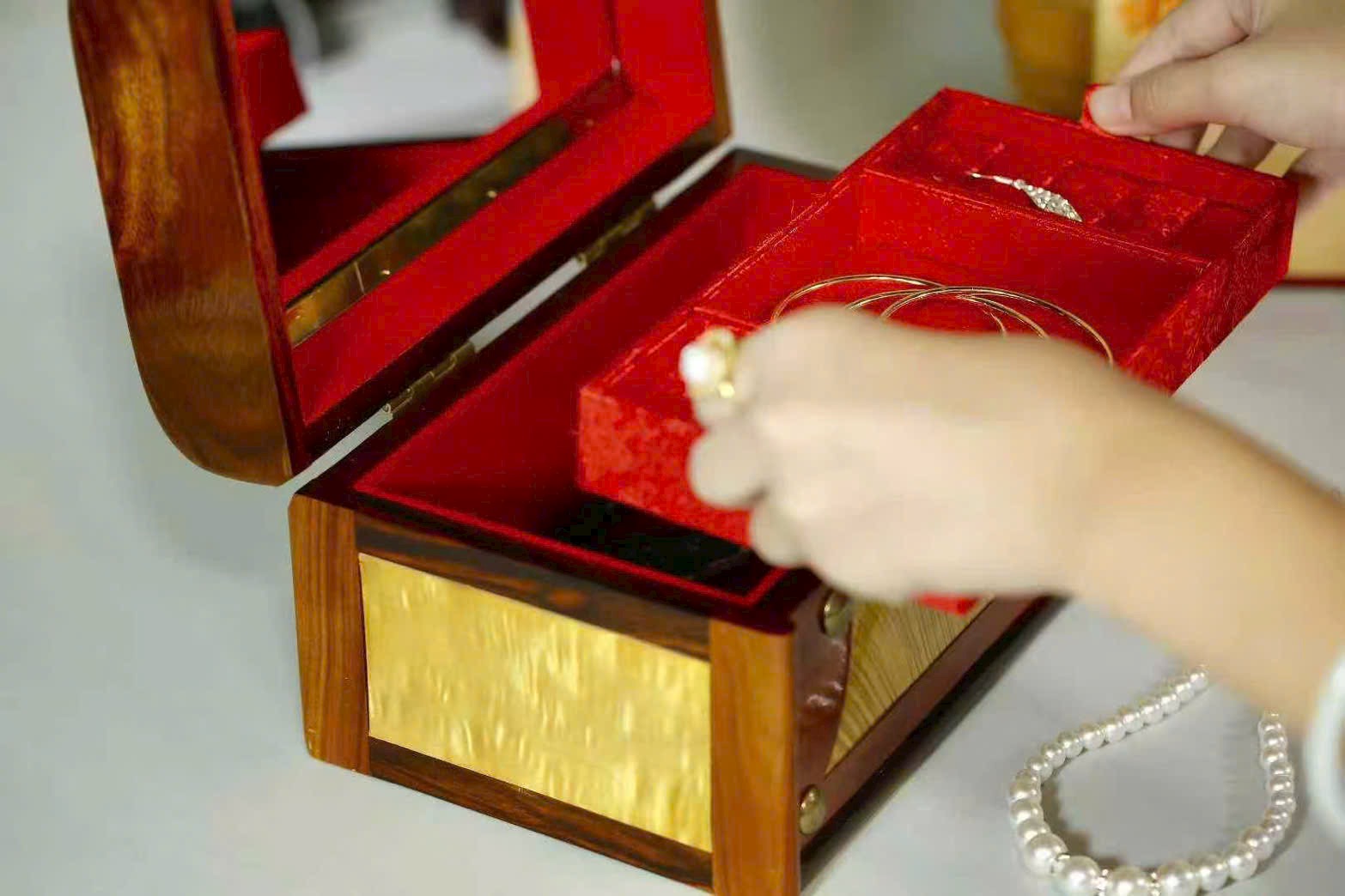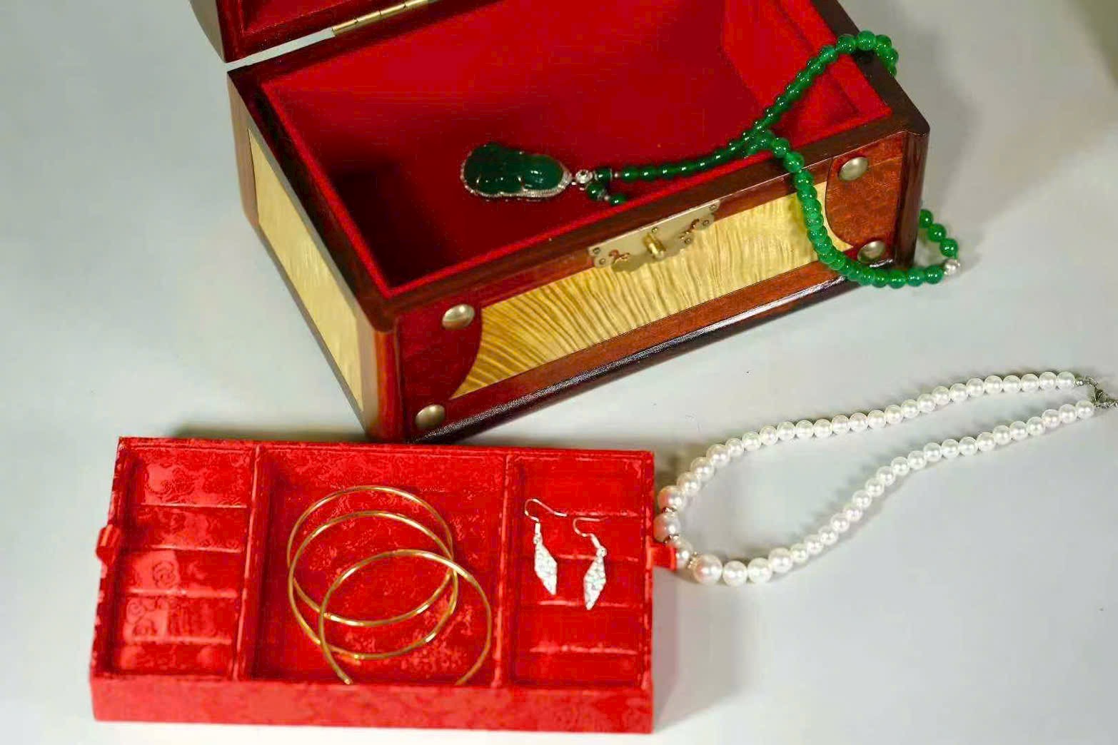 Tử Đàn Phi khảm Kim Tơ Nam – Hộp trang sức nguyên tấm 💍