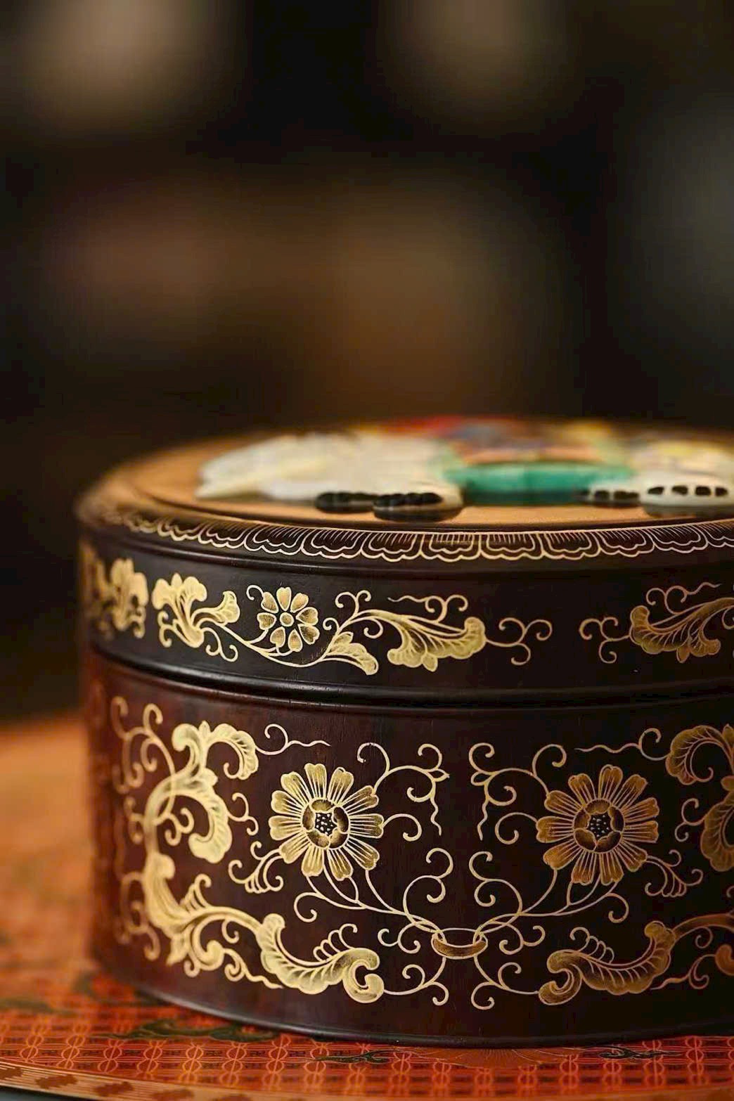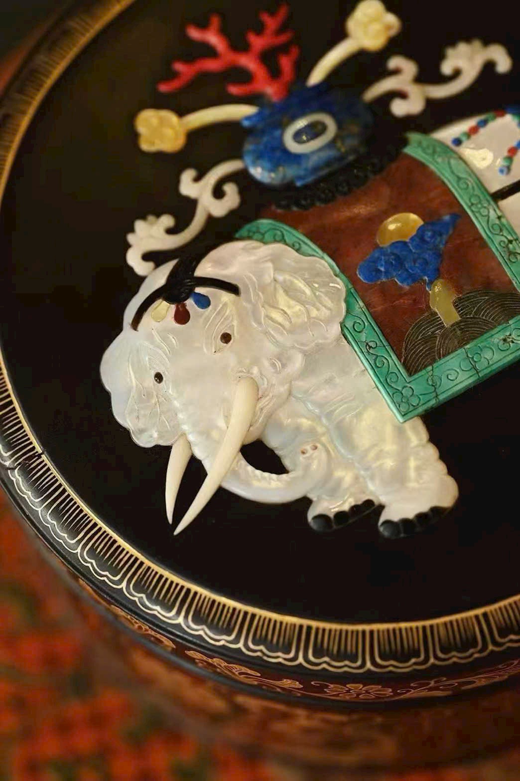 Hộp tròn “Thái Bình Hữu Tượng” – gỗ tử đàn khảm bách bảo