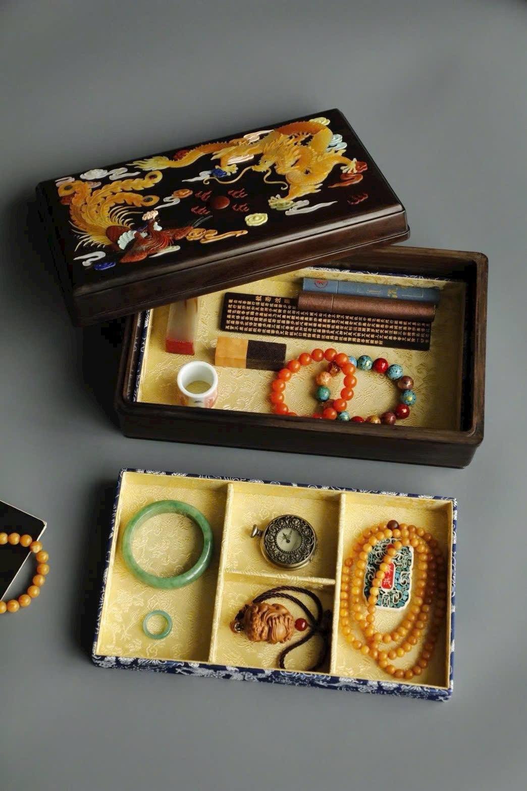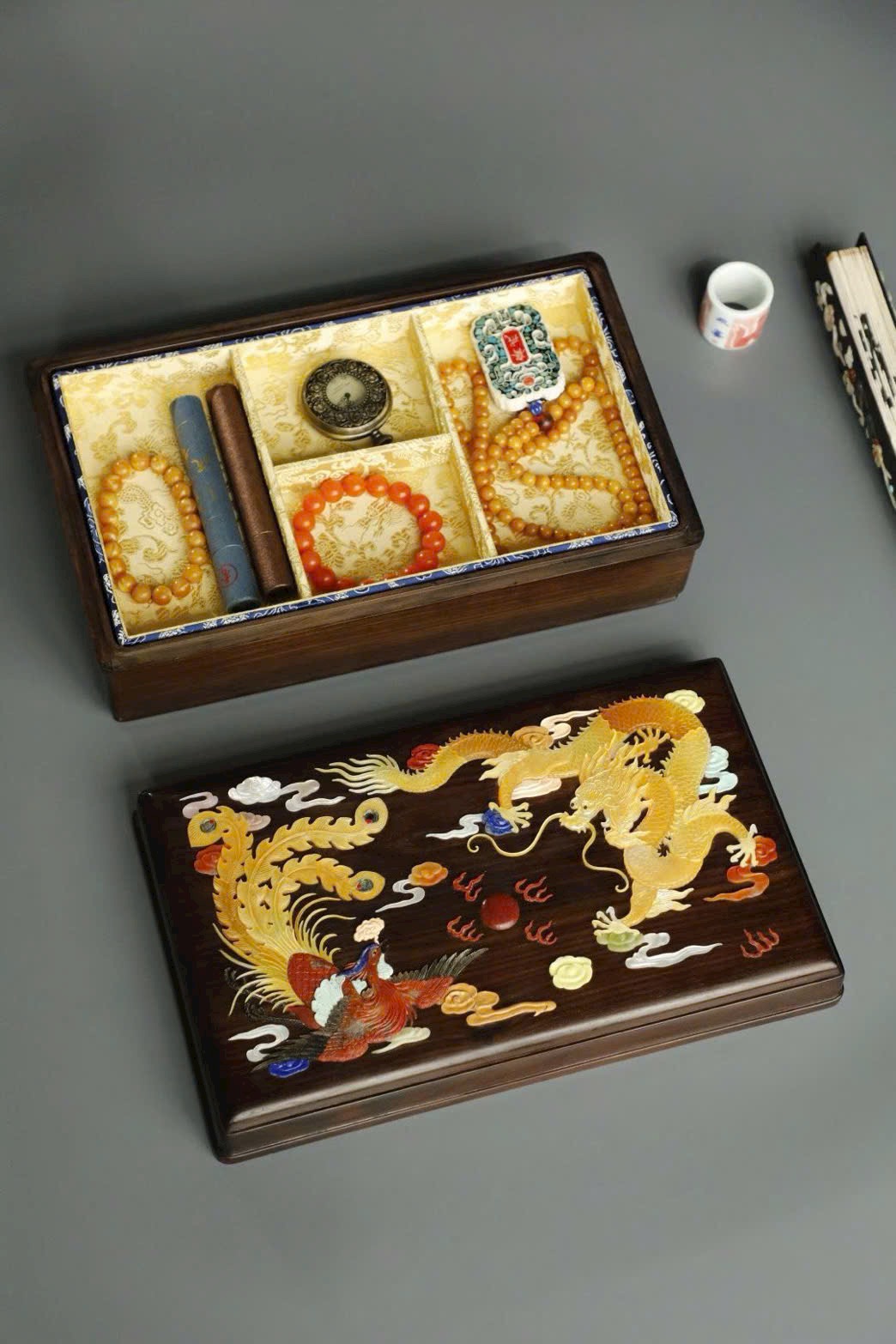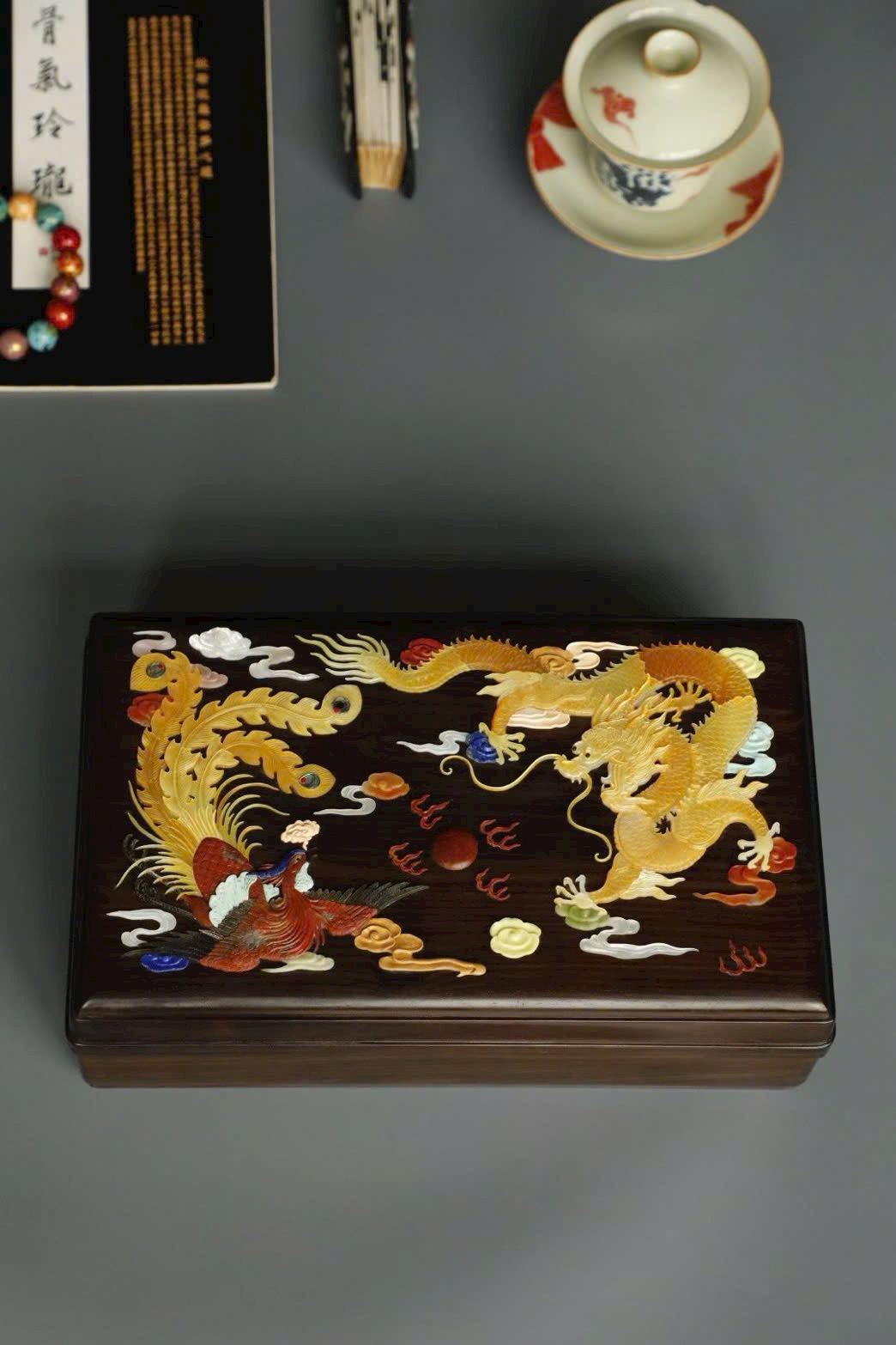 Long Phụng Trình Tường | Hộp văn thư khảm bách bảo | Gỗ Trắc