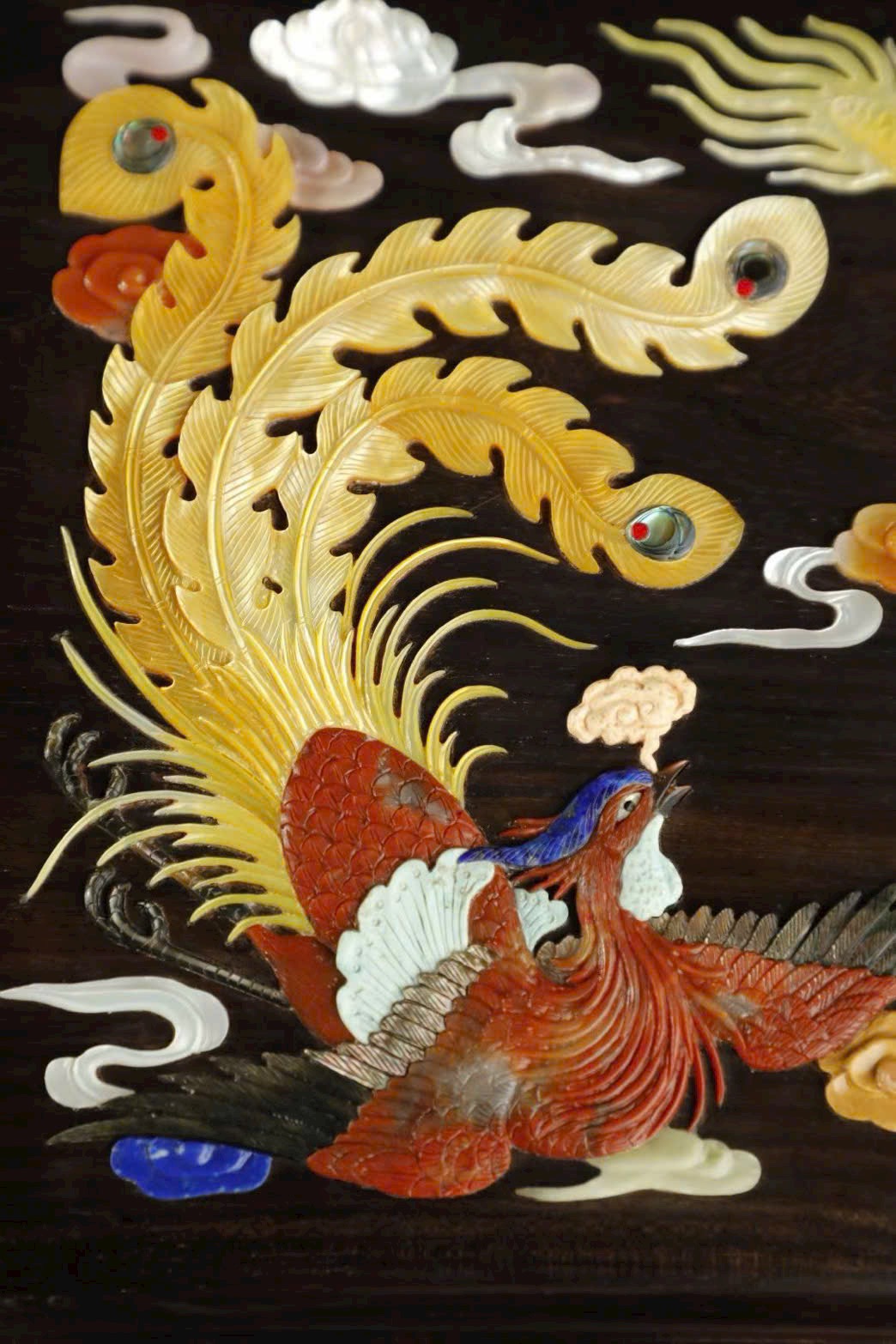 Tuyển chọn gỗ Trắc lão liệu chế tác, toàn bộ khí cụ mang phong cách cổ điển trang nhã. Hình thức khí cụ góc vát, tạo cảm giác hoa lệ trầm ổn, trong sự vững chãi không mất đi vẻ tao nhã. Khảm bách bảo xa hoa với đồ án long phụng hí châu, biểu trưng ước nguyện sung túc, sang trọng khí phái. Toàn bộ tác phẩm chế tác tỉ mỉ nghiêm cẩn, vừa mang tính thực dụng vừa giá trị sưu tàng.