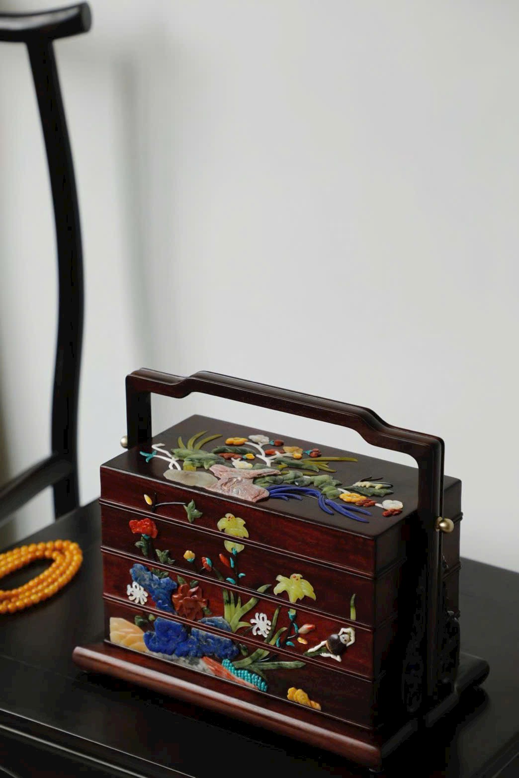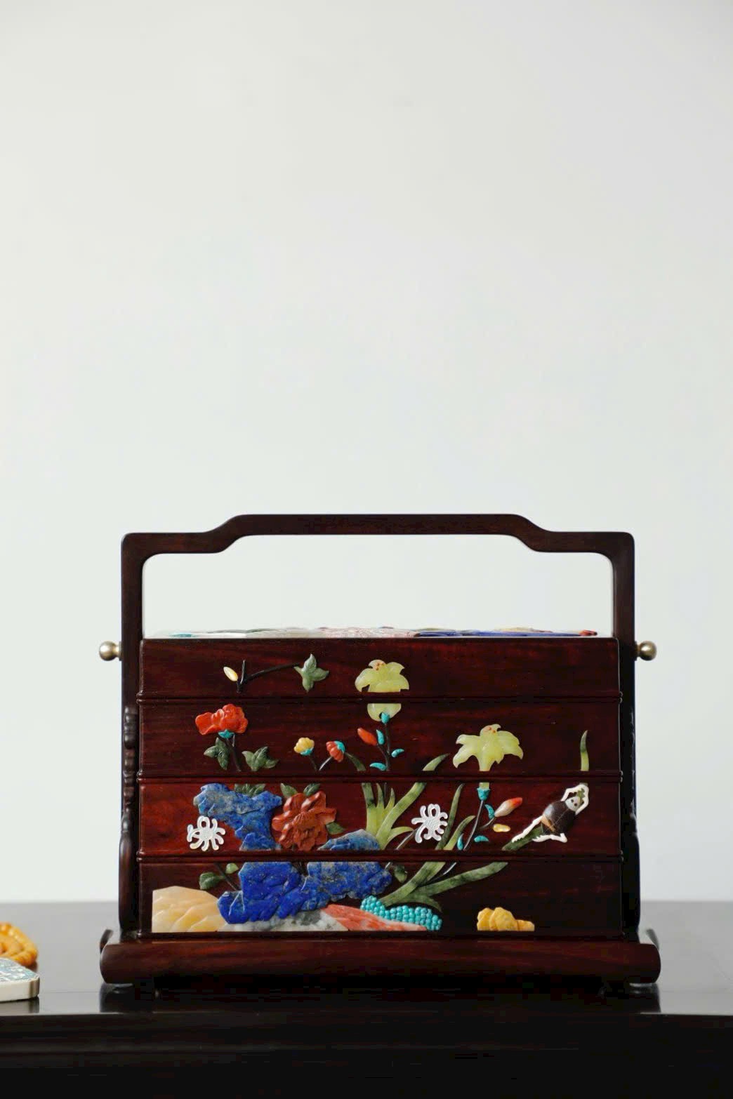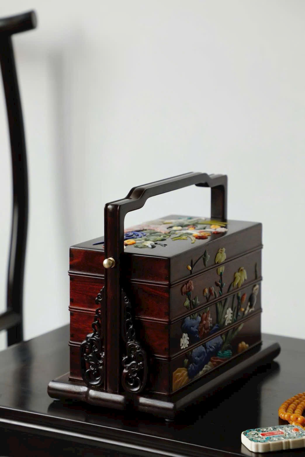 Phục chế nhà Thanh | Hộp xách lan hoa | Tử đàn lá nhỏ khảm Ngọc