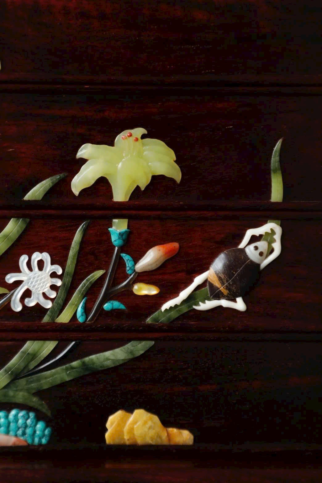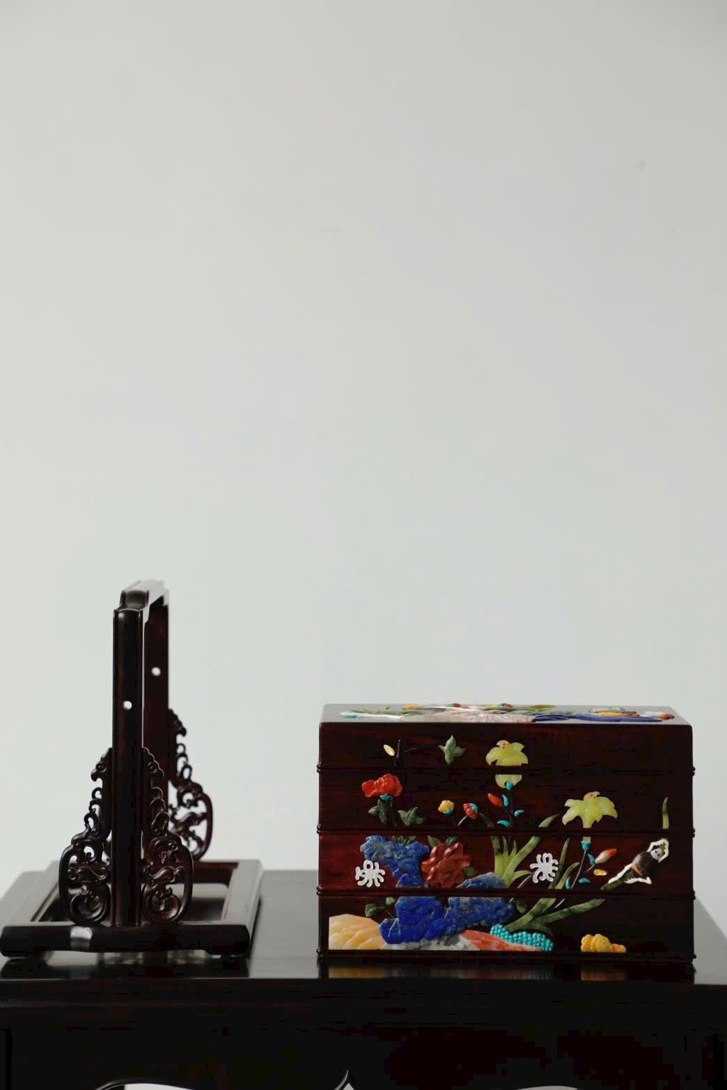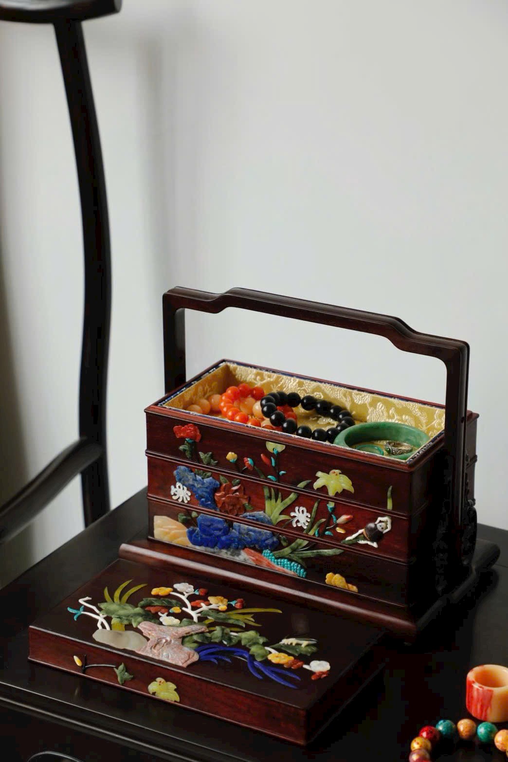 Phục chế nhà Thanh | Hộp xách lan hoa | Tử đàn lá nhỏ khảm Ngọc
